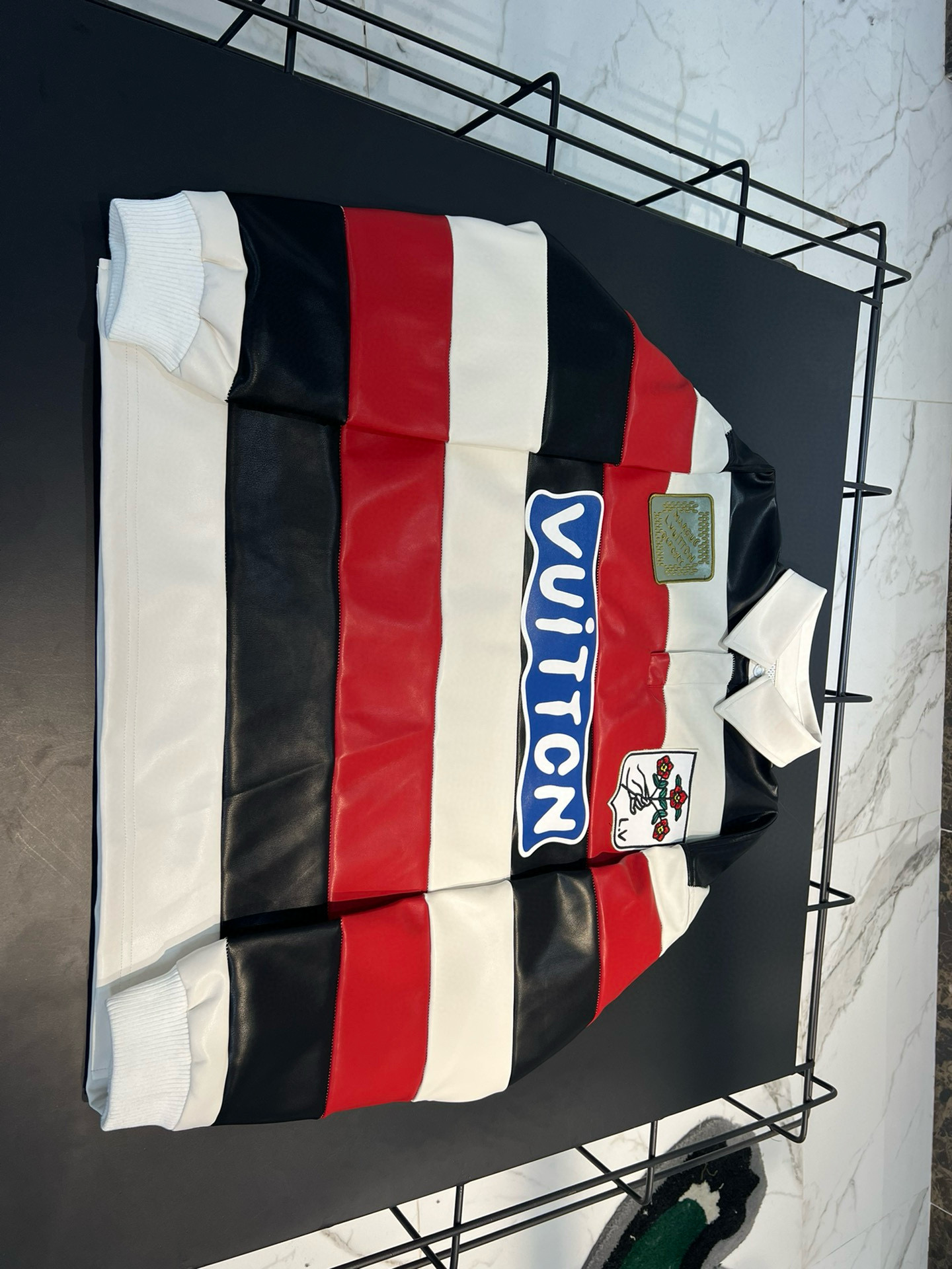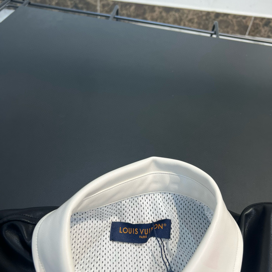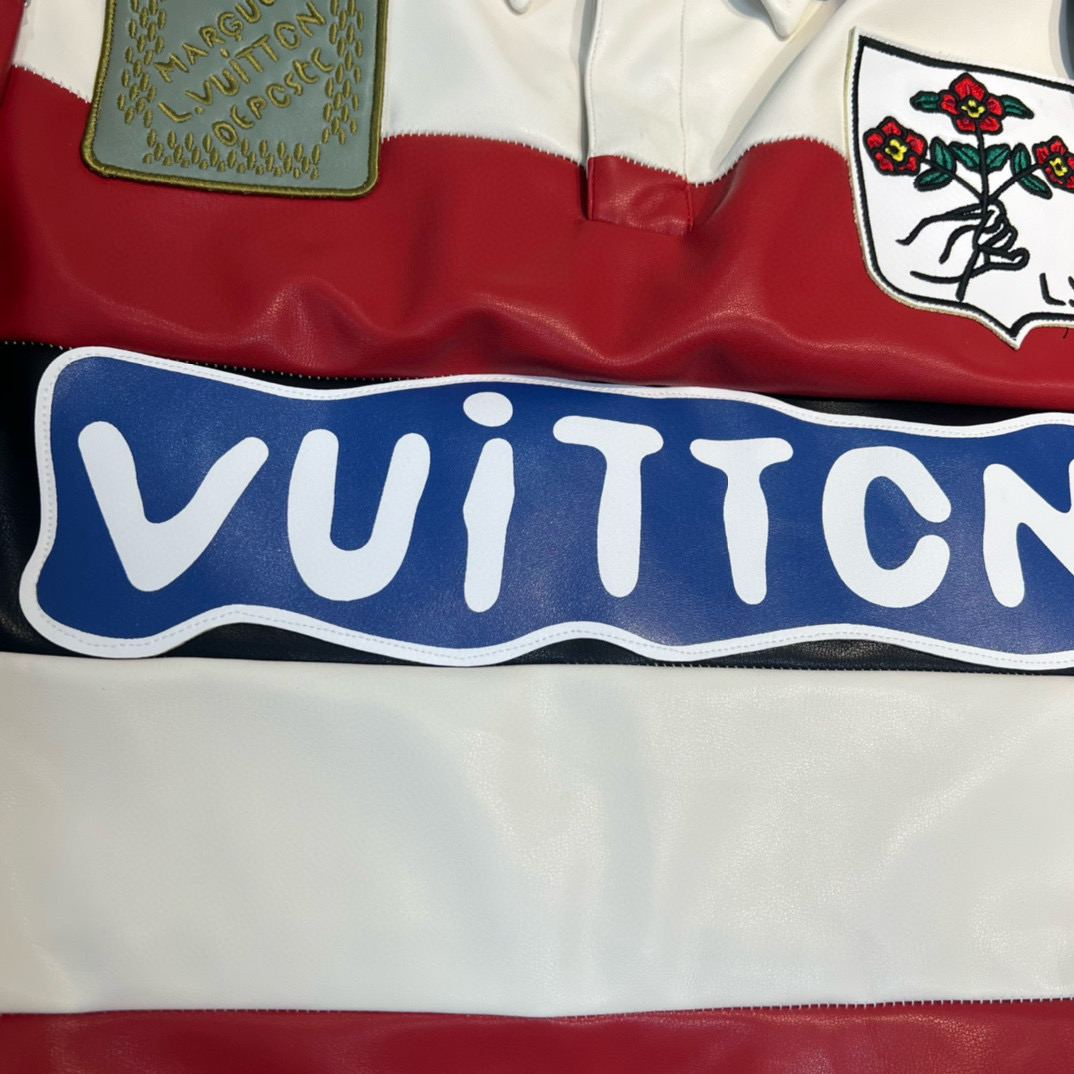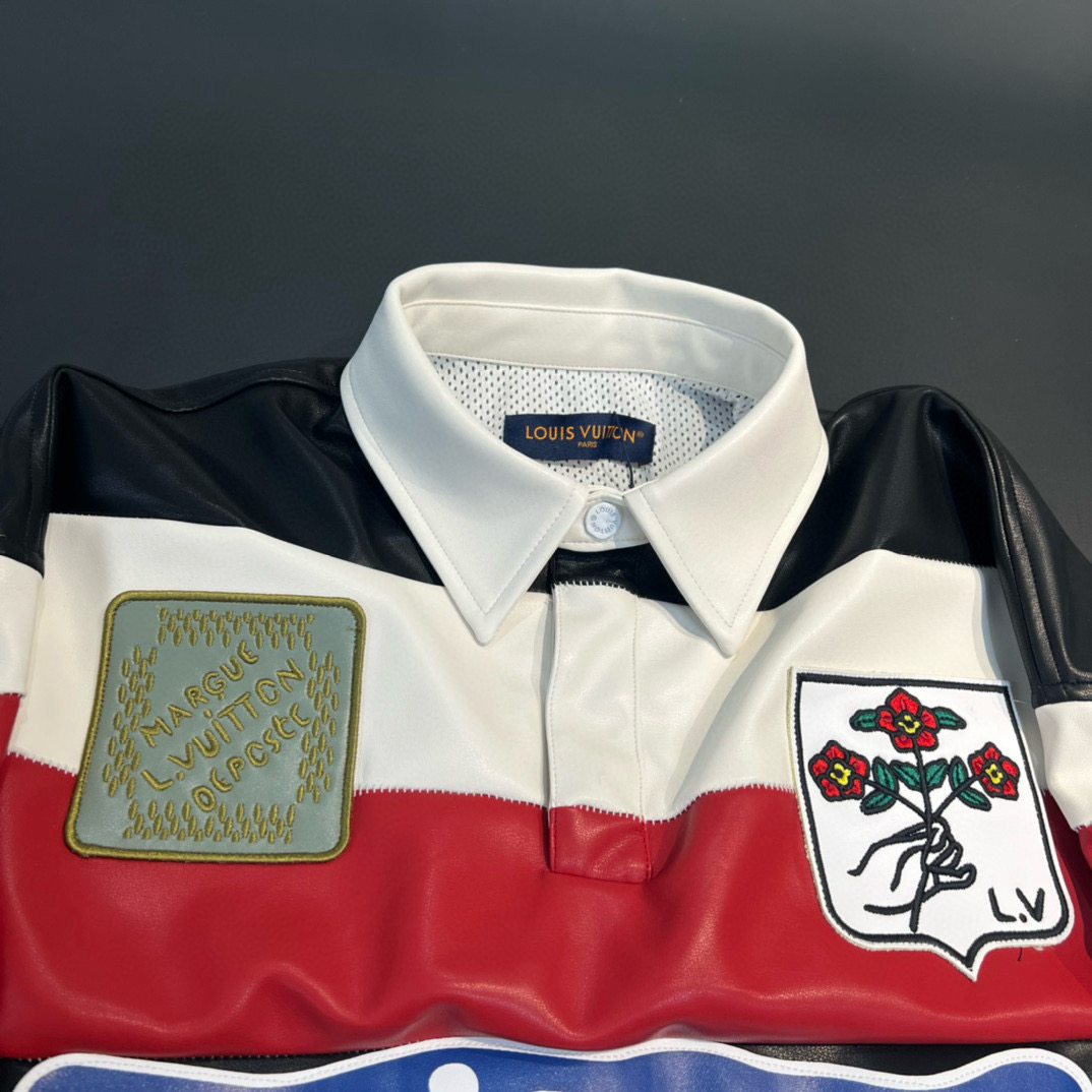 NIGO Louis Vuitton Men's Spring And Autumn Striped Patchwork Leather Long Sleeved T-shirt With Flip Collar Fashionable And Loose Casual Top #nigo71264