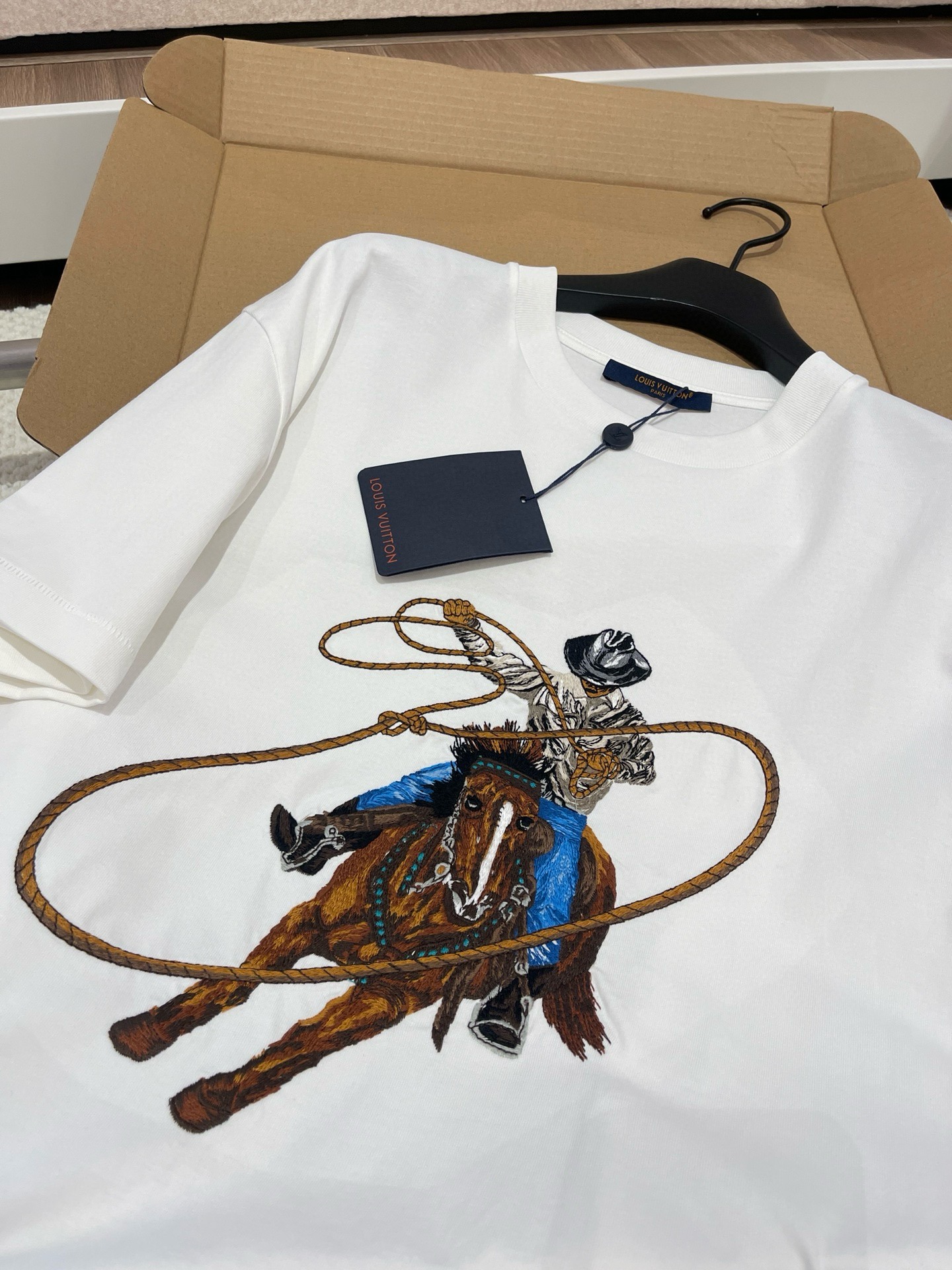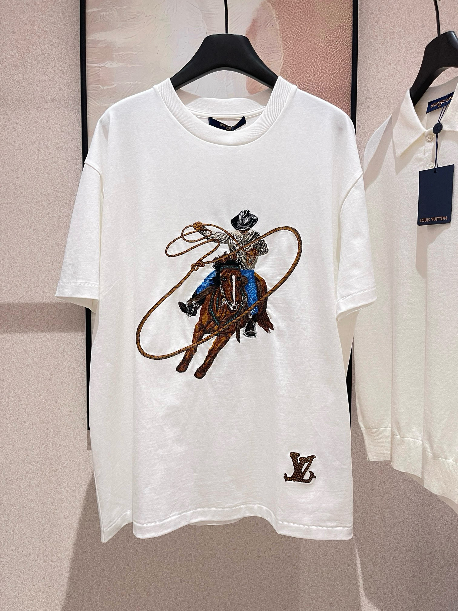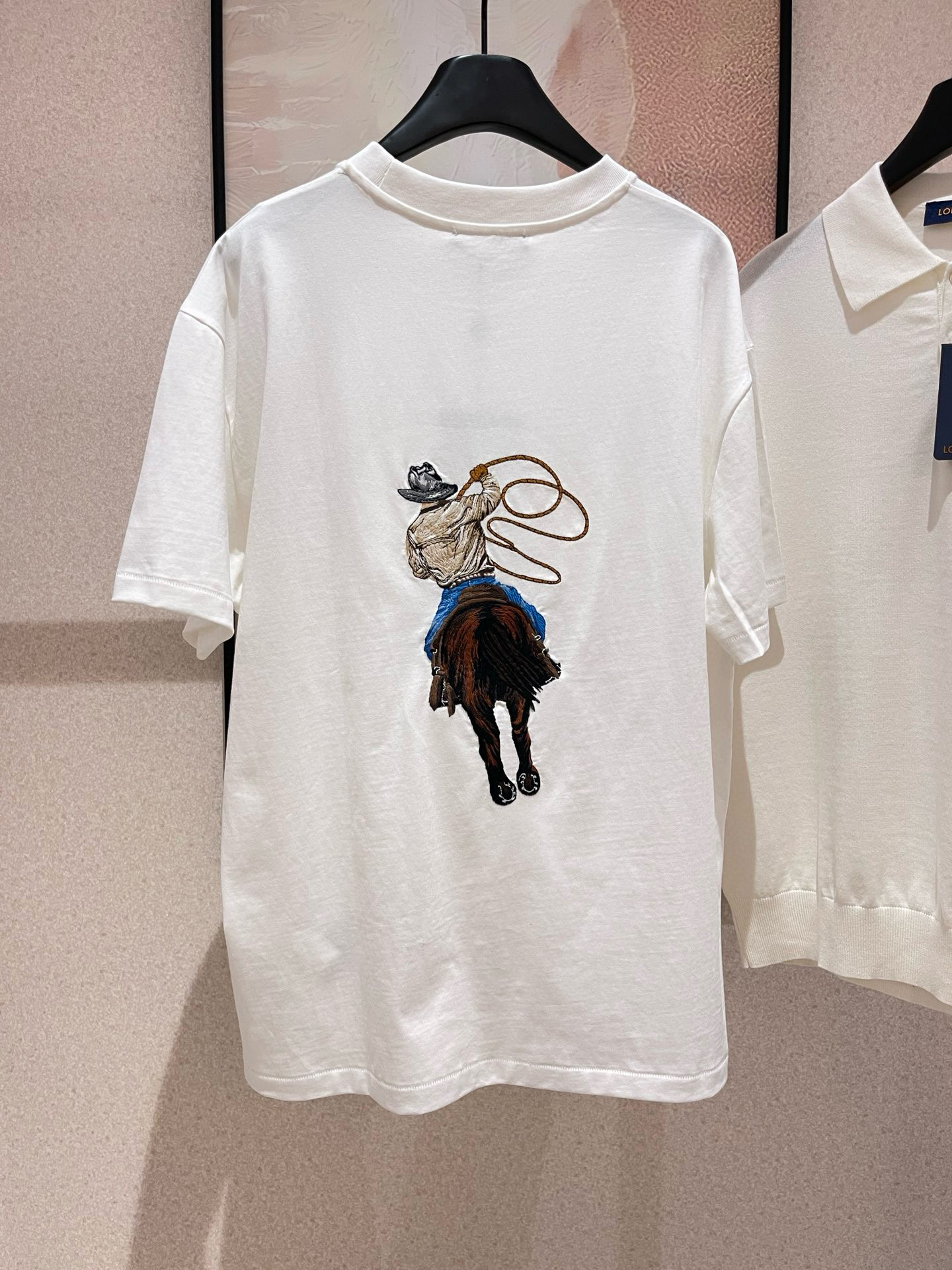 NIGO Louis Vuitton Men's Summer Cowboy Logo Pattern Print Embroidery Round Neck Cotton Short Sleeve T-Shirt #nigo72461