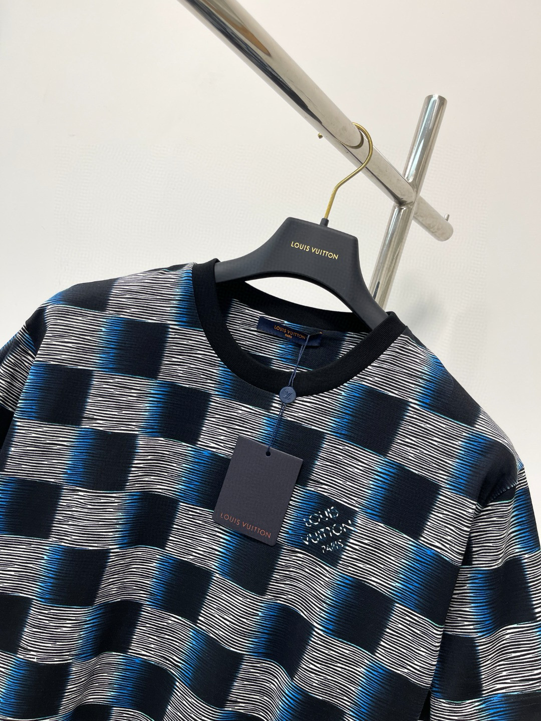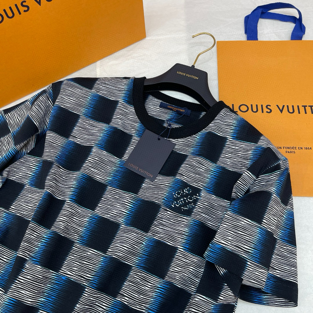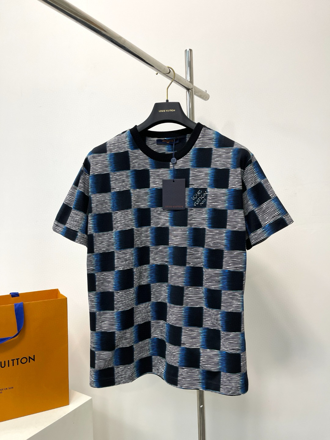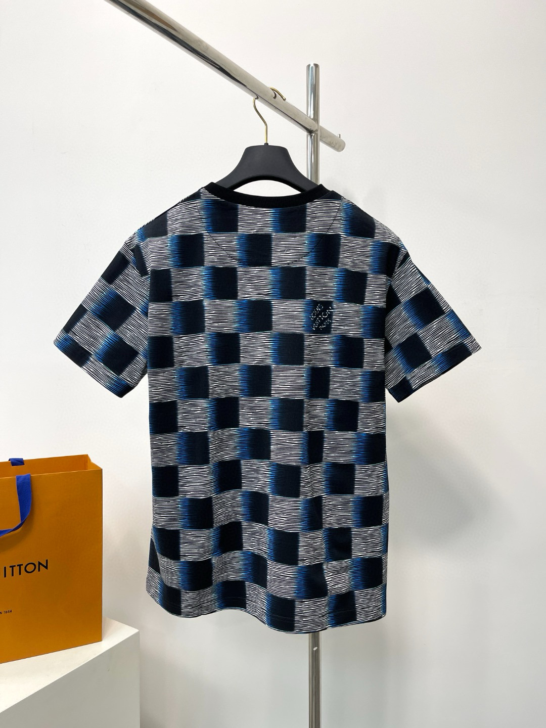 NIGO Louis Vuitton Men's Summer Damier Short-Sleeved Cotton T-Shirt With Checkerboard Print in Blue #nigo97584
