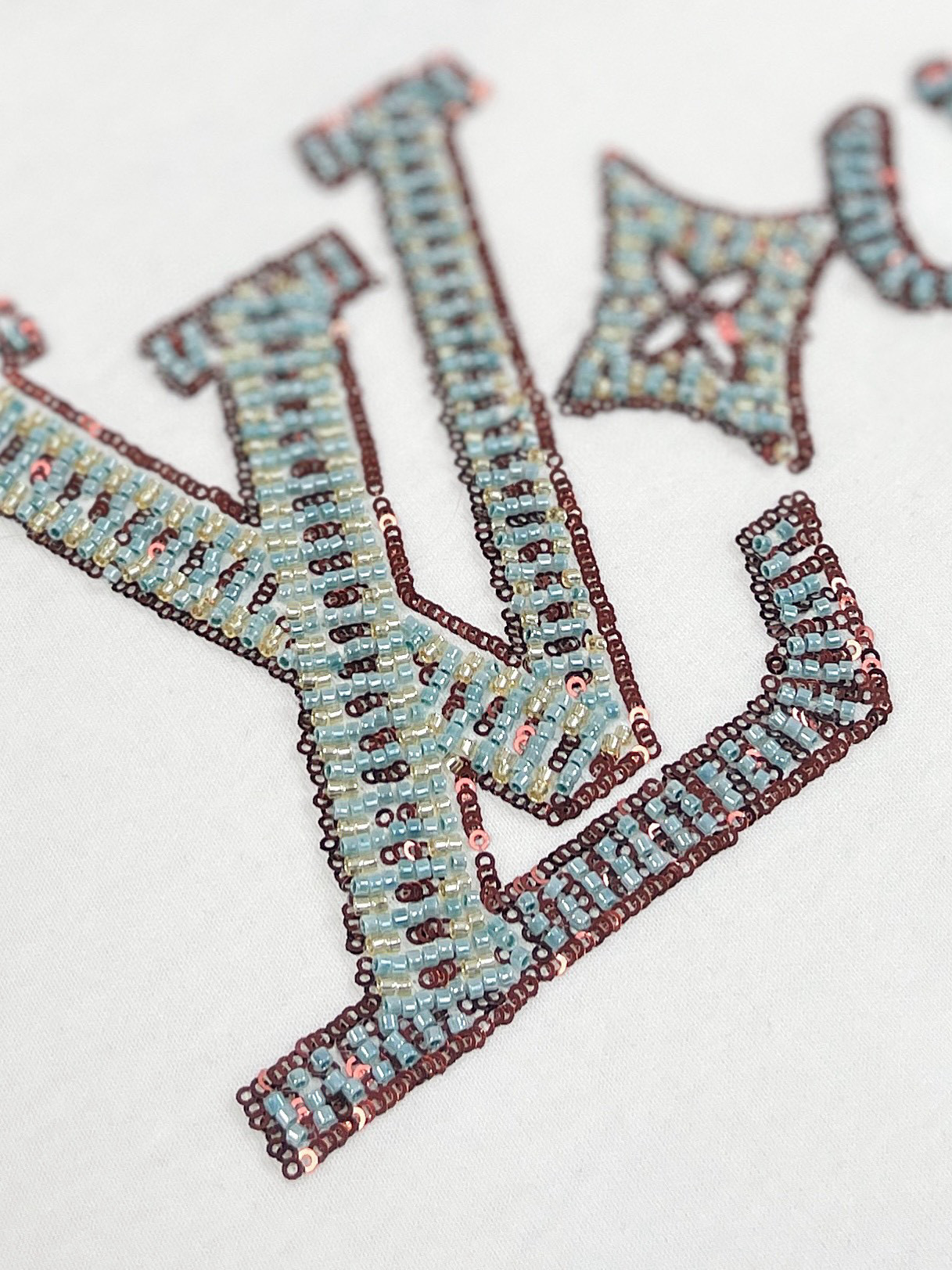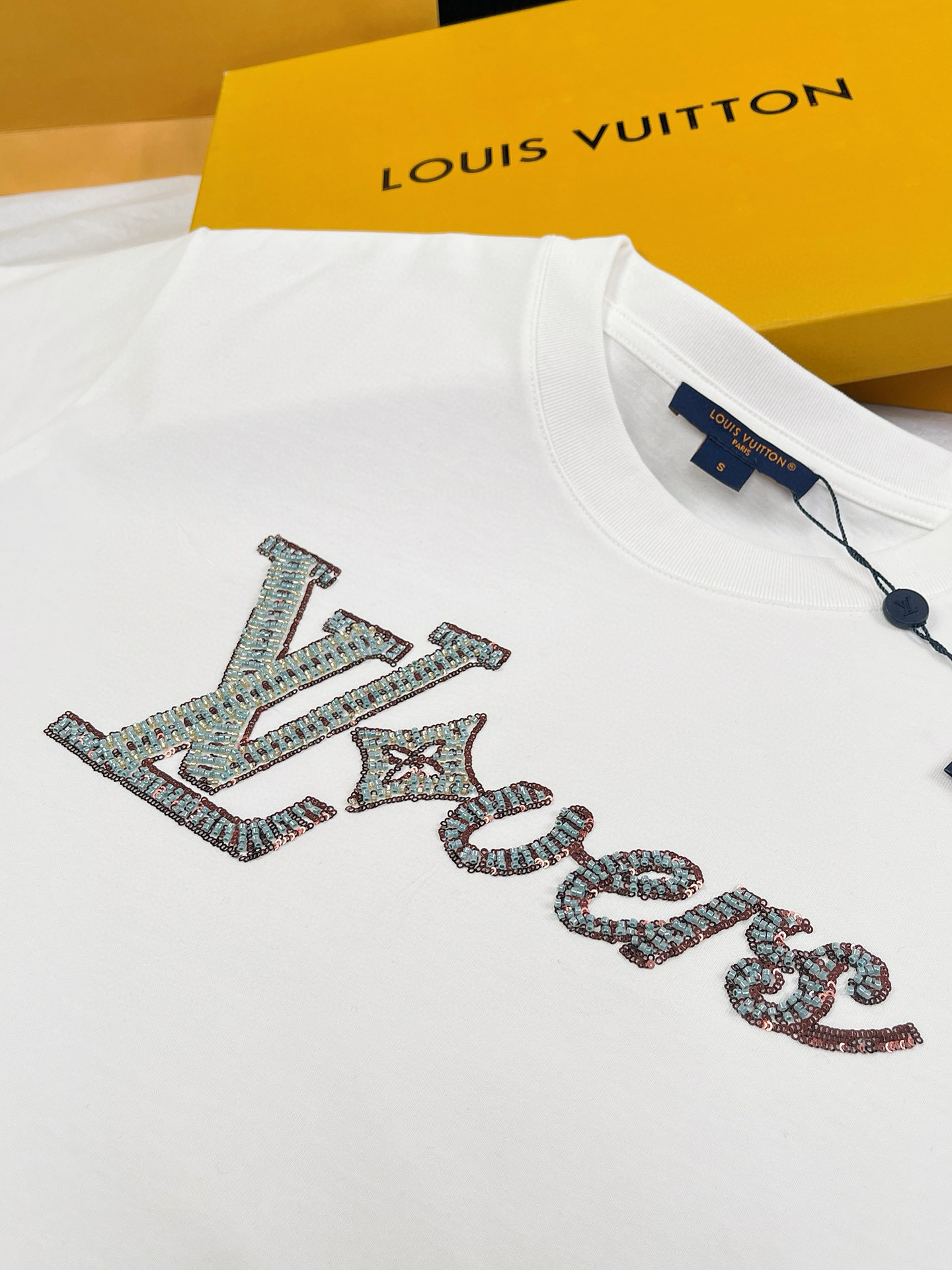 NIGO Louis Vuitton Men's Summer Logo Beaded Embroidery White Cotton Round Neck Short Sleeve T-Shirt #nigo98378