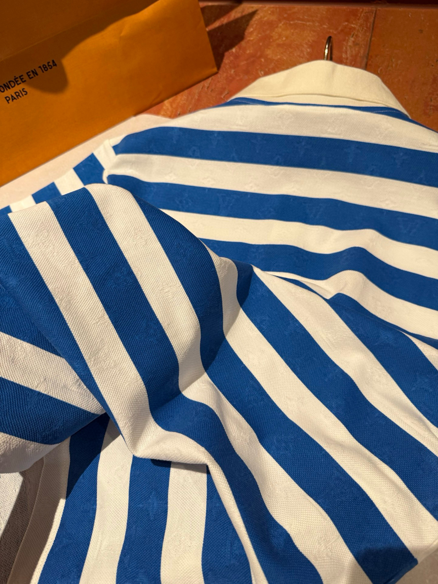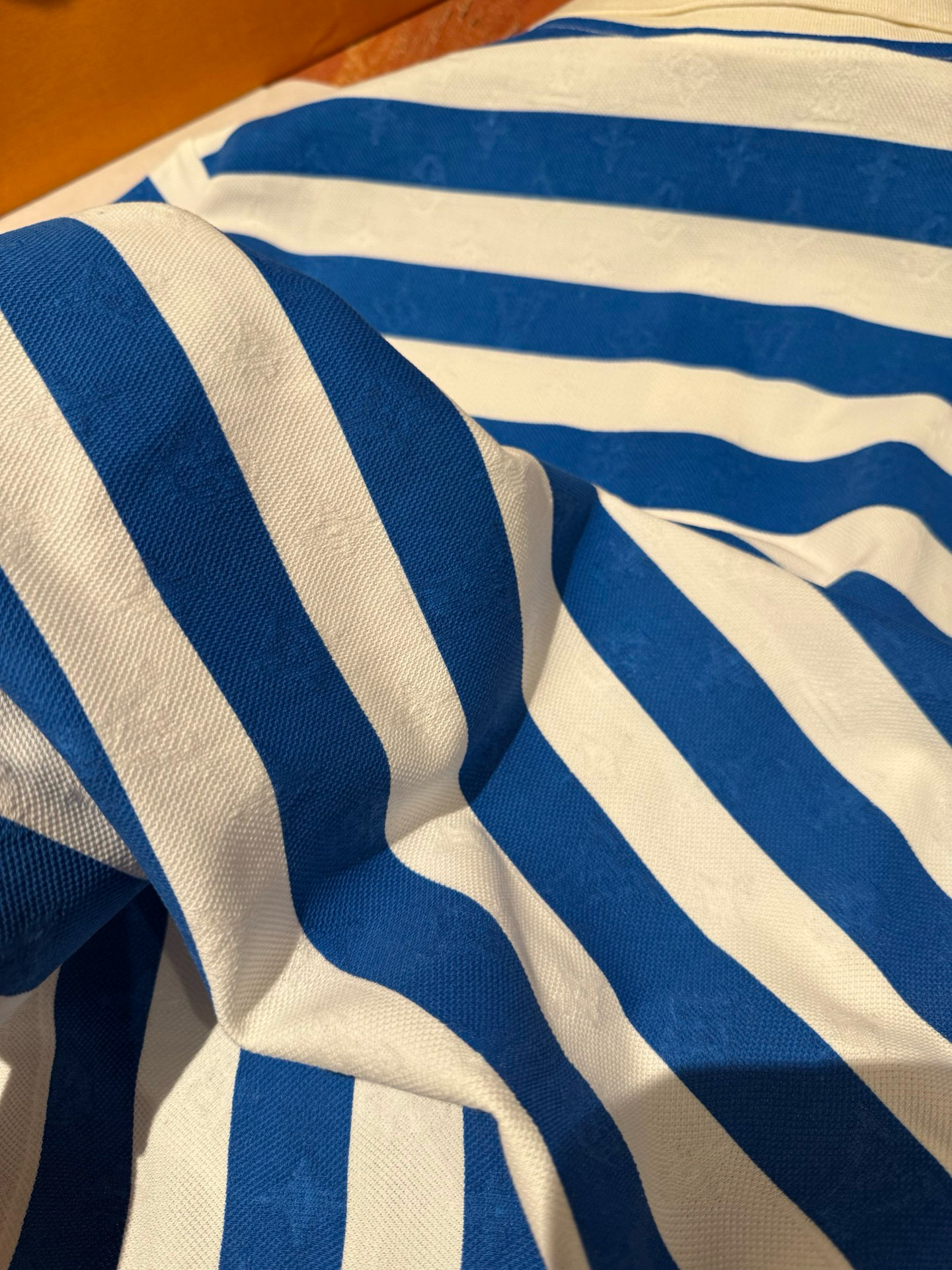 NIGO Louis Vuitton Men's Summer Striped Printed Polo Neck Short Sleeve T-Shirt #nigo77592