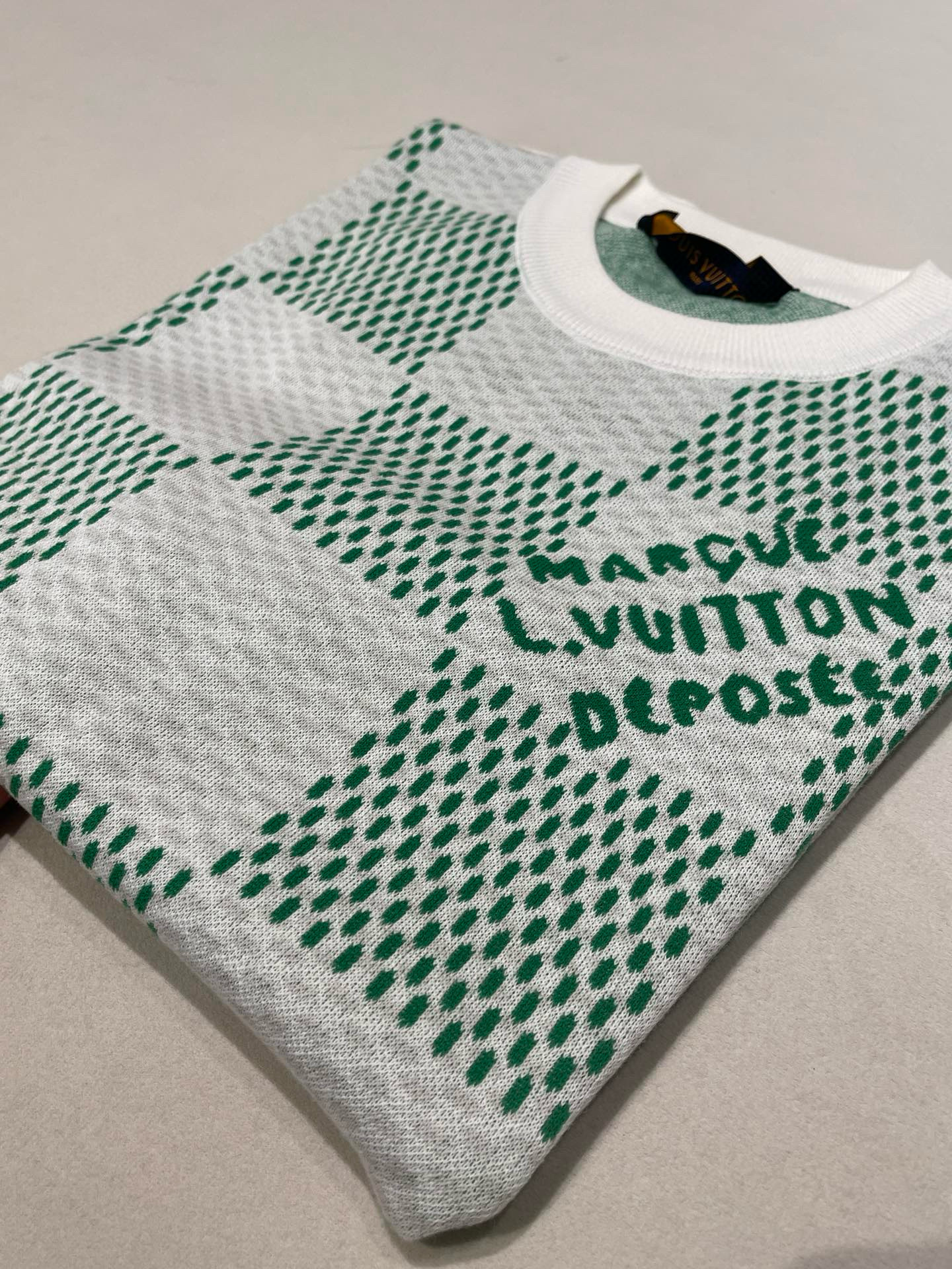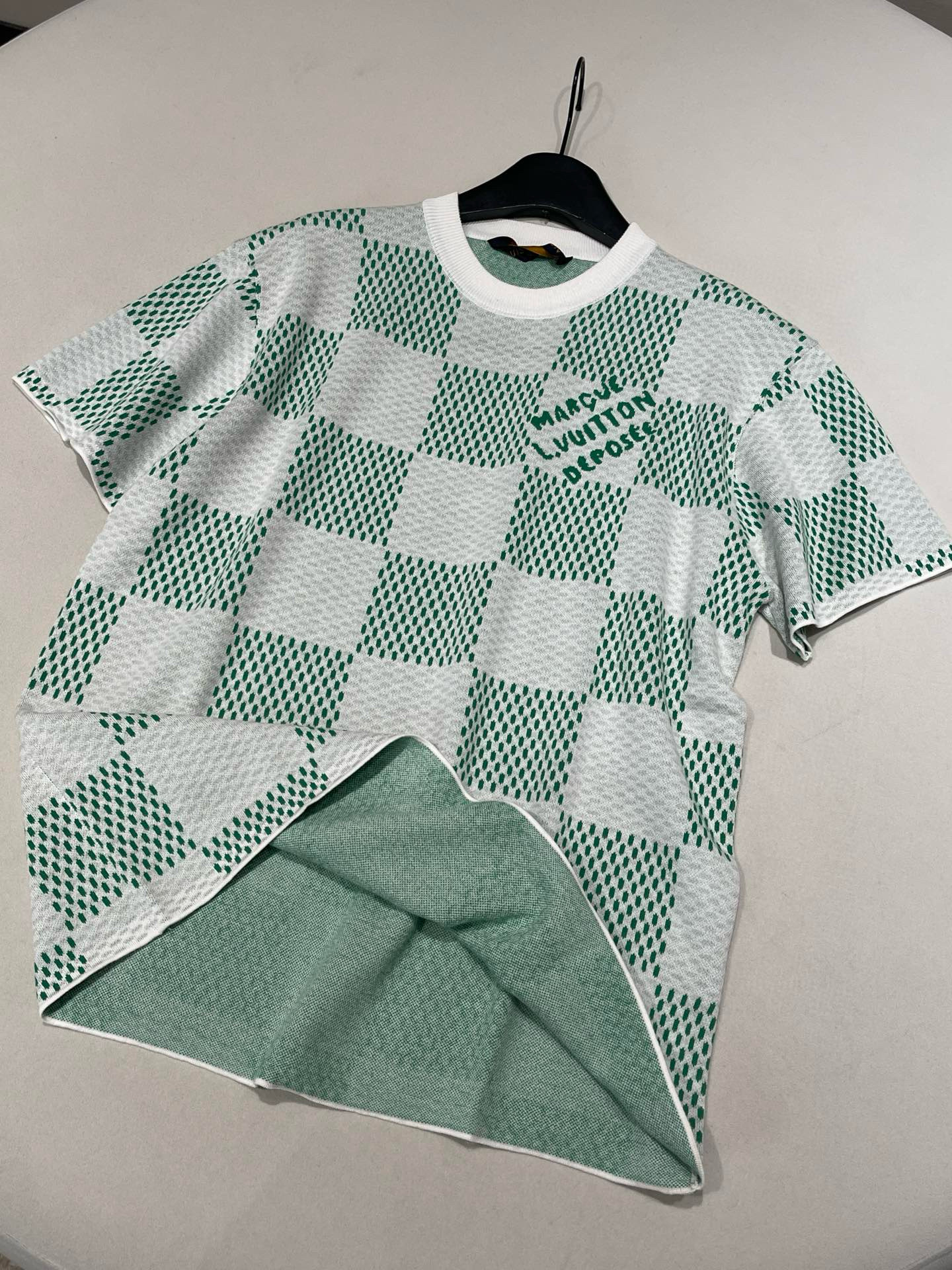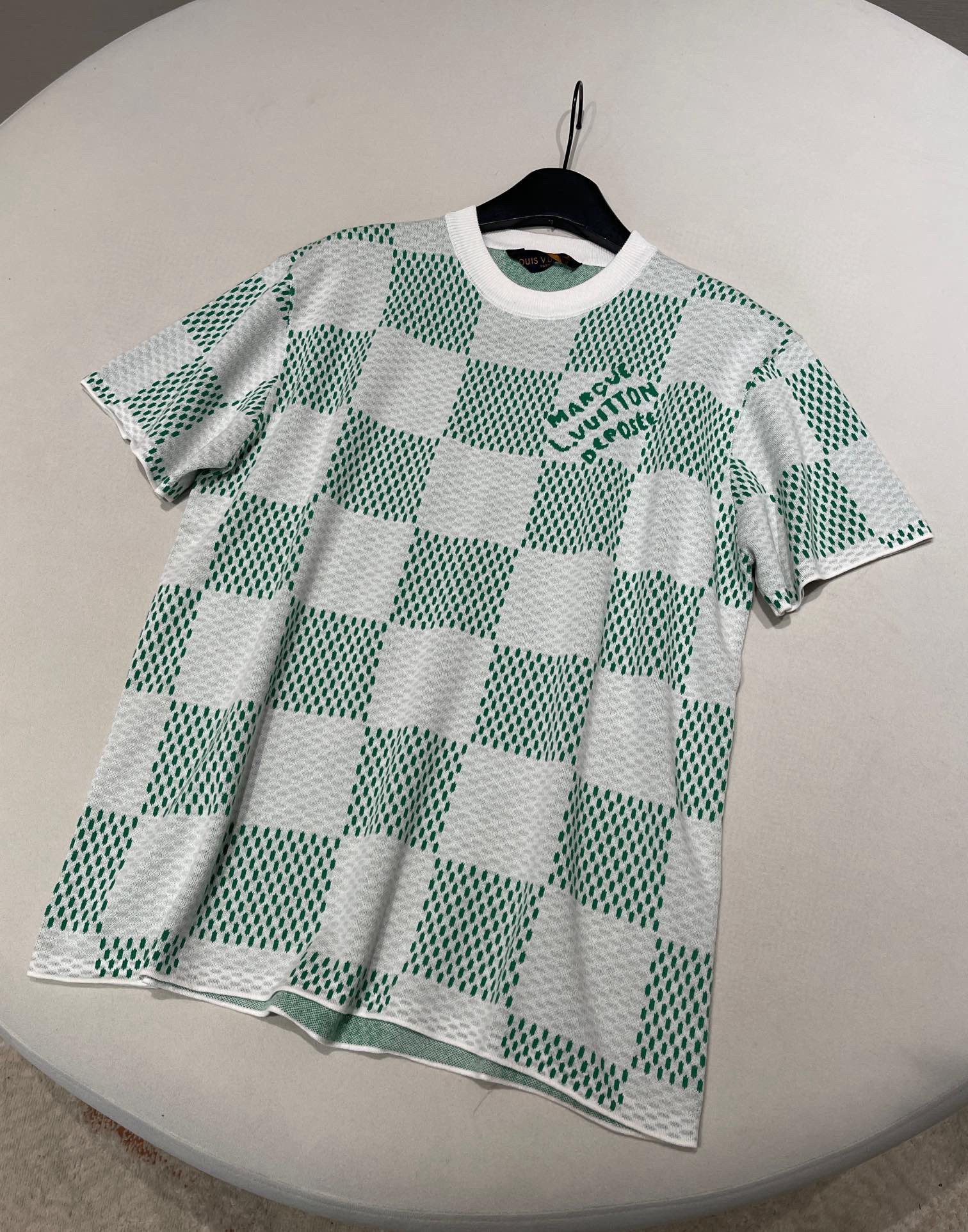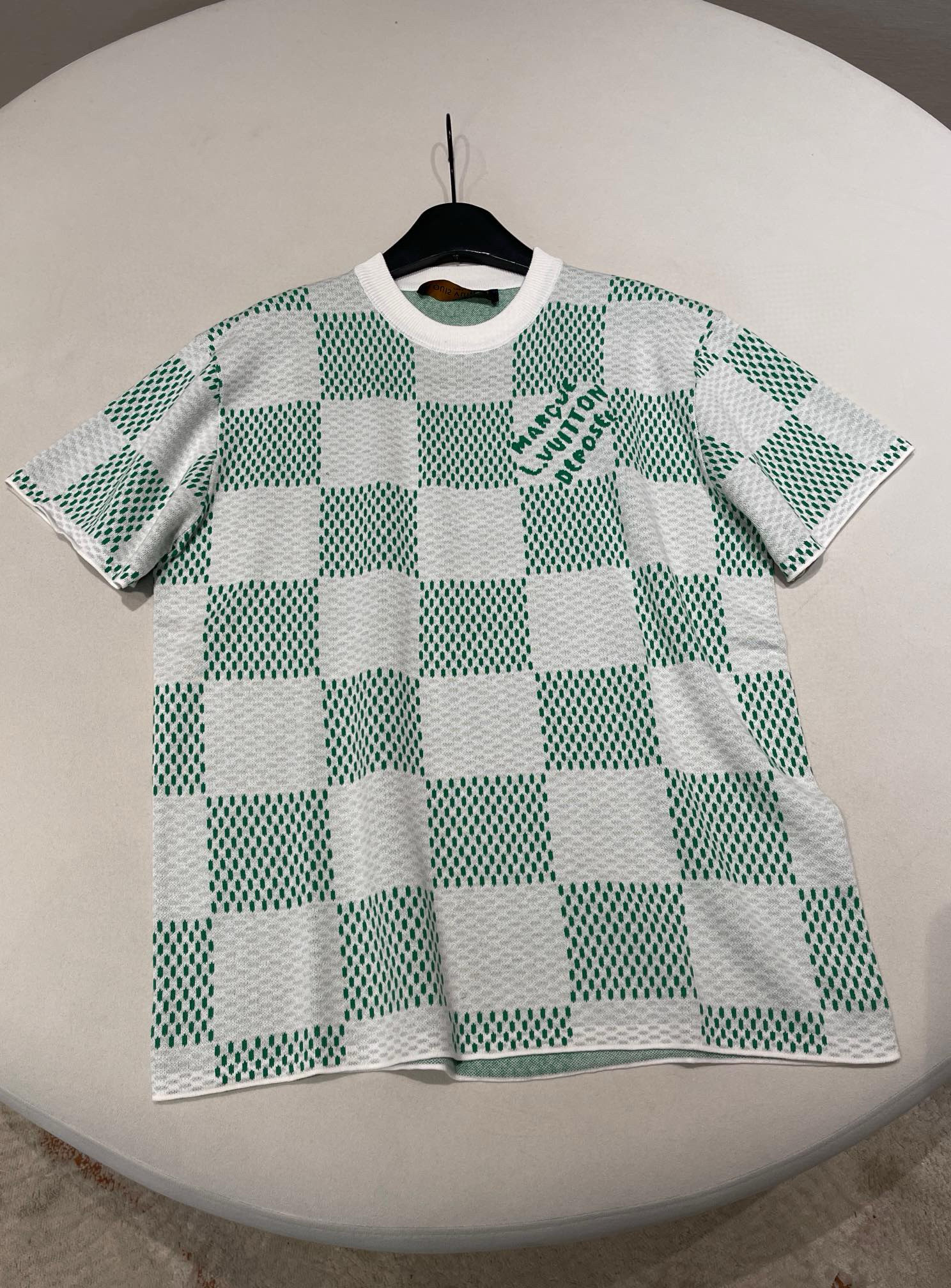 NIGO Louis Vuitton Men's Summer White Green Plaid Pattern Round Neck Cotton Short Sleeve T-Shirt #nigo98739