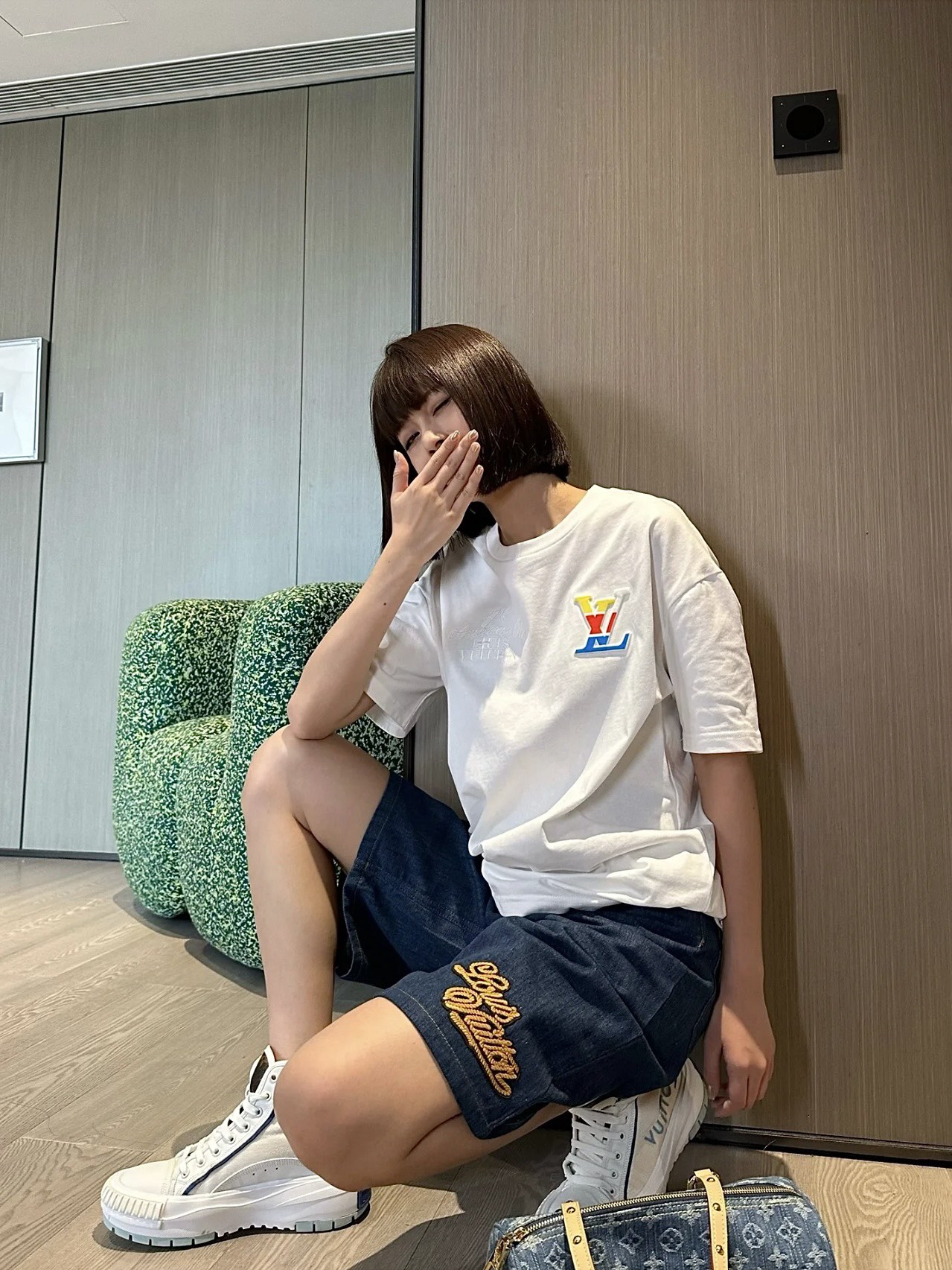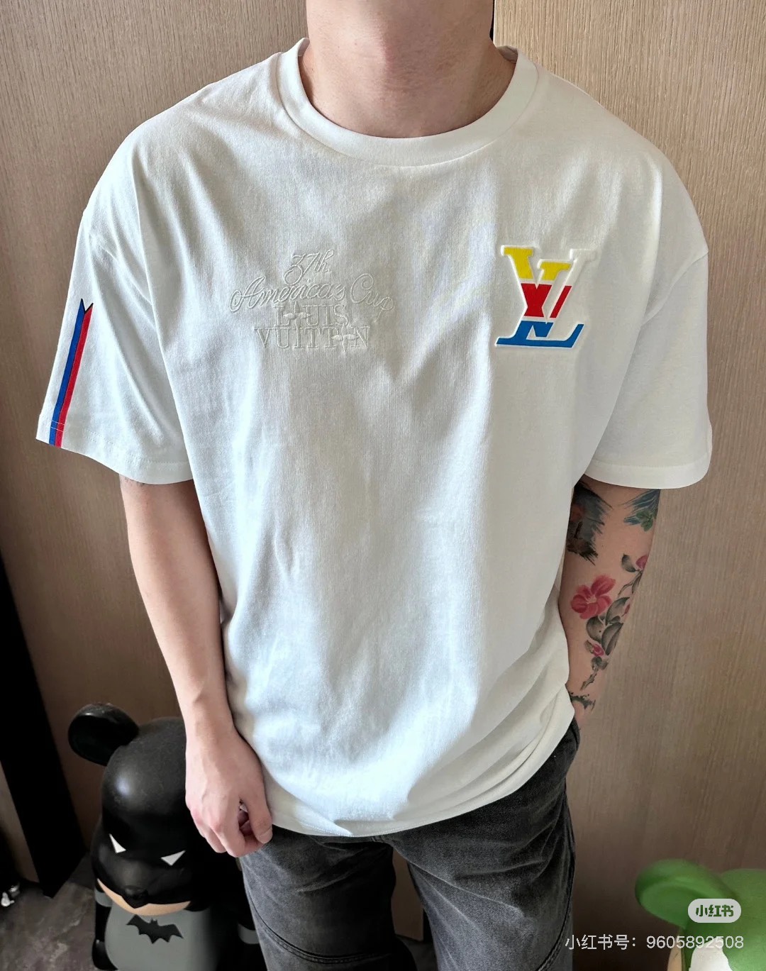NIGO Louis Vuitton Men's Summer White Logo Embroidered Crew Neck Cotton Short Sleeve T-Shirt #nigo72787