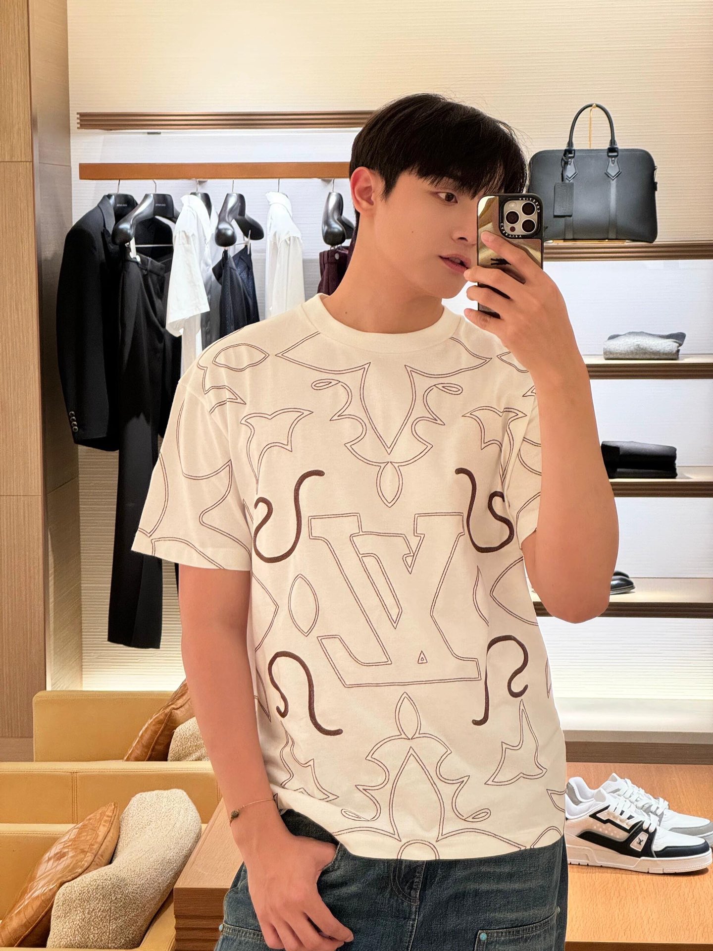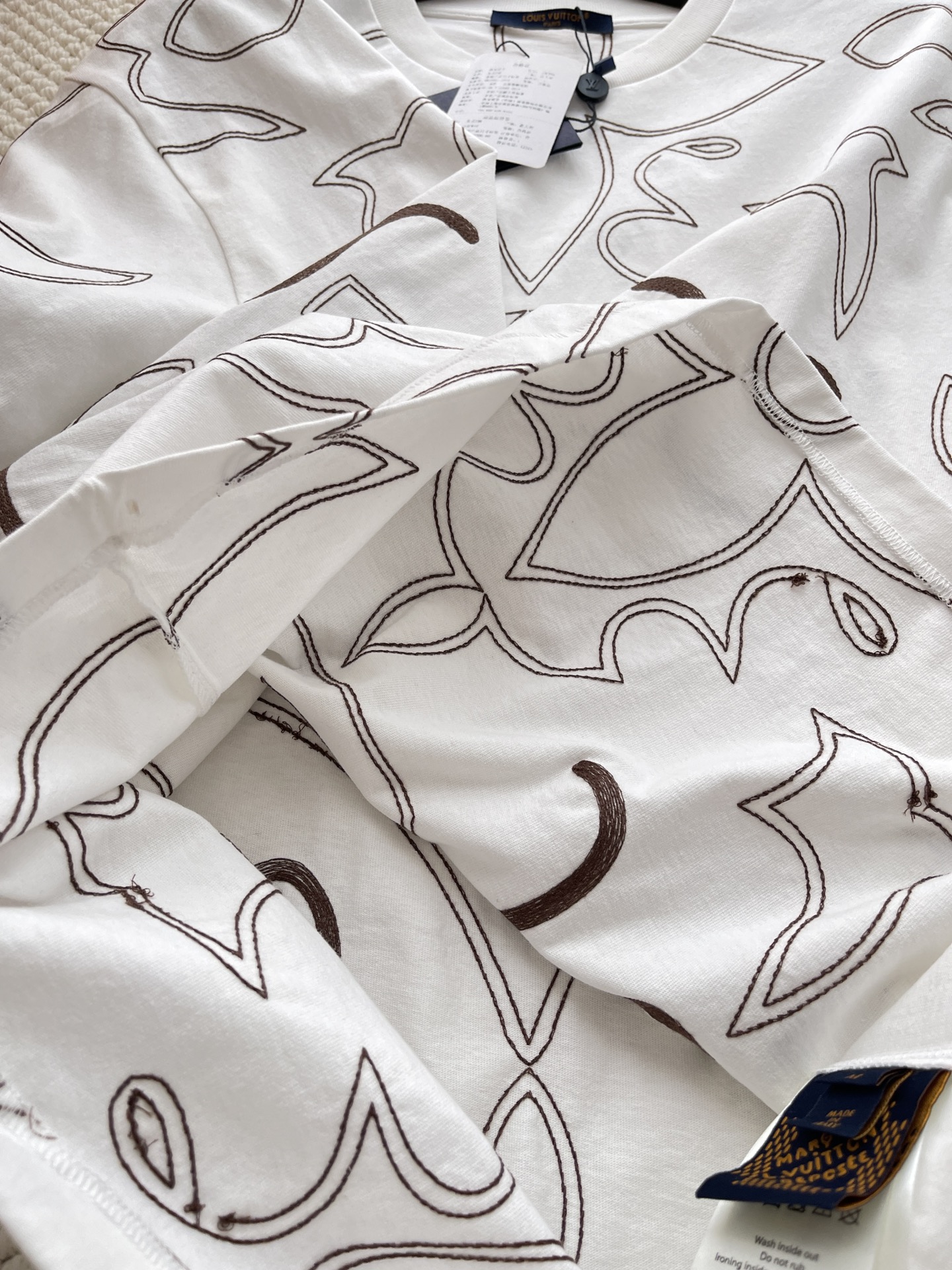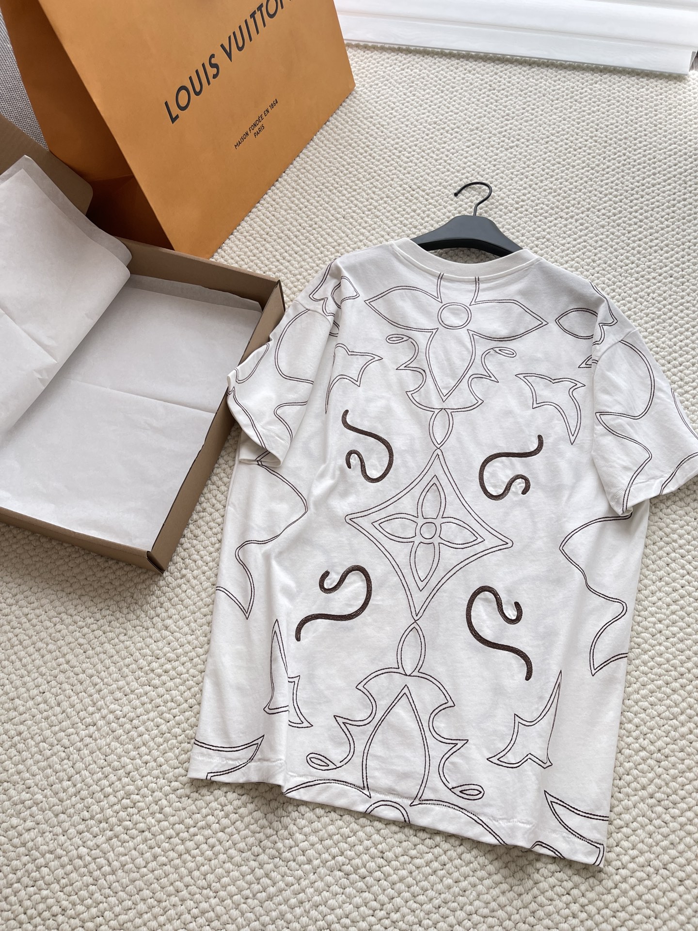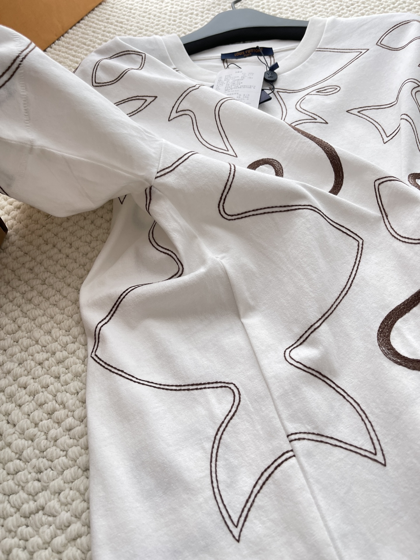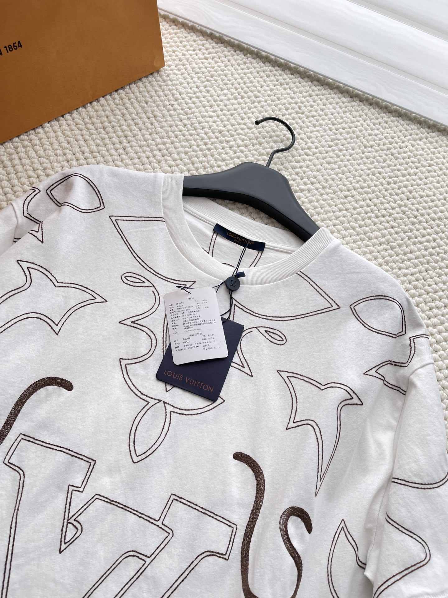 NIGO Louis Vuitton Men's Summer White Logo Letter Embroidery Round Neck Casual Short Sleeve T-Shirt #nigo72989