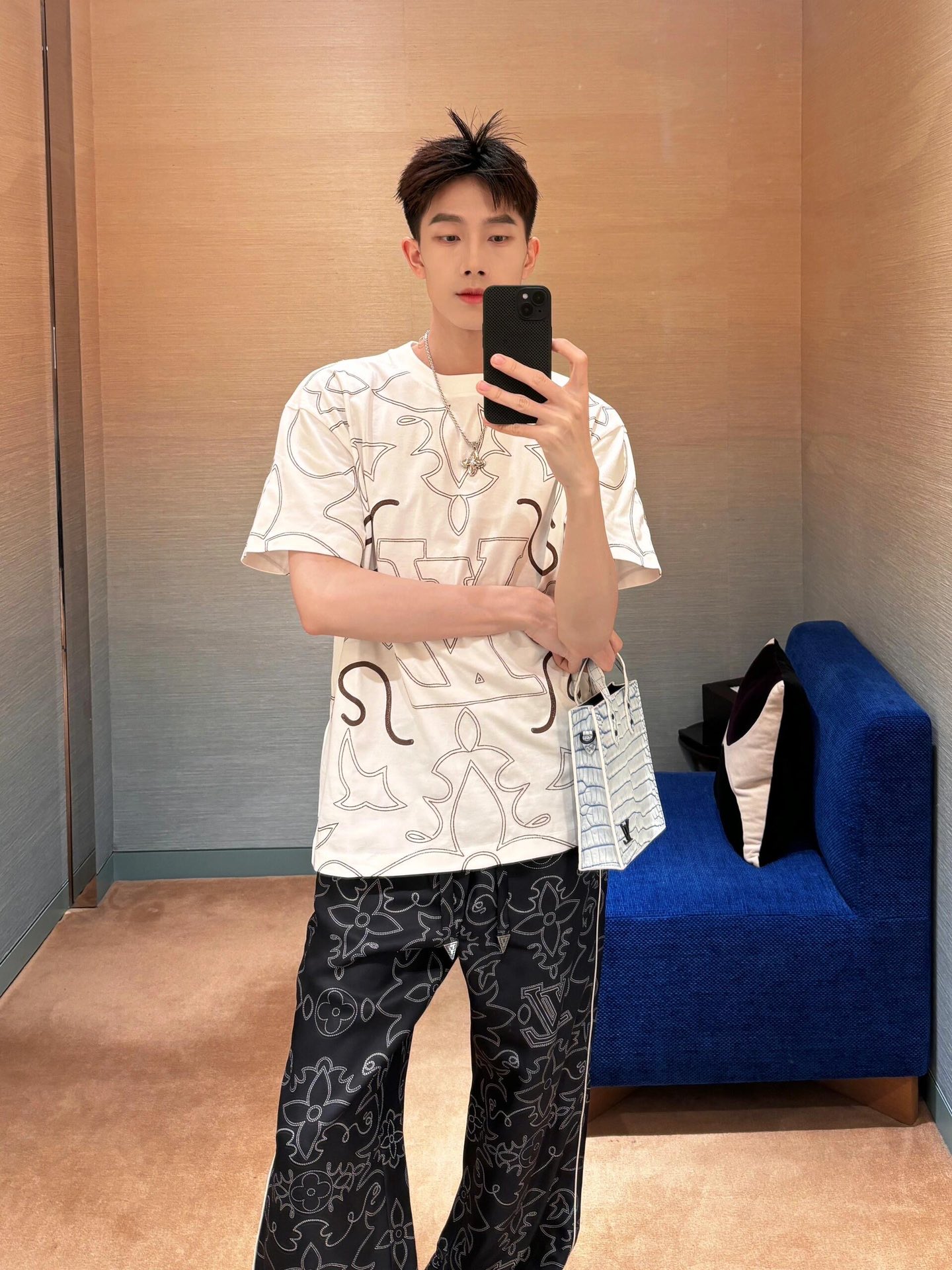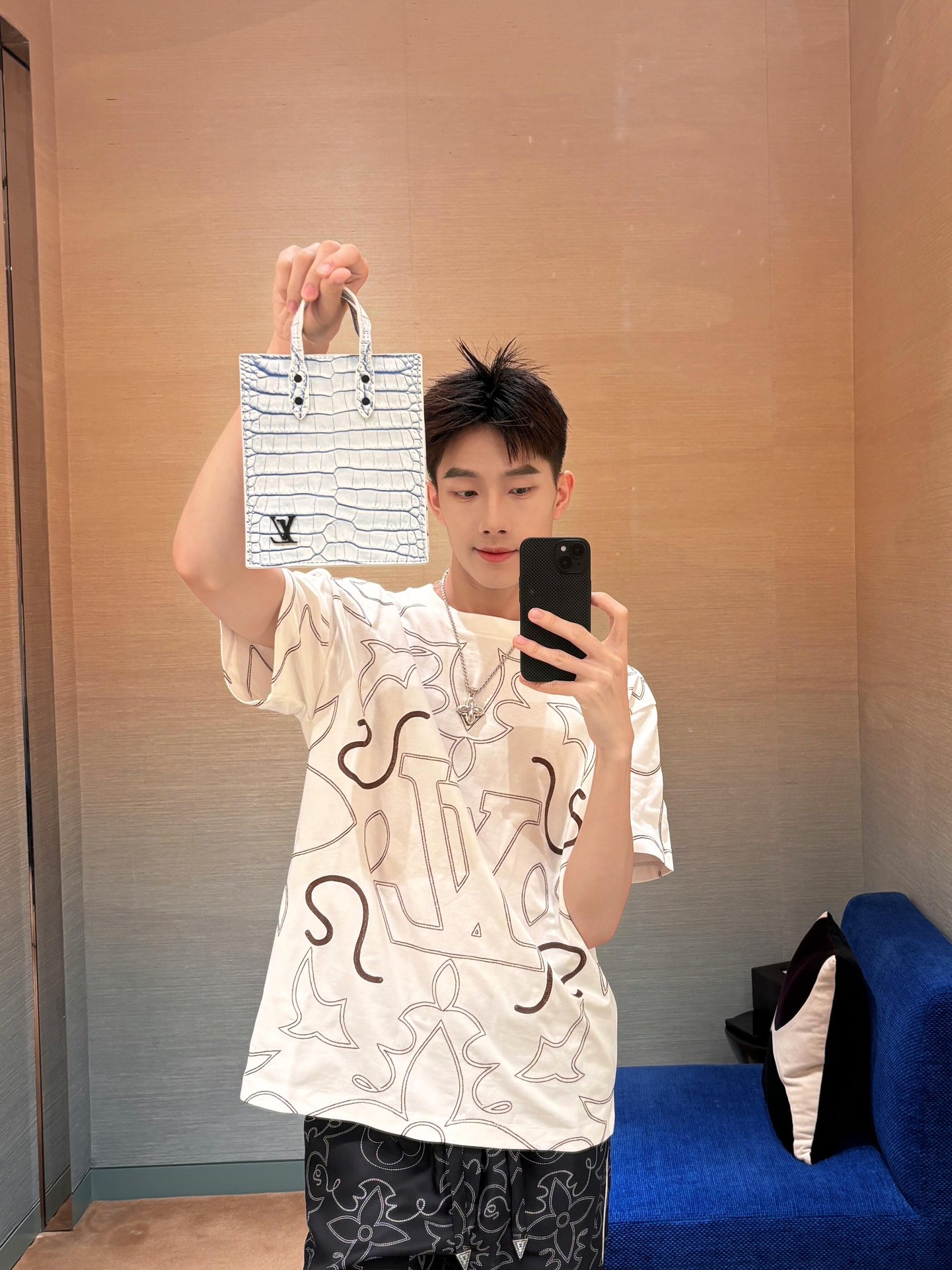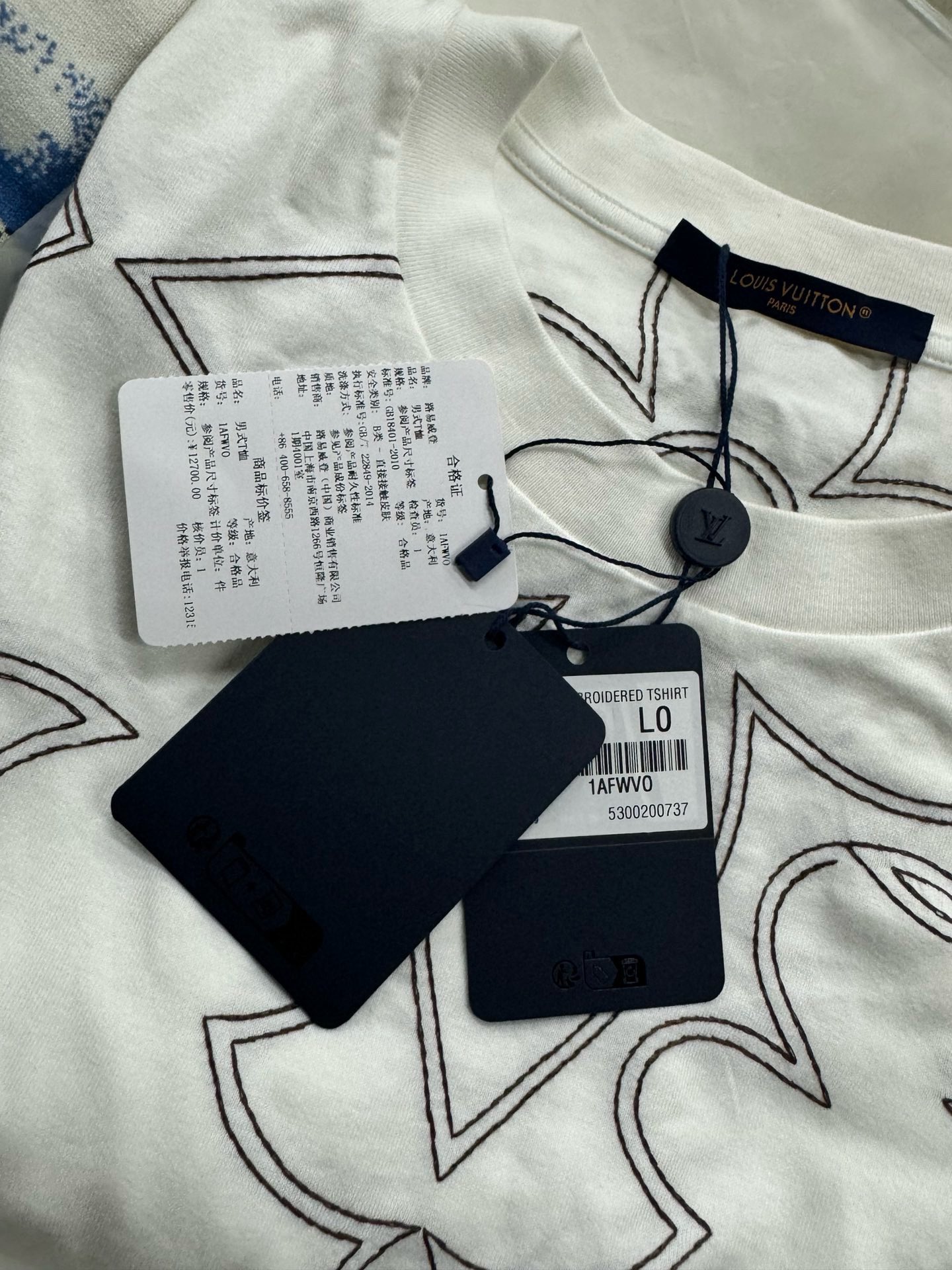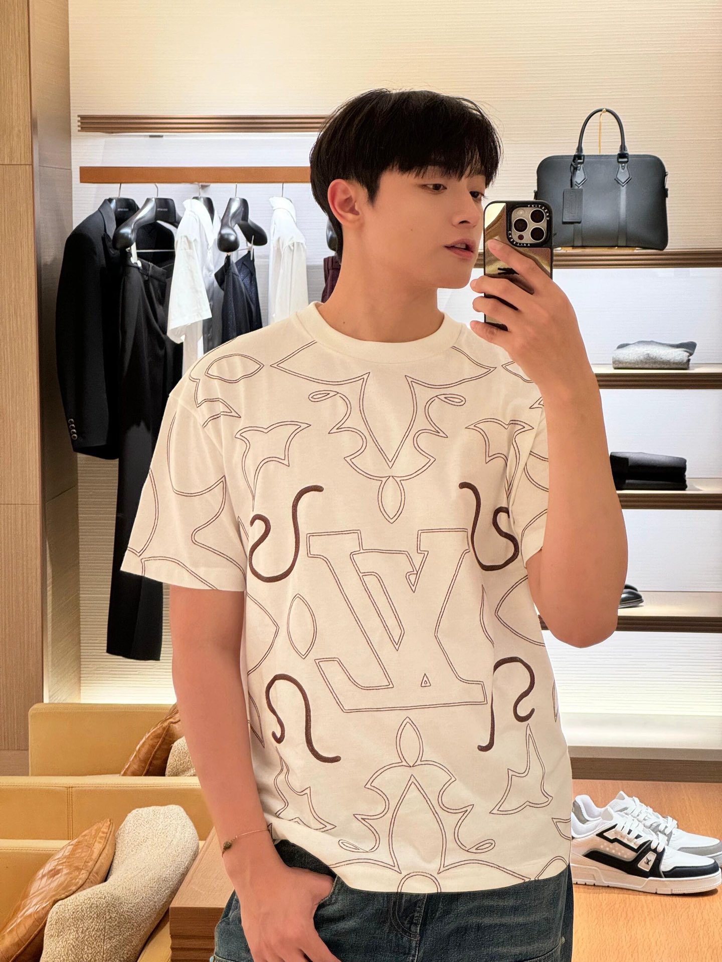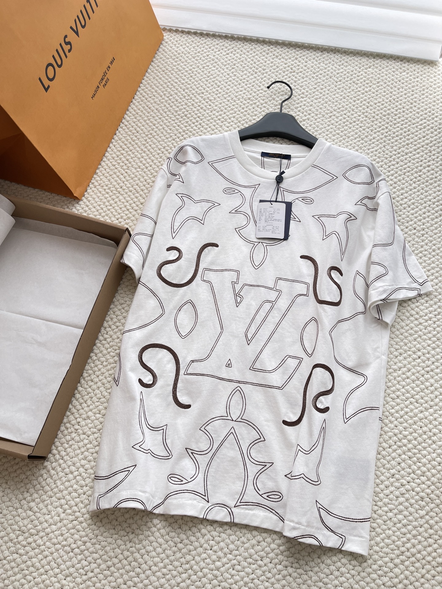 NIGO Louis Vuitton Men's Summer White Logo Letter Embroidery Round Neck Casual Short Sleeve T-Shirt #nigo72989