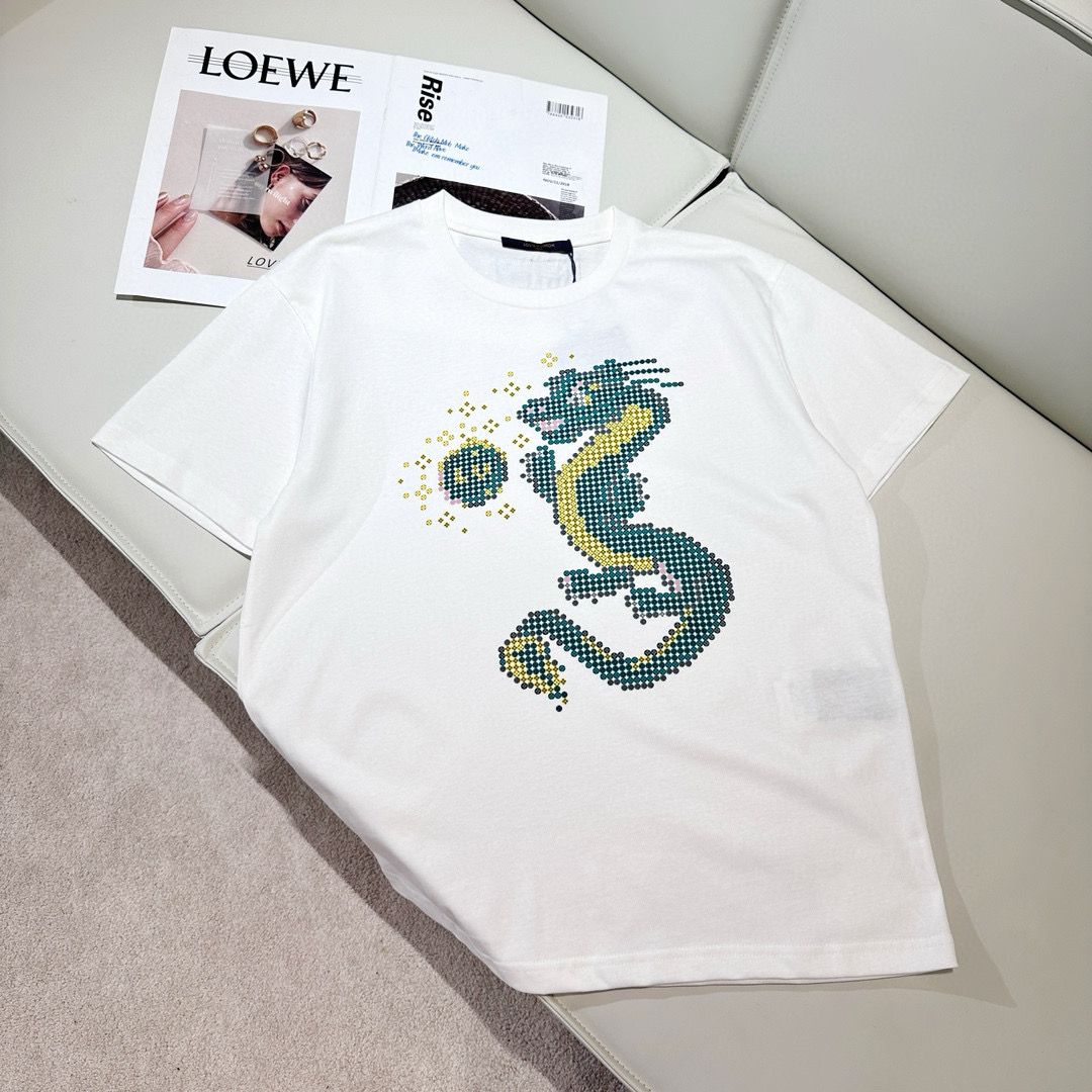 NIGO Louis Vuitton Men's Summer Year of the Dragon Printed Round Neck Cotton White Short Sleeve T-Shirt #nigo97991