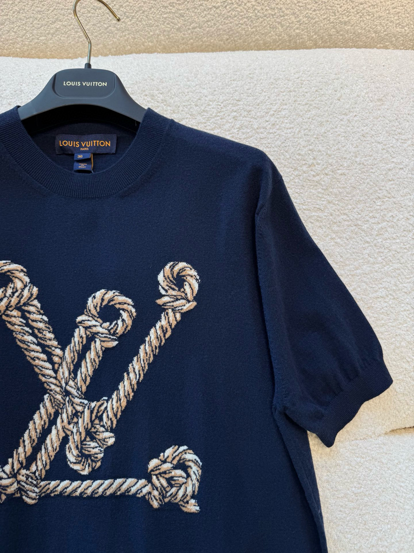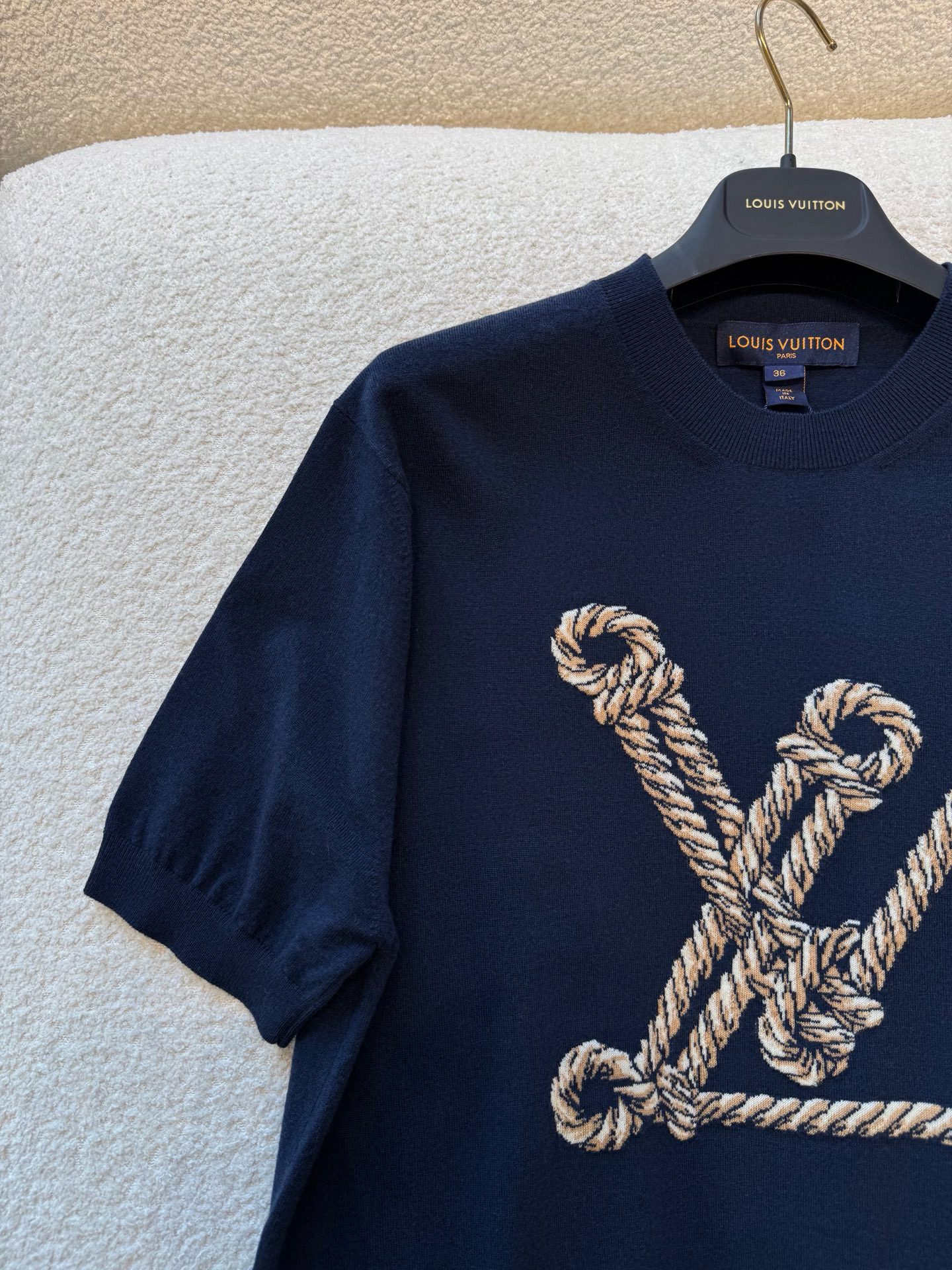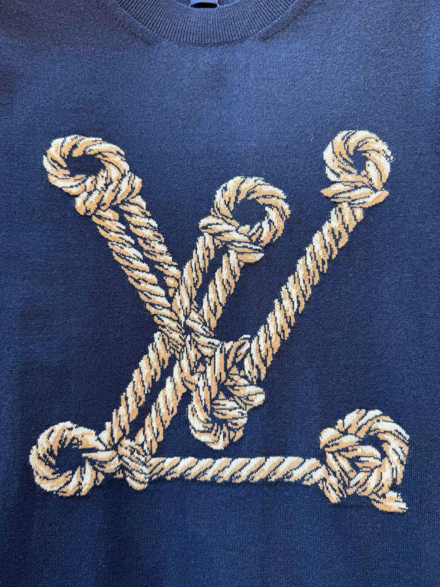 NIGO Louis Vuitton Women's Spring And Summer Nautical Series Blue Knitted T-shirt Fashion Trend Jacquard Casual Round Neck Top #nigo81629