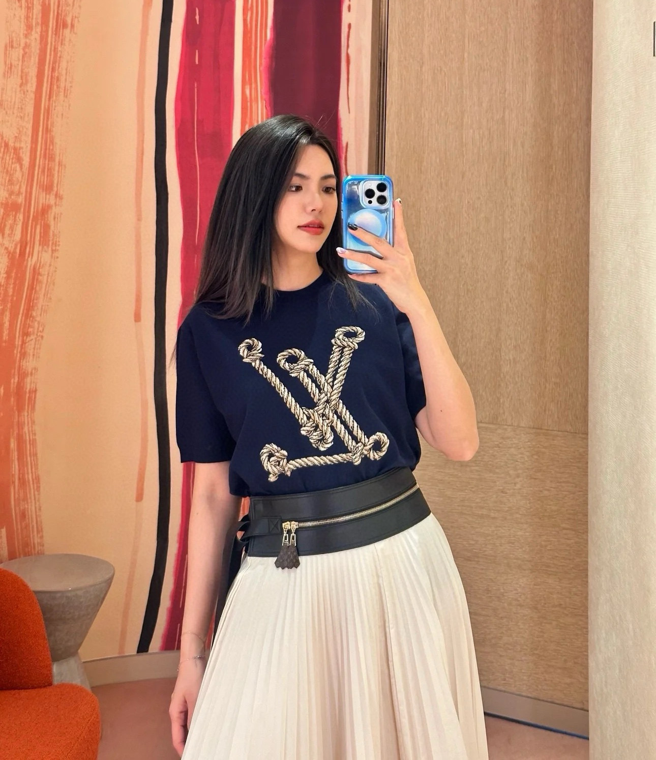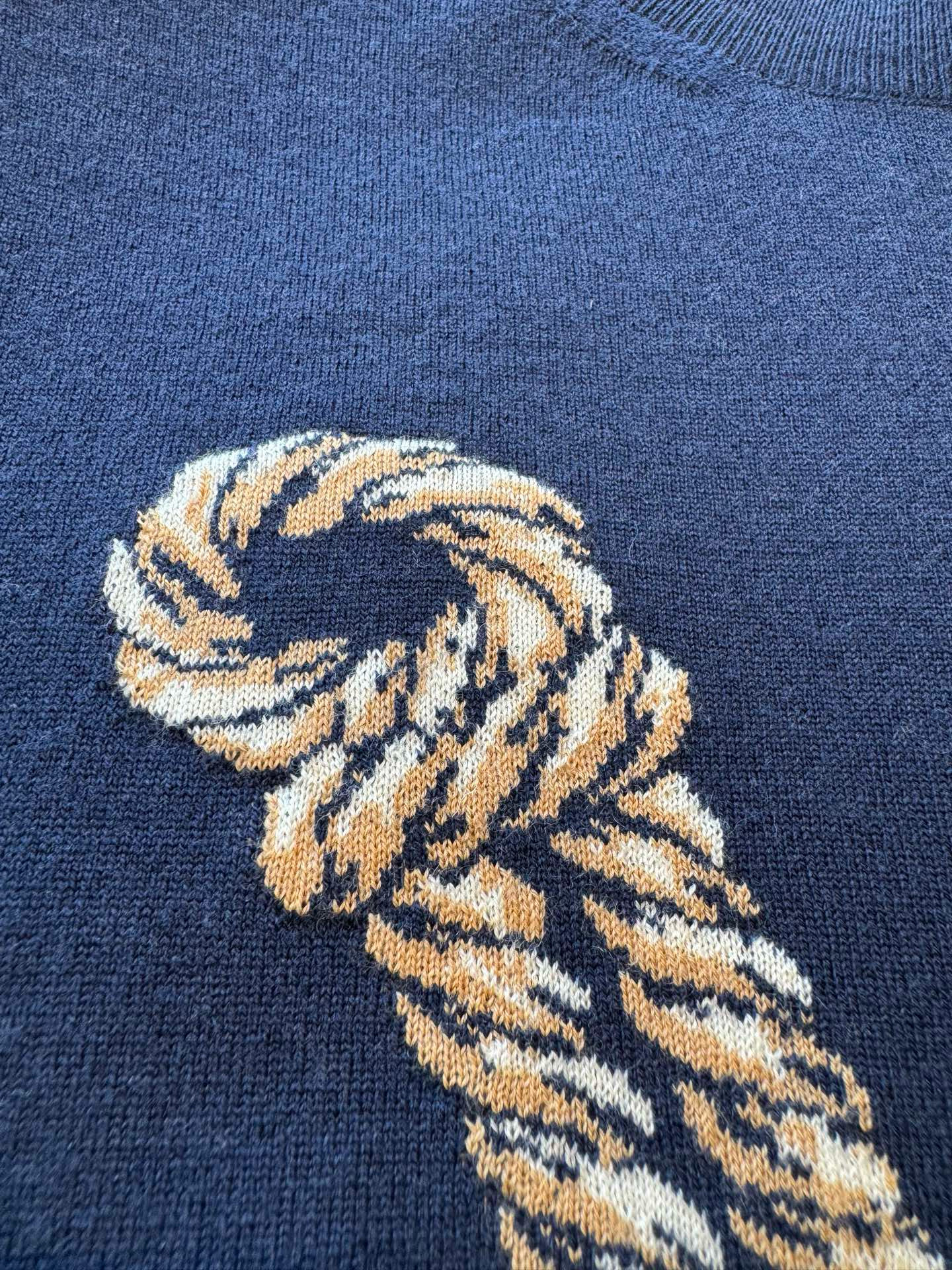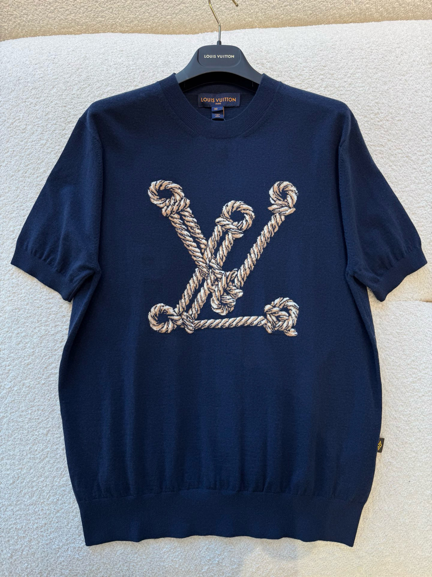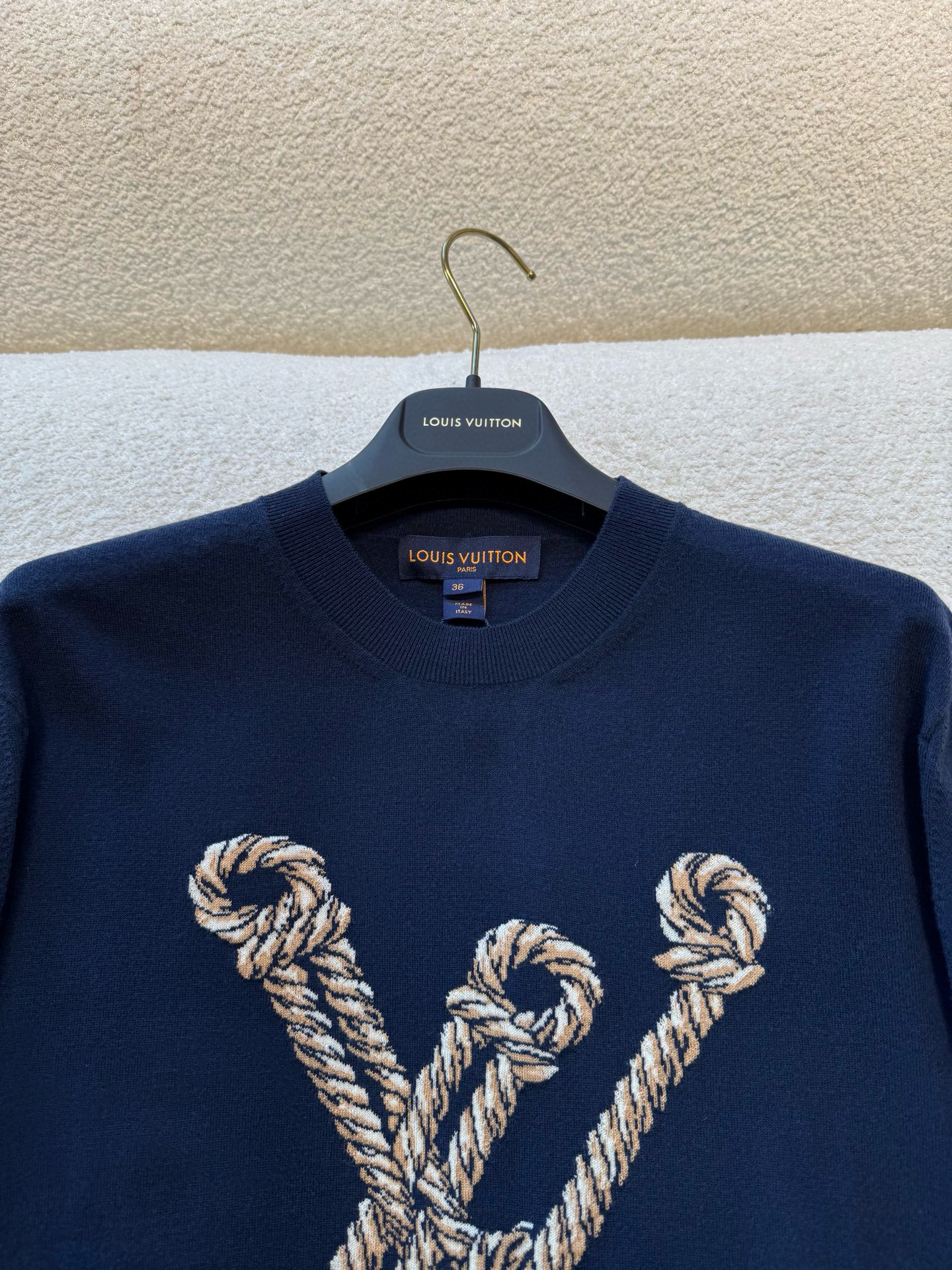 NIGO Louis Vuitton Women's Spring And Summer Nautical Series Blue Knitted T-shirt Fashion Trend Jacquard Casual Round Neck Top #nigo81629