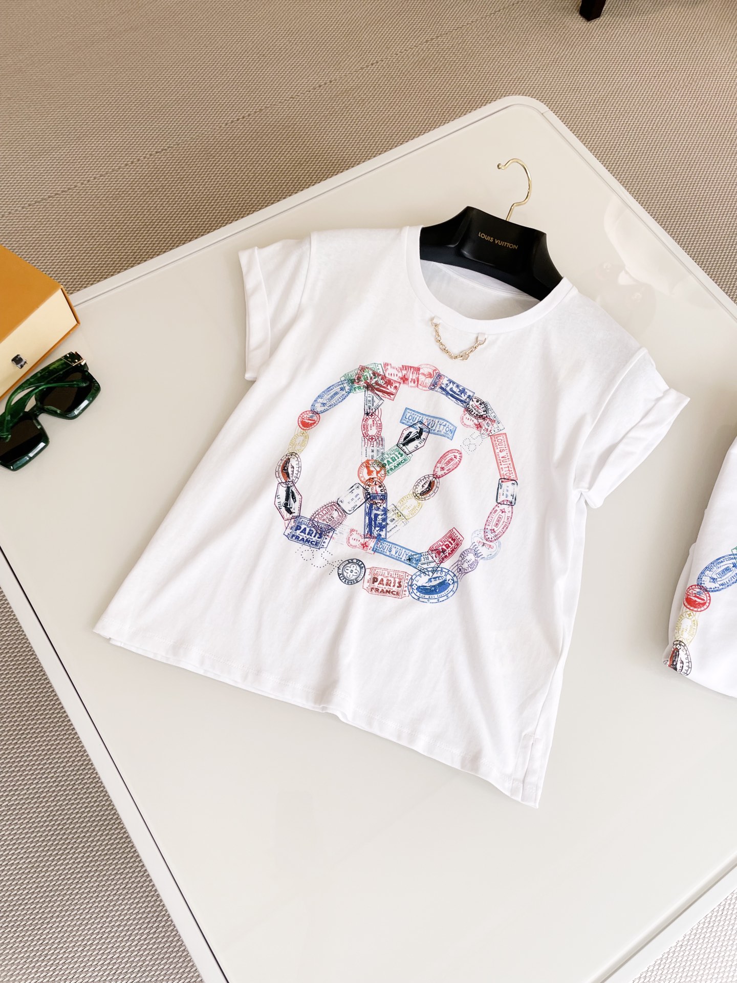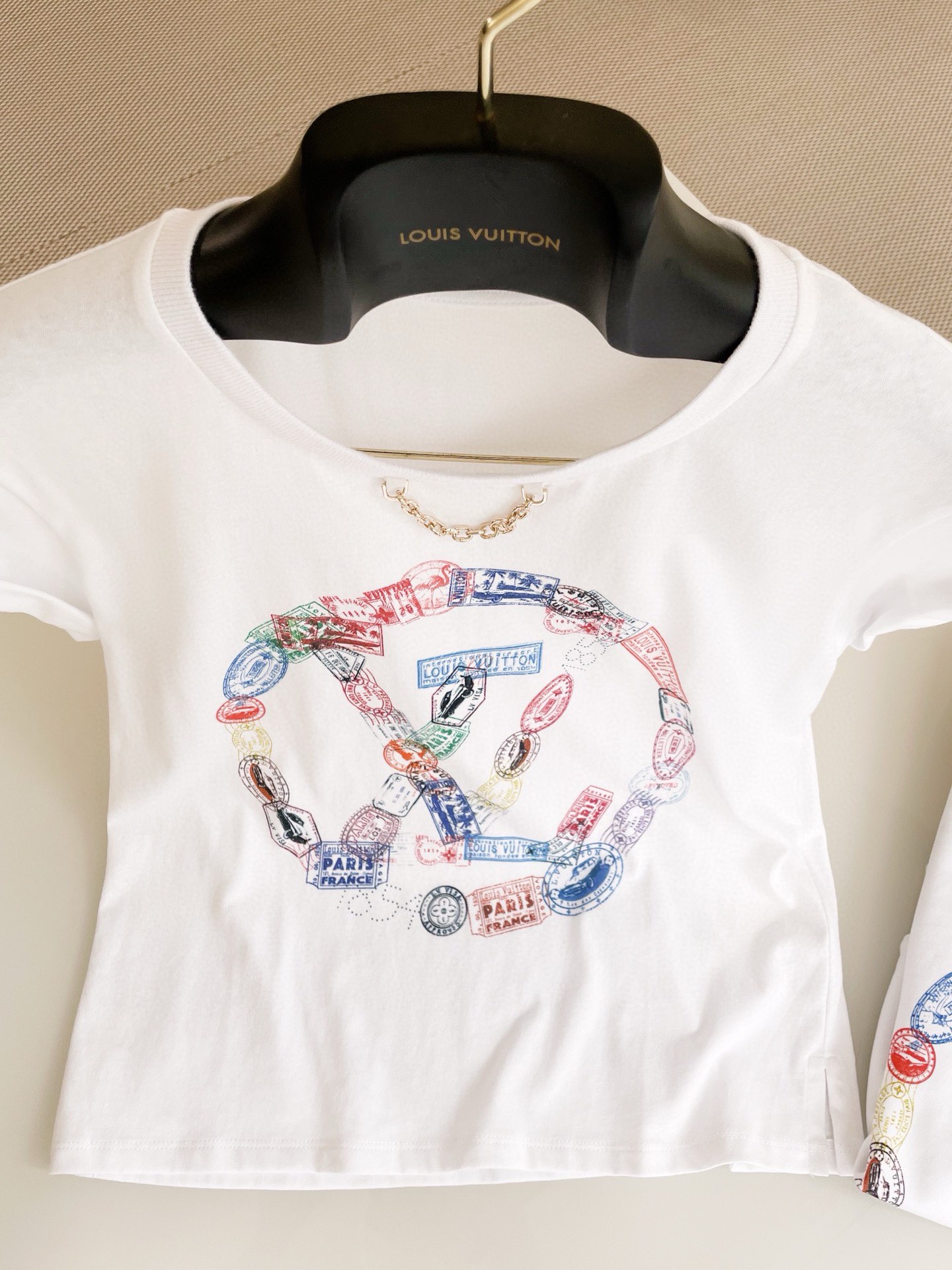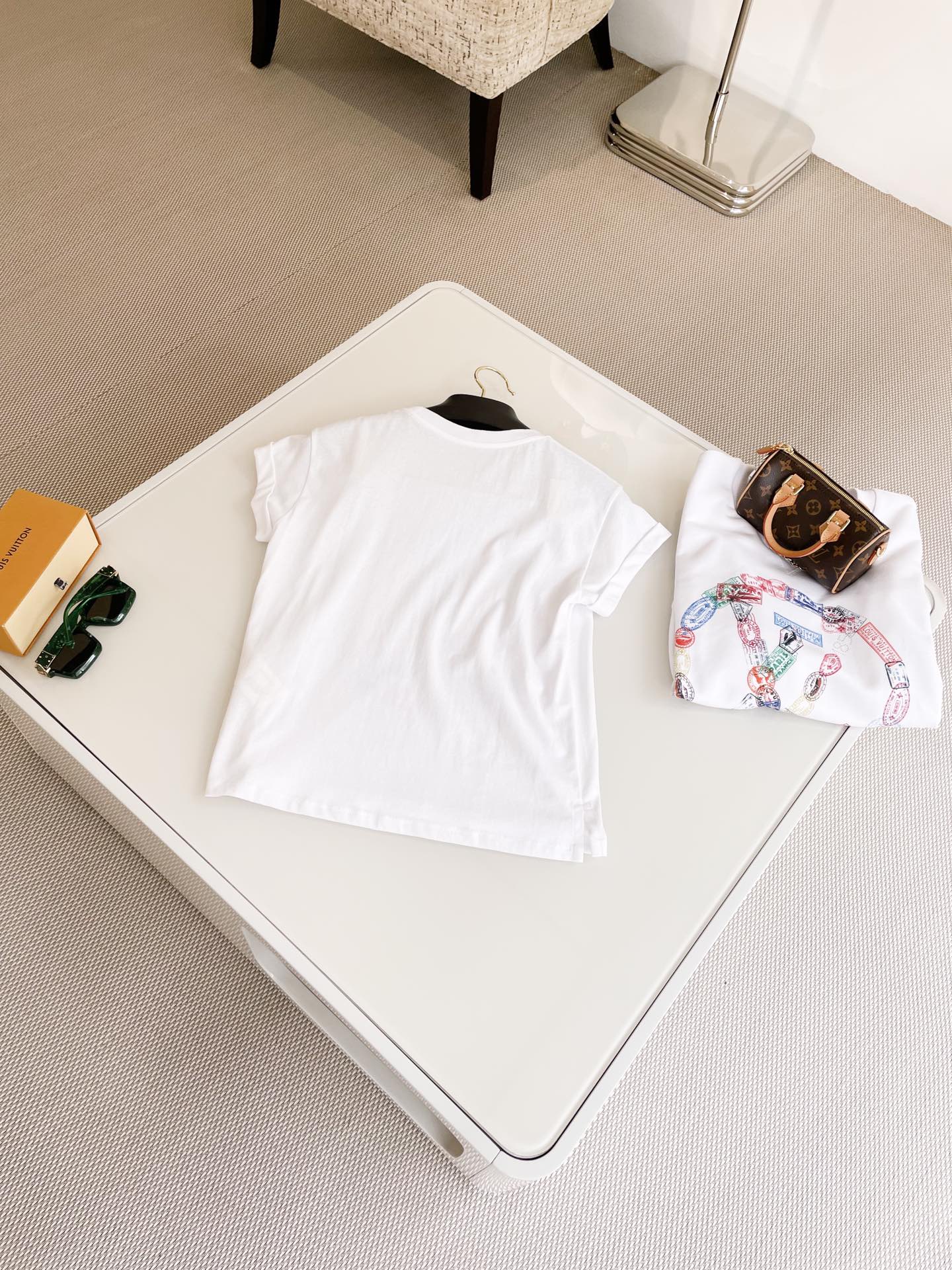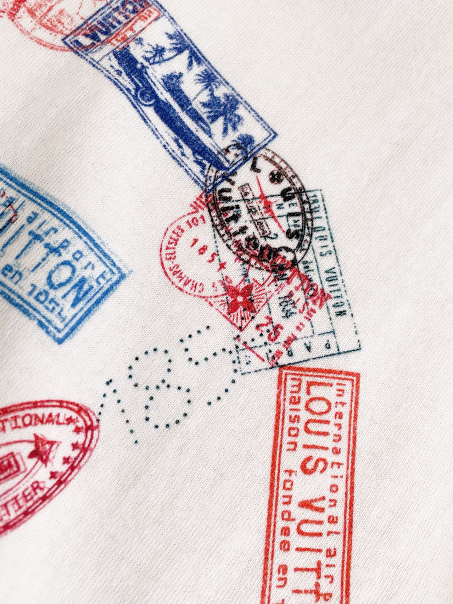 NIGO Louis Vuitton Women's Summer White Round Neck Travel Seal Print Cotton Short Sleeve T-Shirt #nigo74179