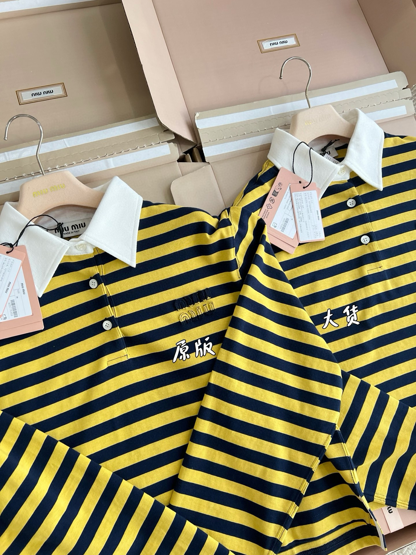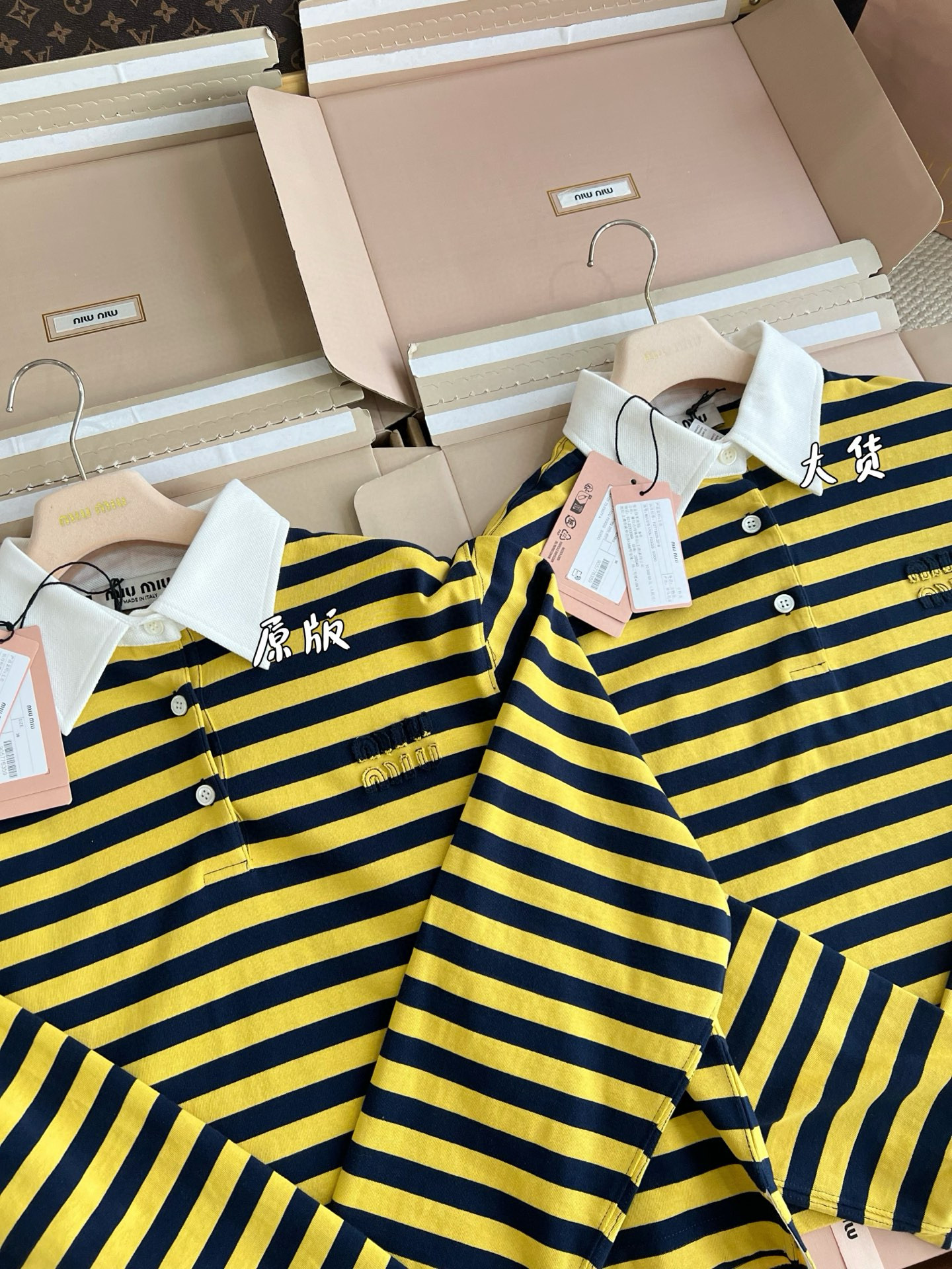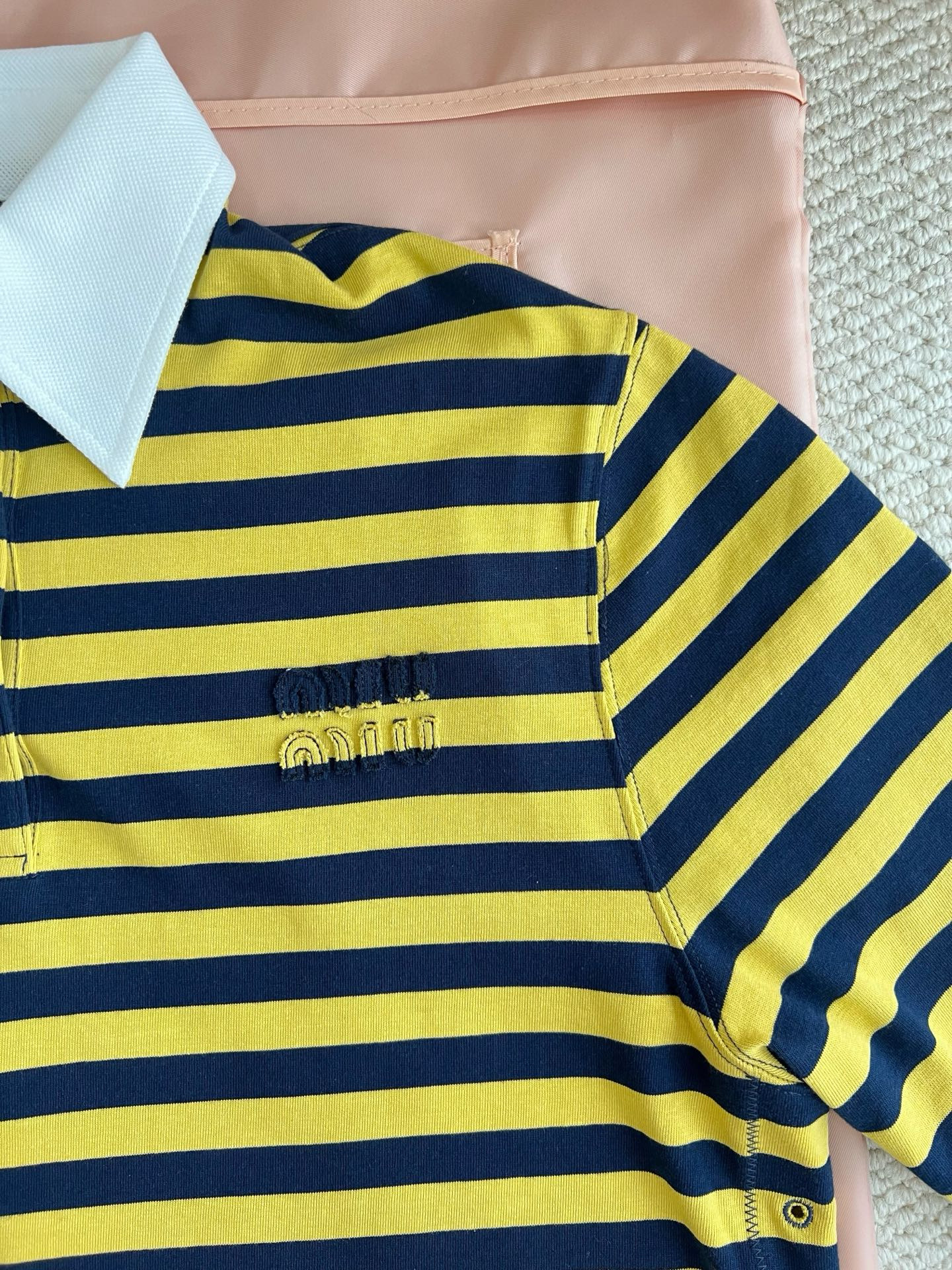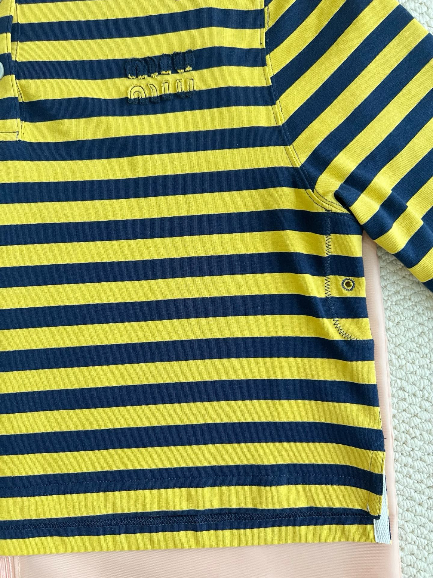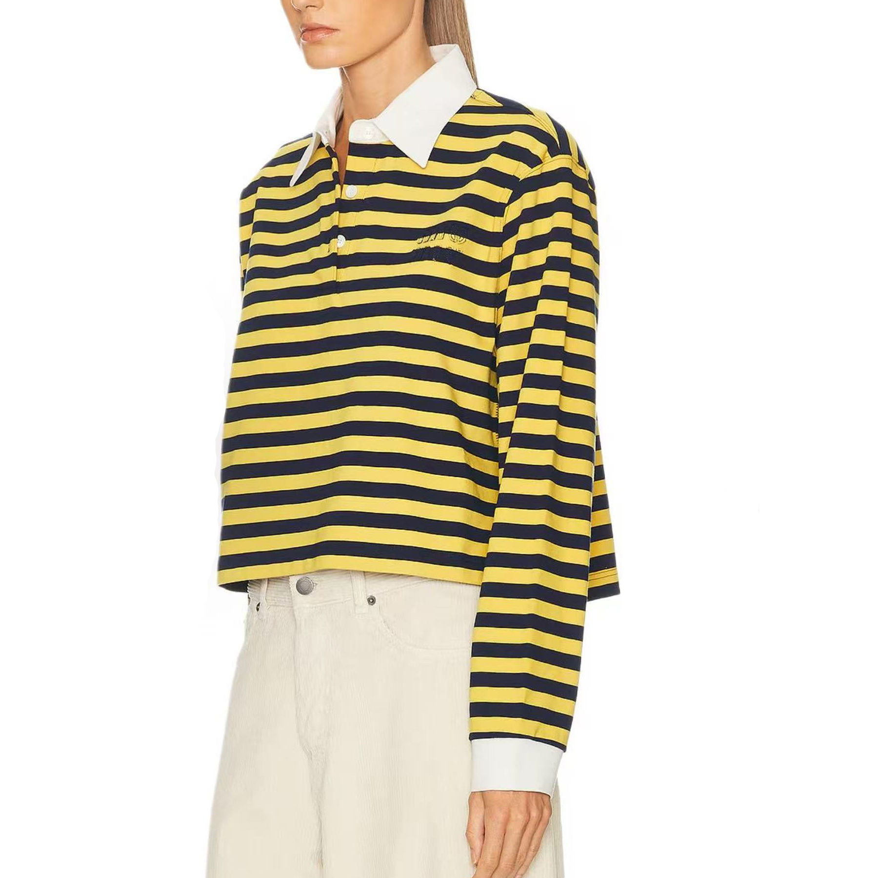 Home / T-shirt / NIGO MiuMiu Women's Spring And Summer Fashion Trend Cotton Striped Embroidered Logo Long Flow Polo Shirt T-shirt Loose Casual Top #nigo81618