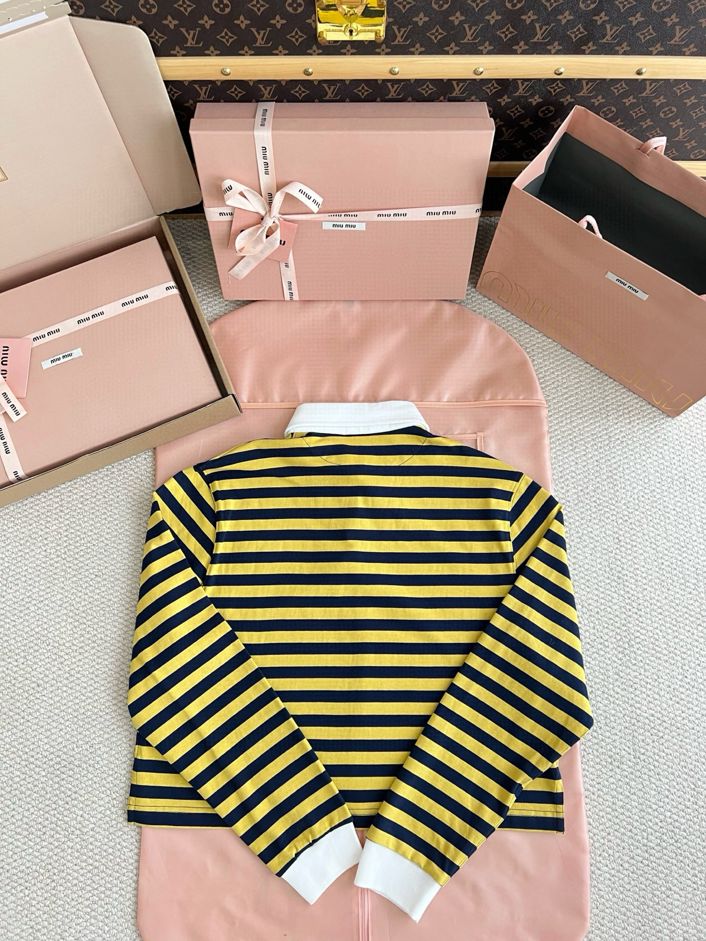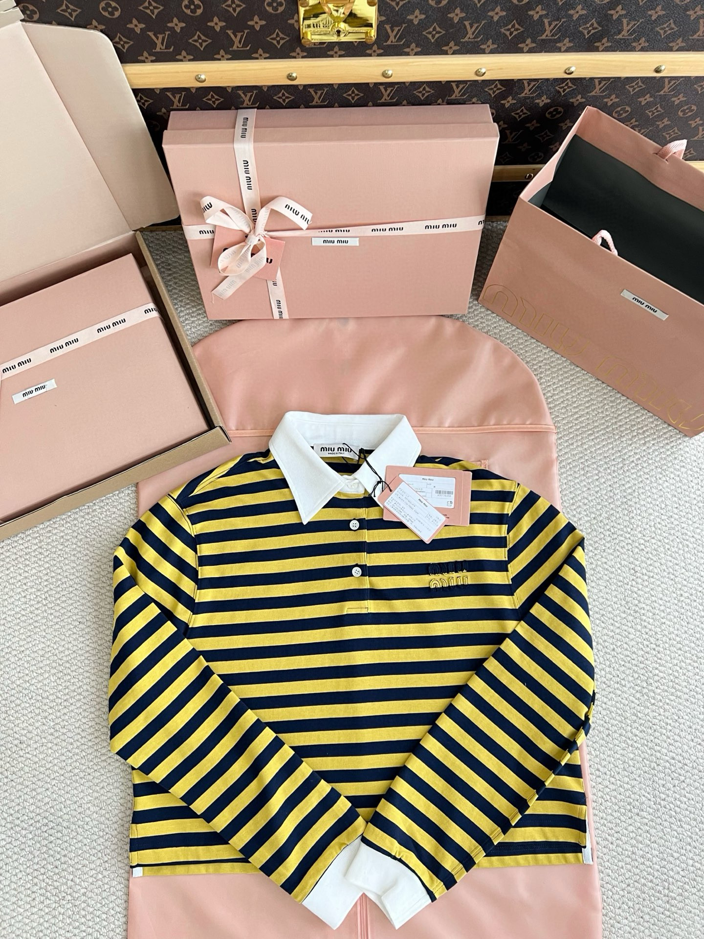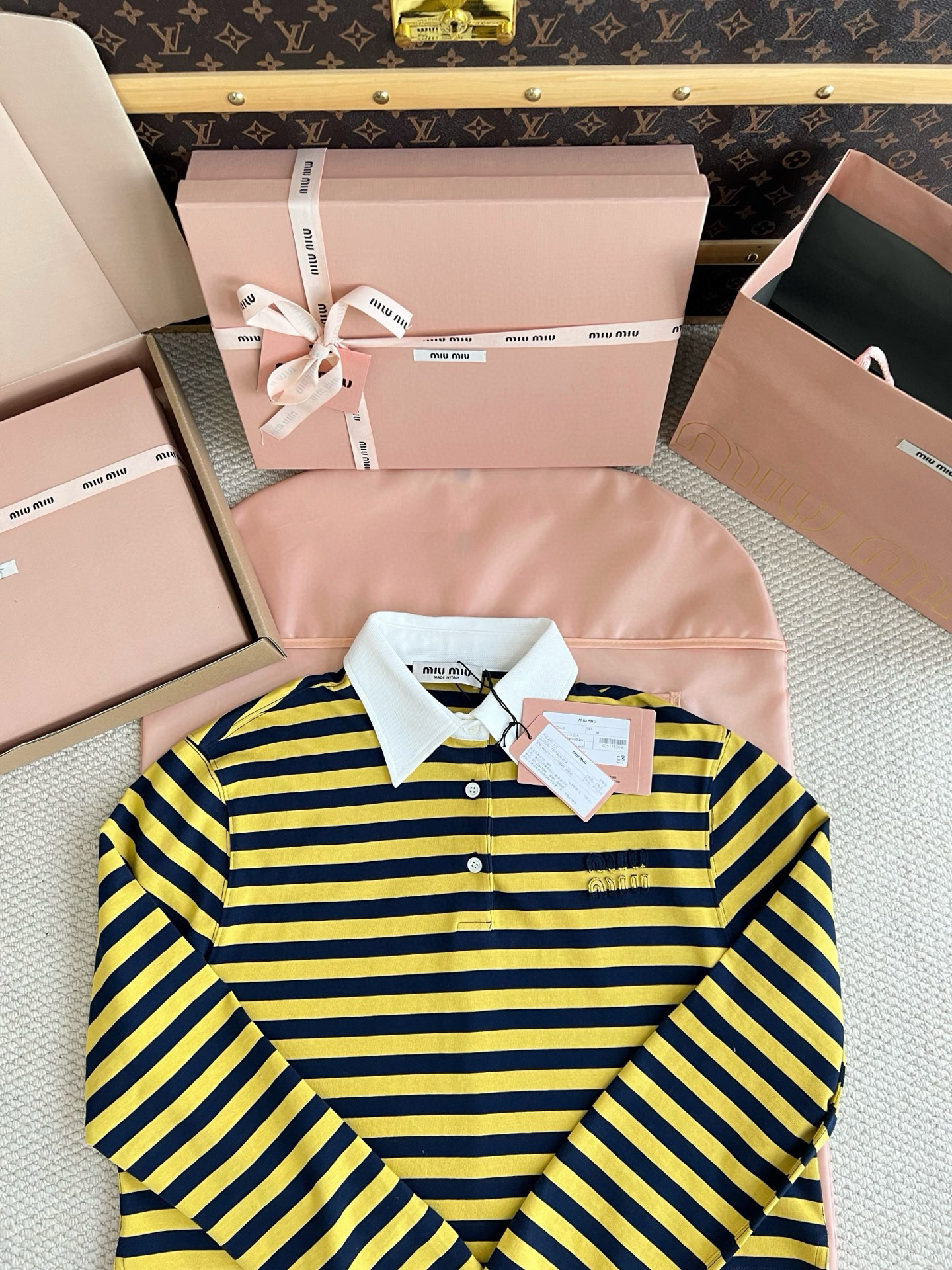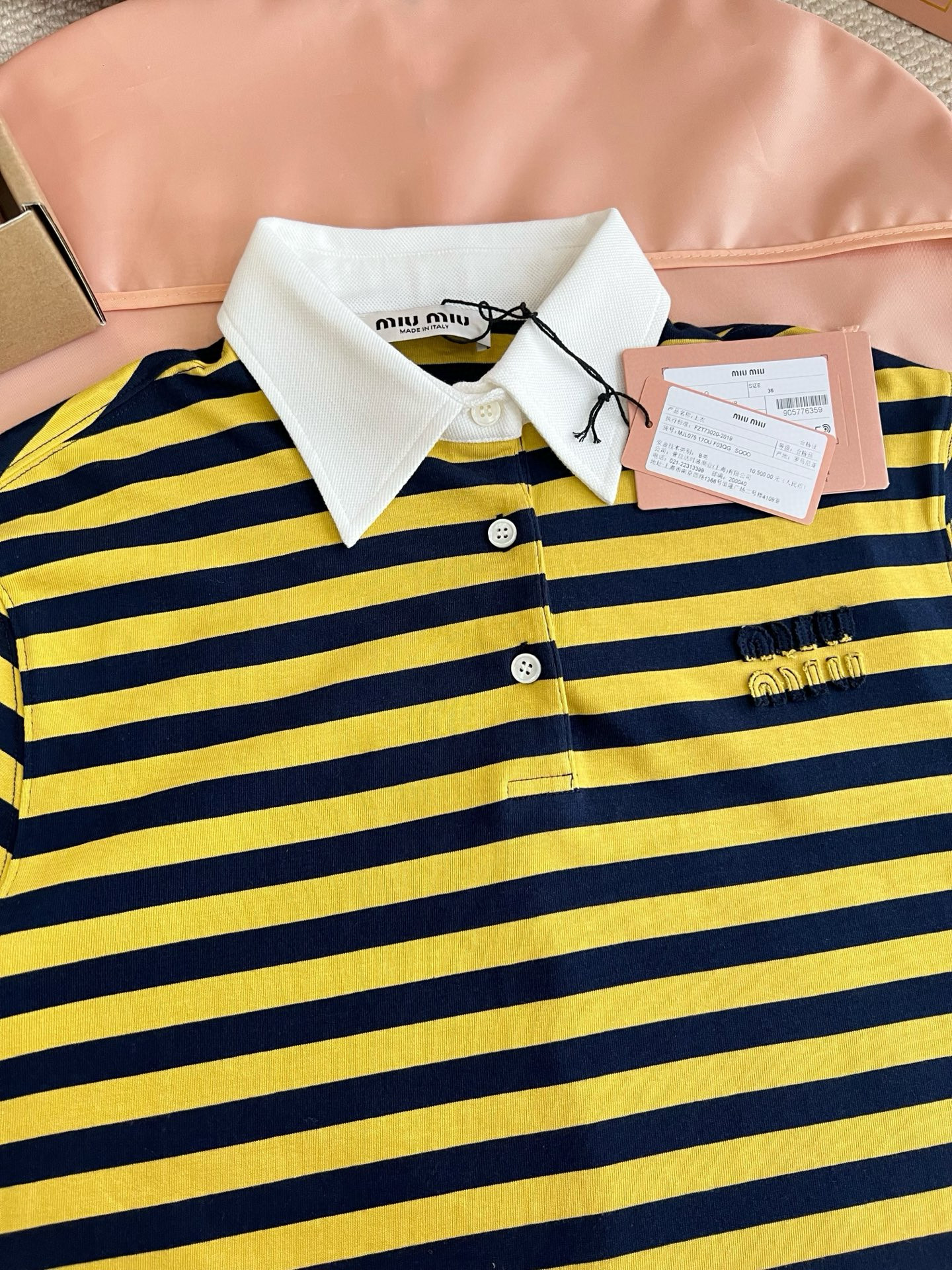Home / T-shirt / NIGO MiuMiu Women's Spring And Summer Fashion Trend Cotton Striped Embroidered Logo Long Flow Polo Shirt T-shirt Loose Casual Top #nigo81618