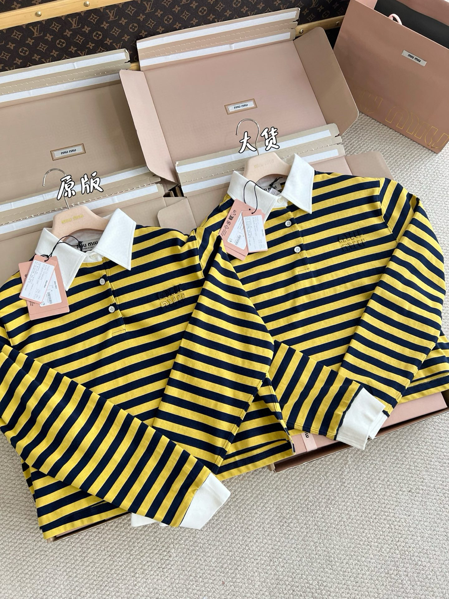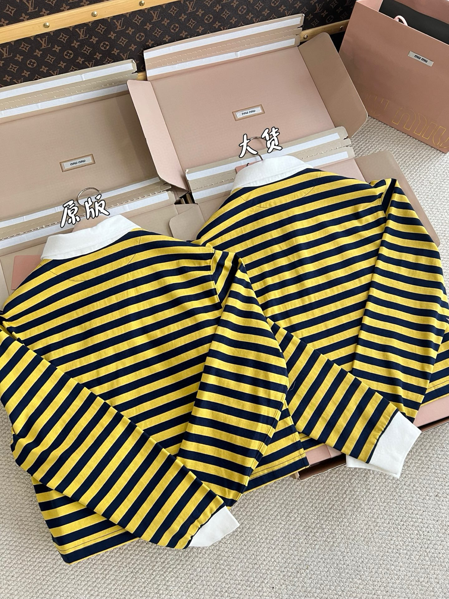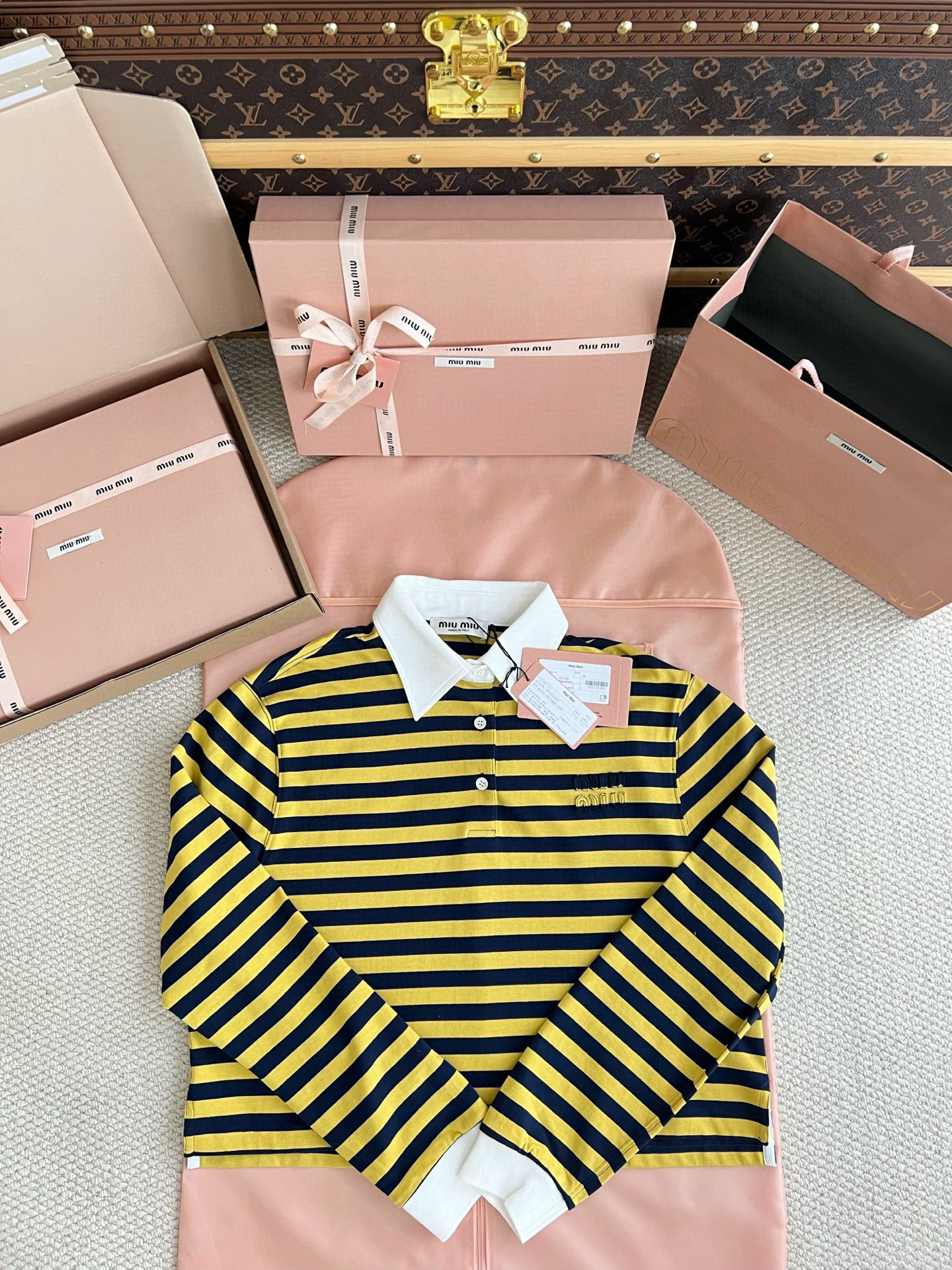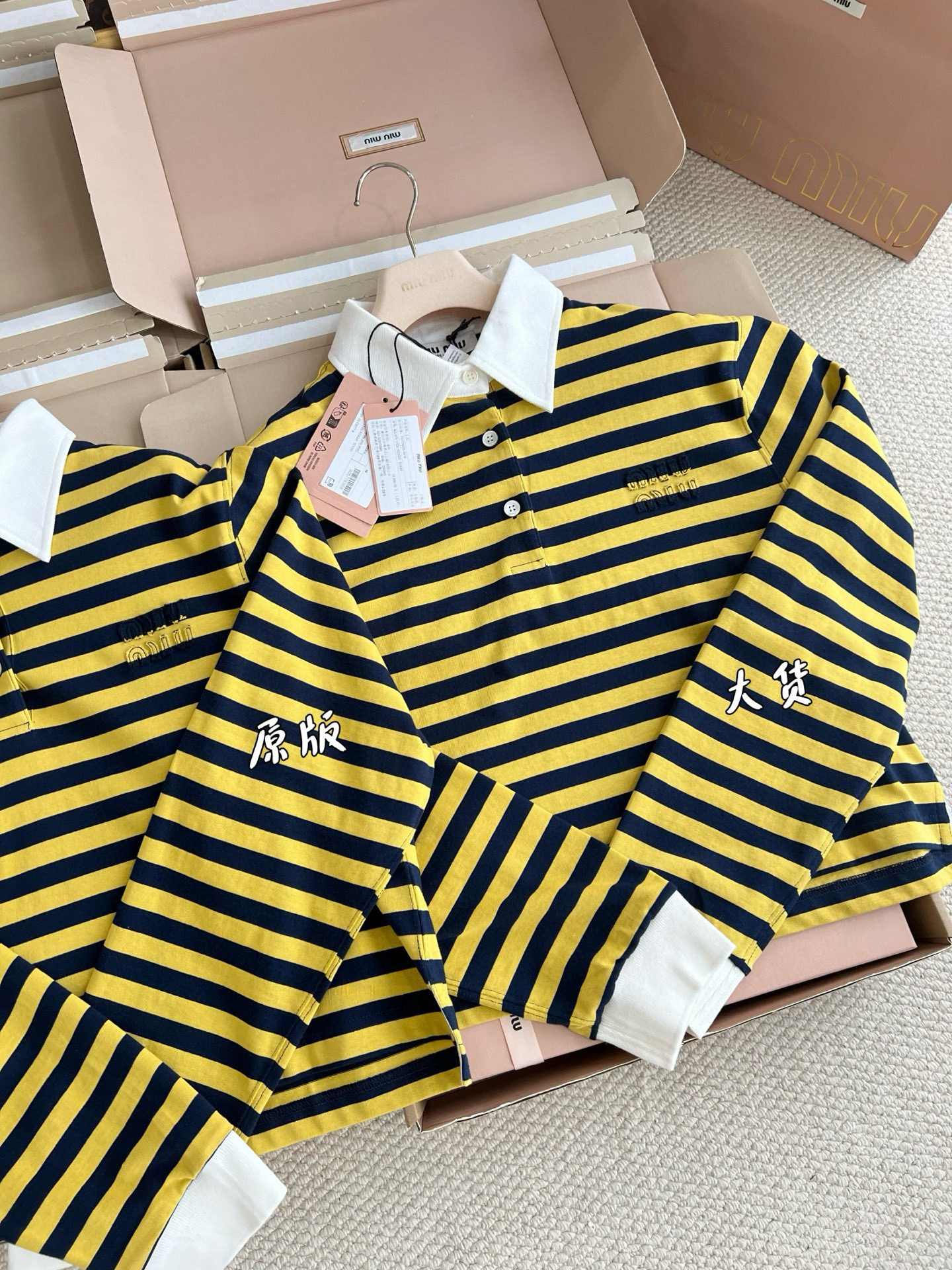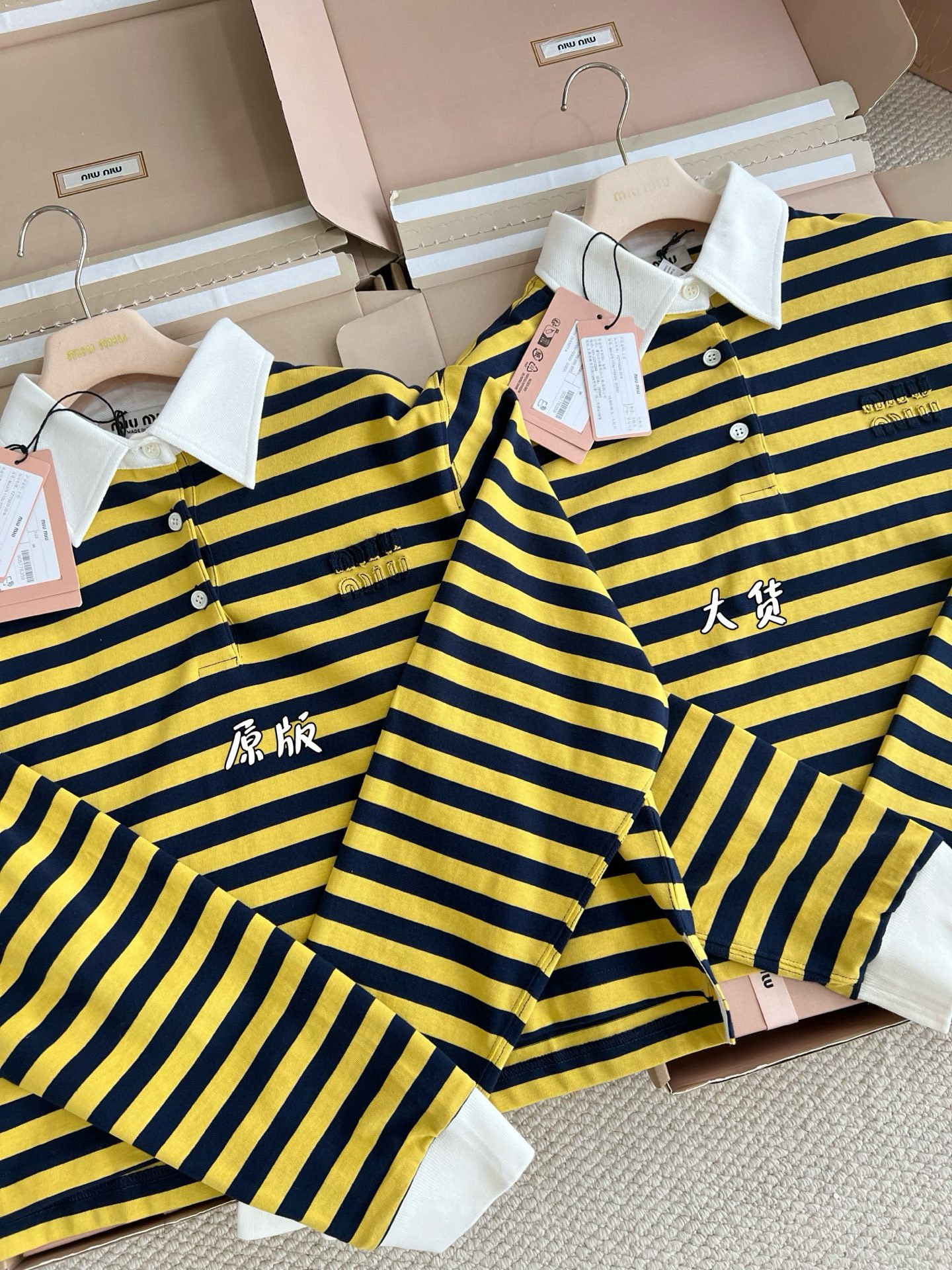 Home / T-shirt / NIGO MiuMiu Women's Spring And Summer Fashion Trend Cotton Striped Embroidered Logo Long Flow Polo Shirt T-shirt Loose Casual Top #nigo81618