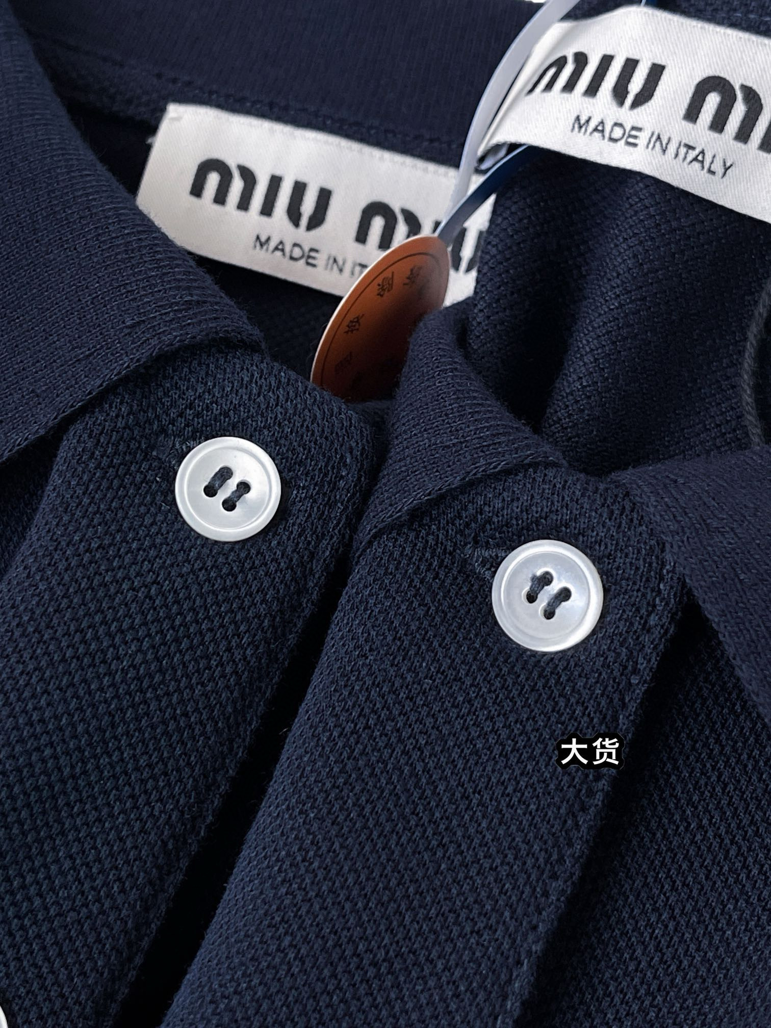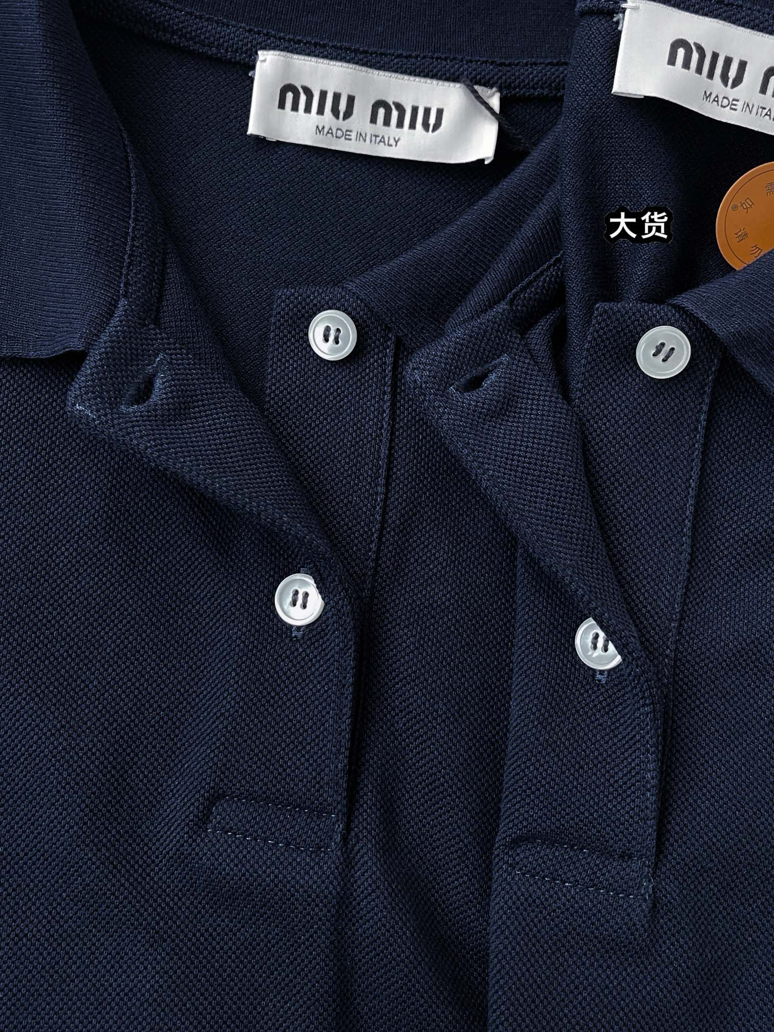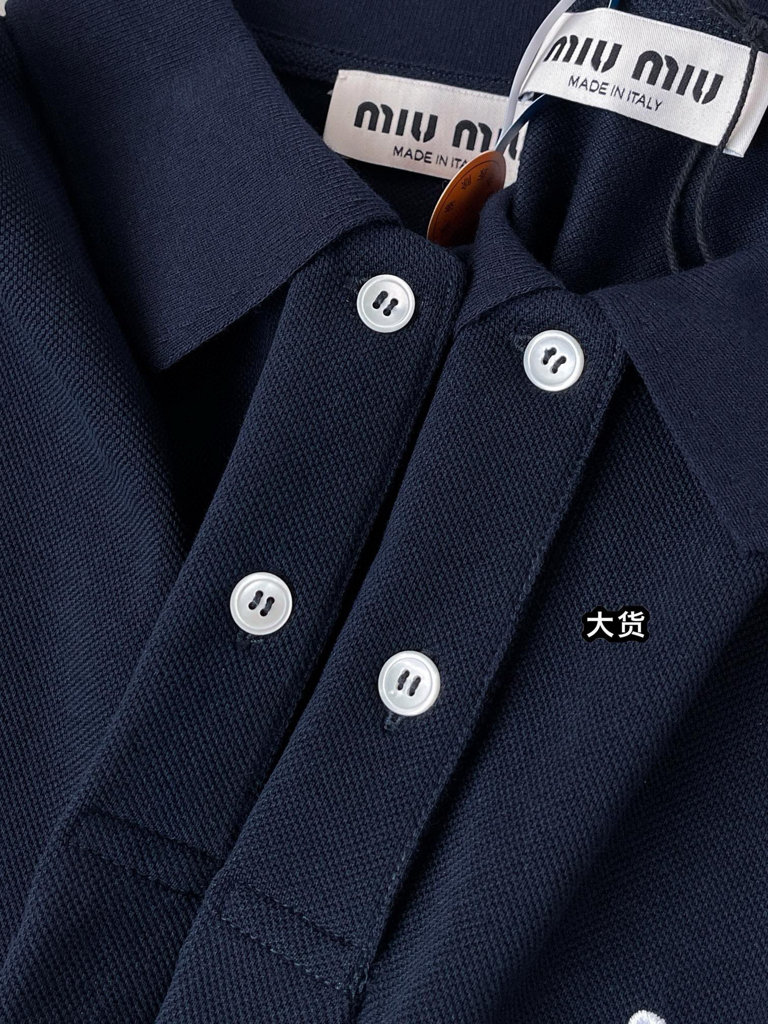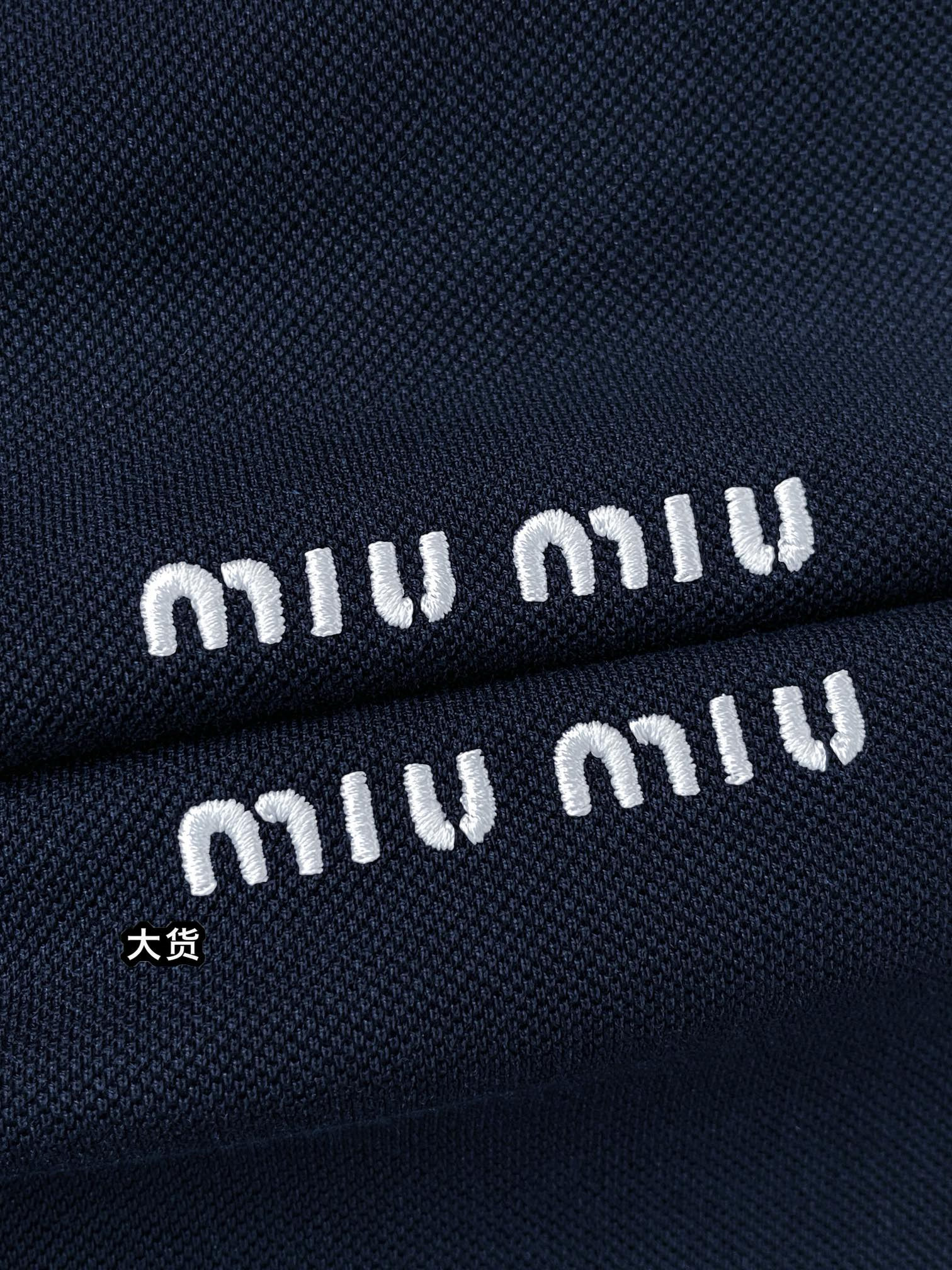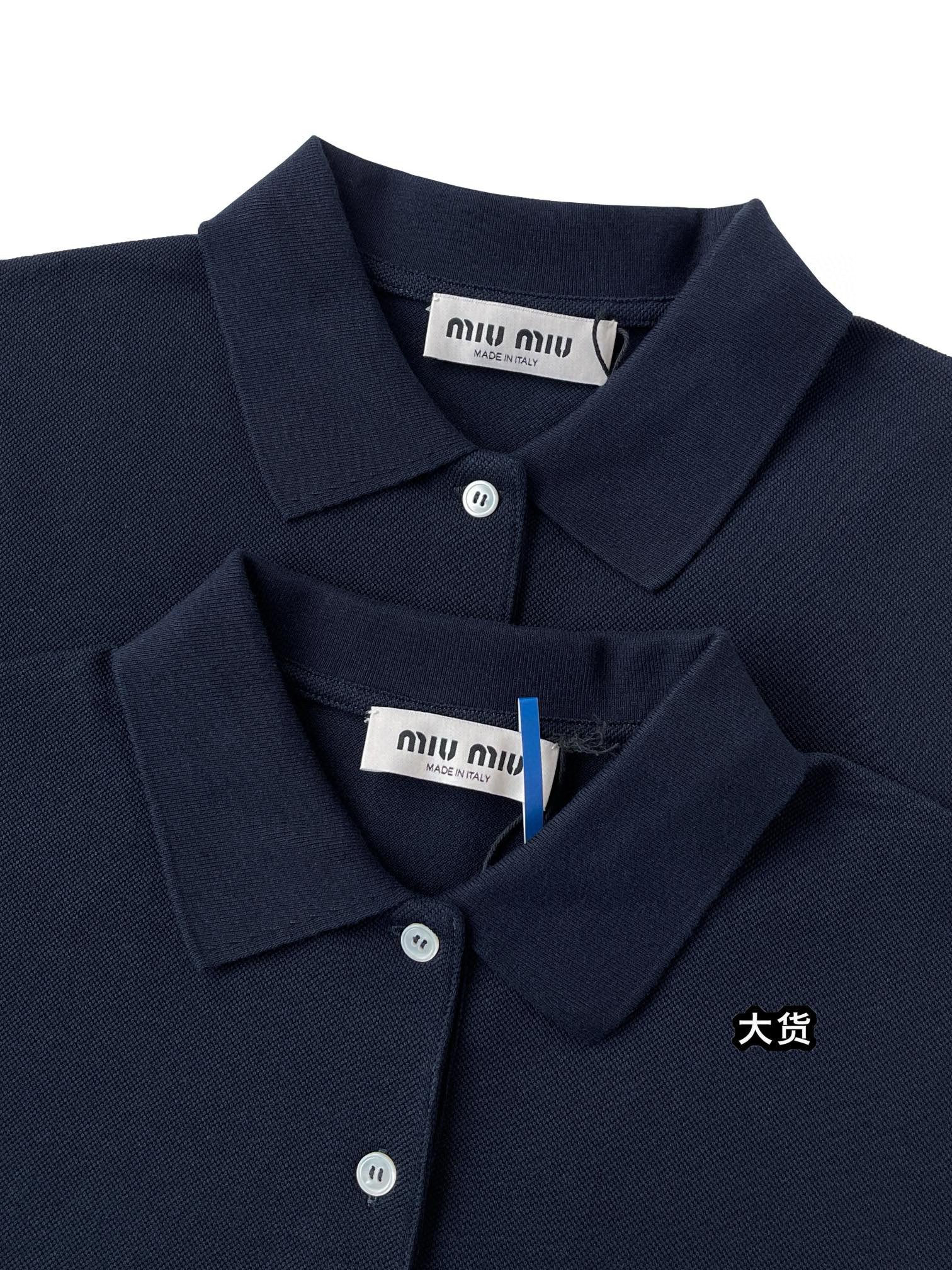 NIGO MiuMiu Women's Summer Dark Blue Letter Logo Embroidery Cotton Straight Short Sleeve Polo Shirt T-Shirt #nigo77944
