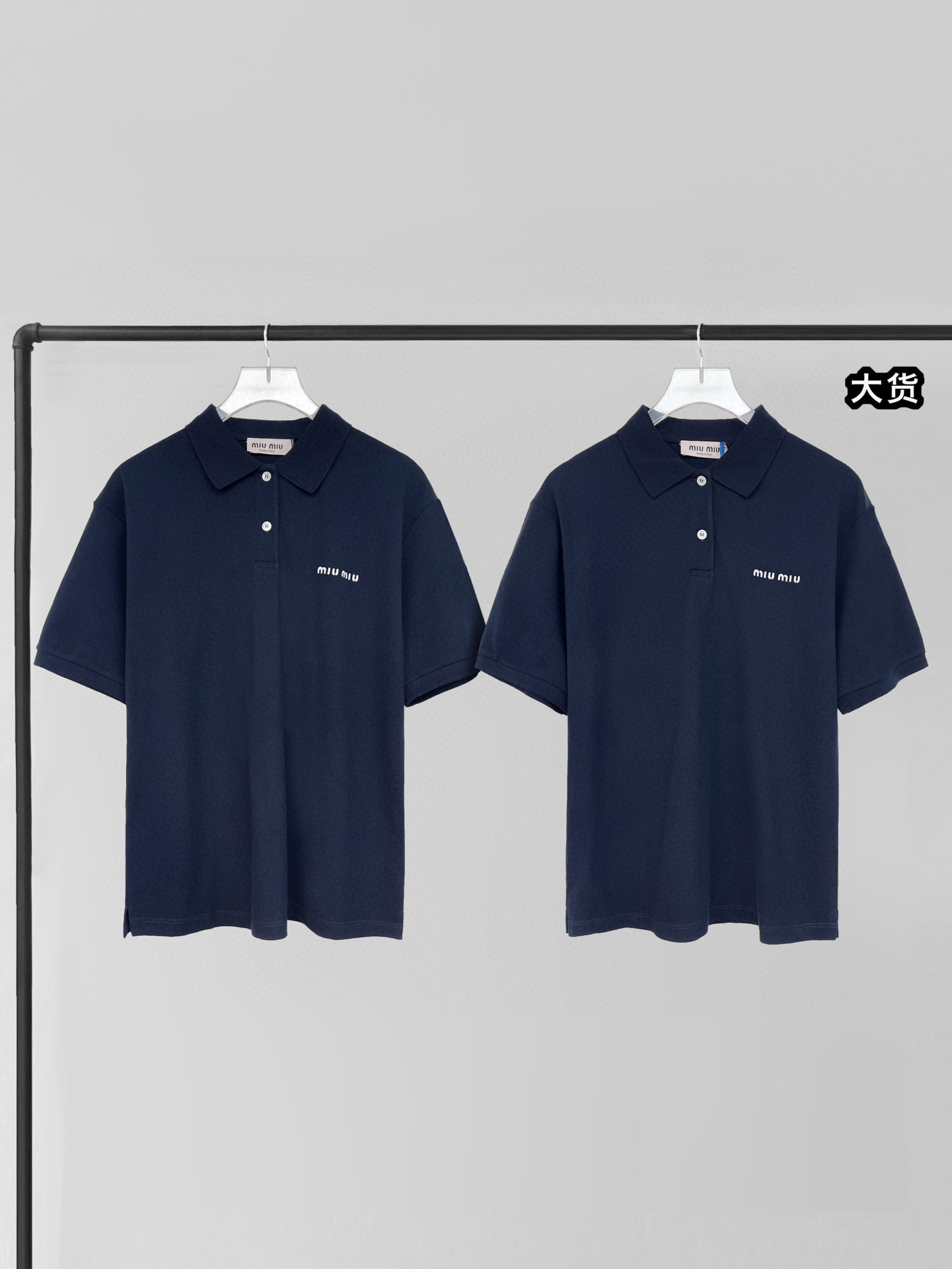 Home / T-shirt / NIGO MiuMiu Women's Summer Dark Blue Letter Logo Embroidery Cotton Straight Short Sleeve Polo Shirt T-Shirt #nigo77944