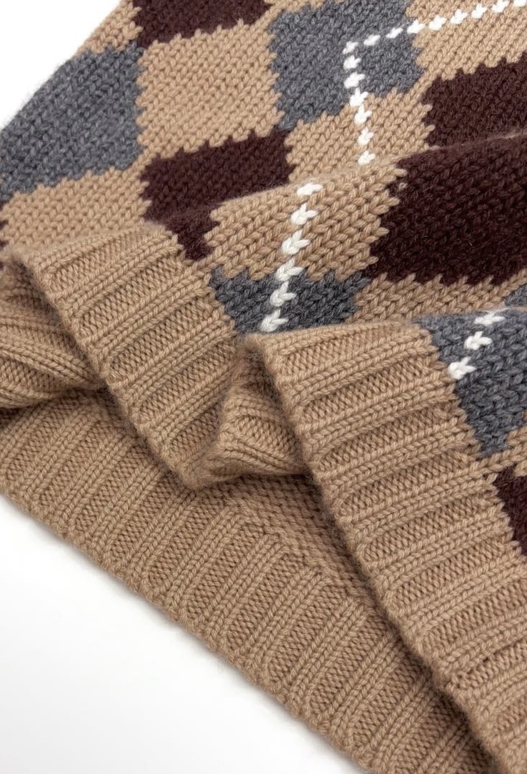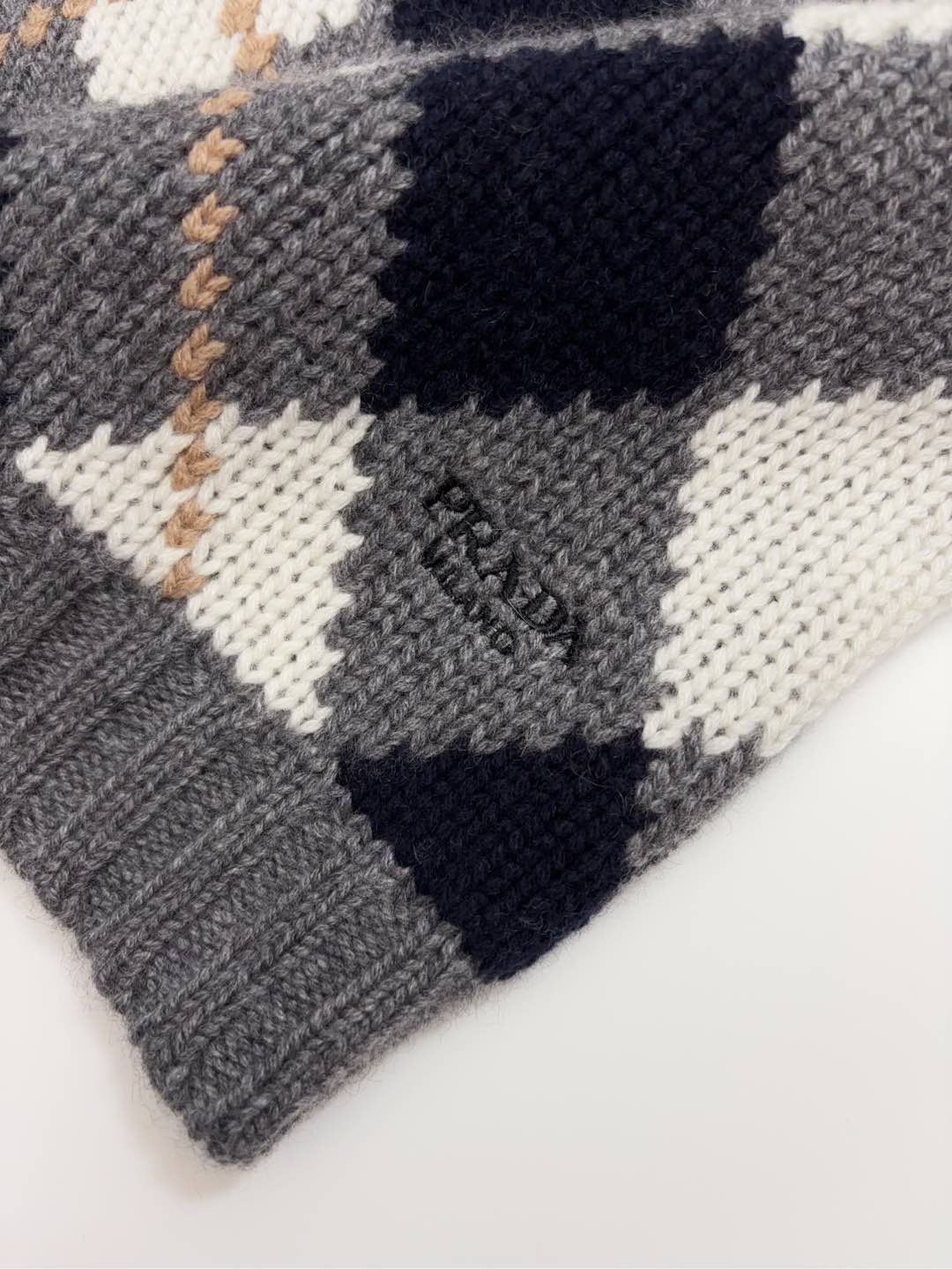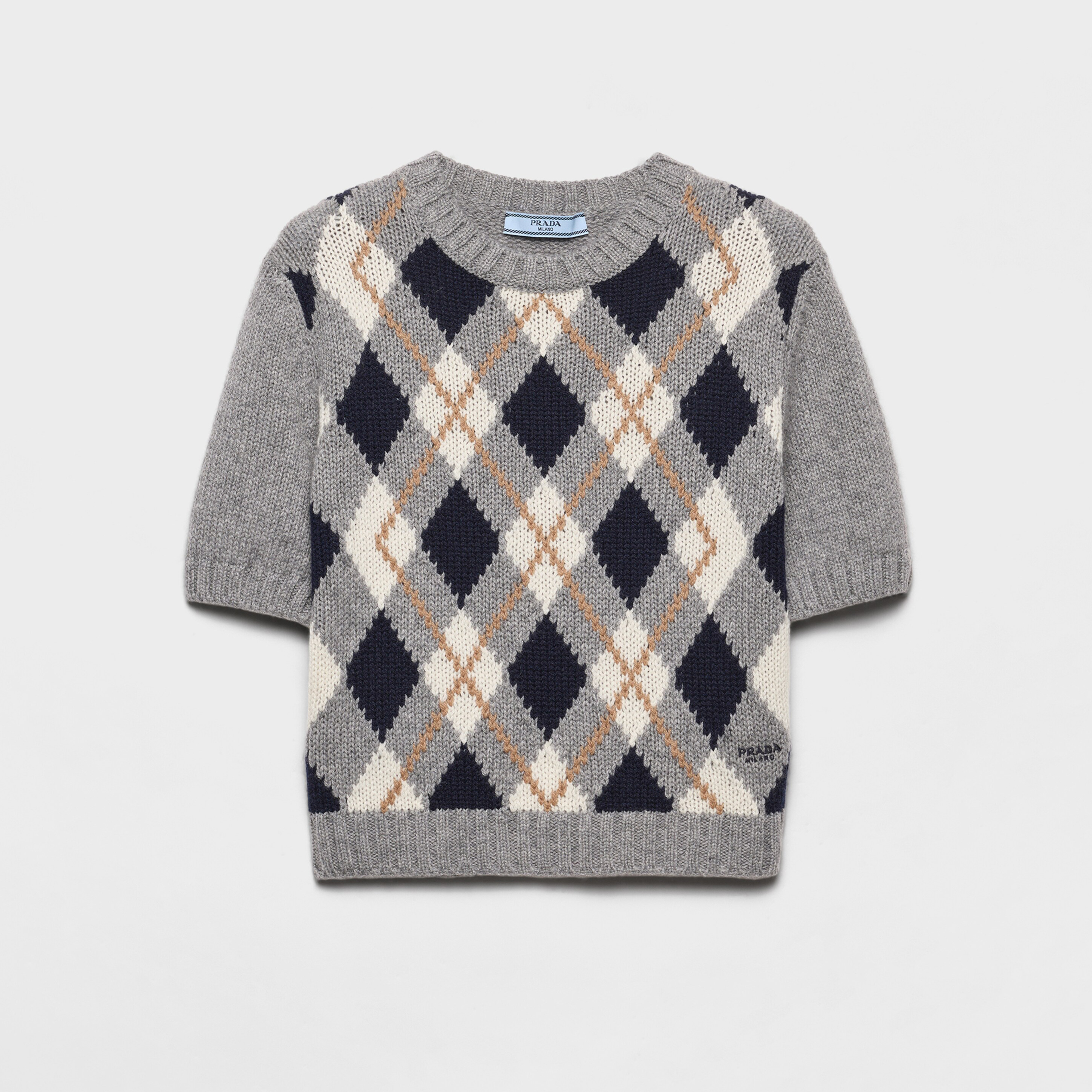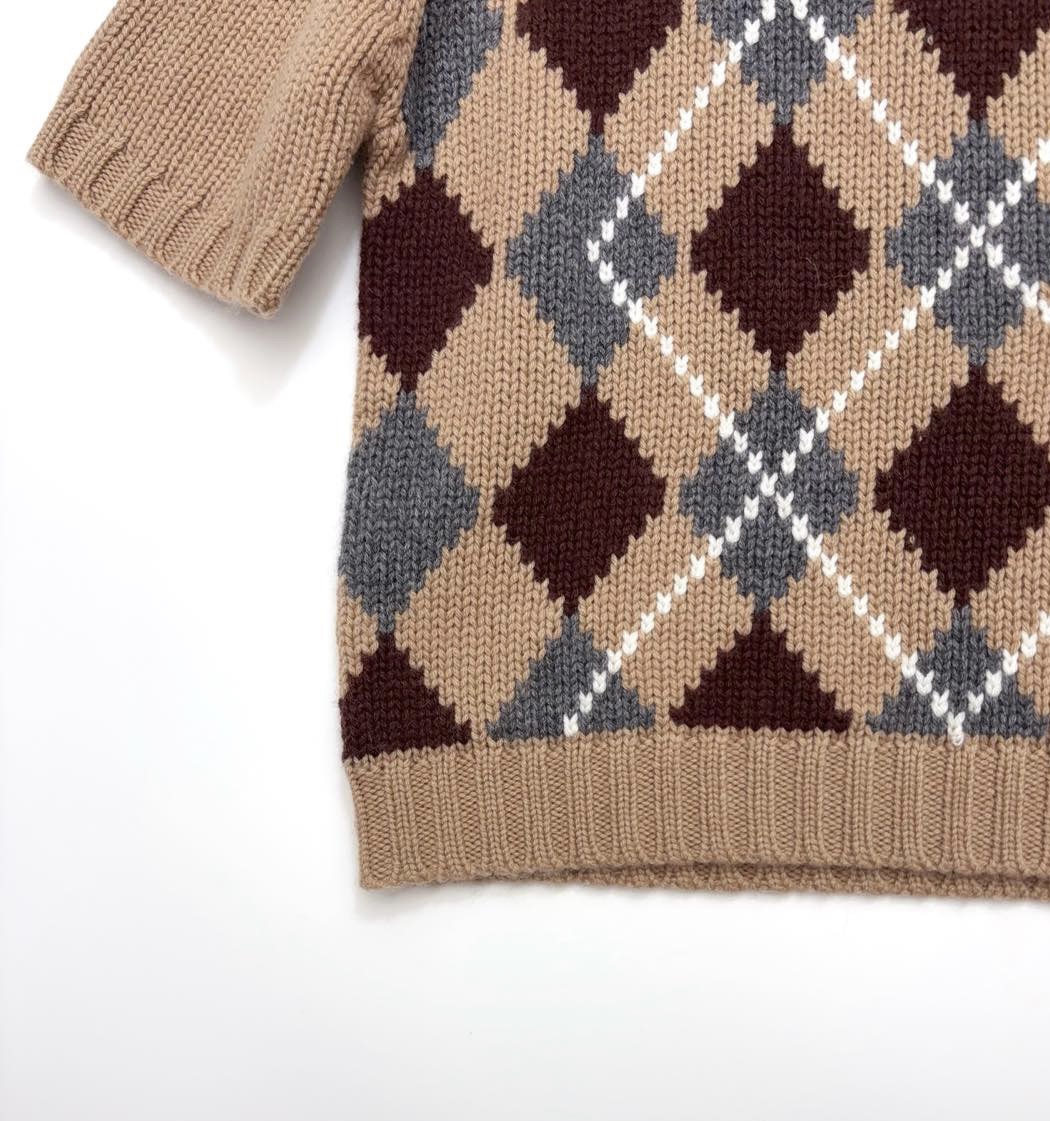 NIGO Prada Women's Spring/Fall Casual Fashion Round Neck Diamond Pattern Cashmere Knit Sweater Letter Embroidered Short Sleeve Pullover T-Shirt #nigo78837