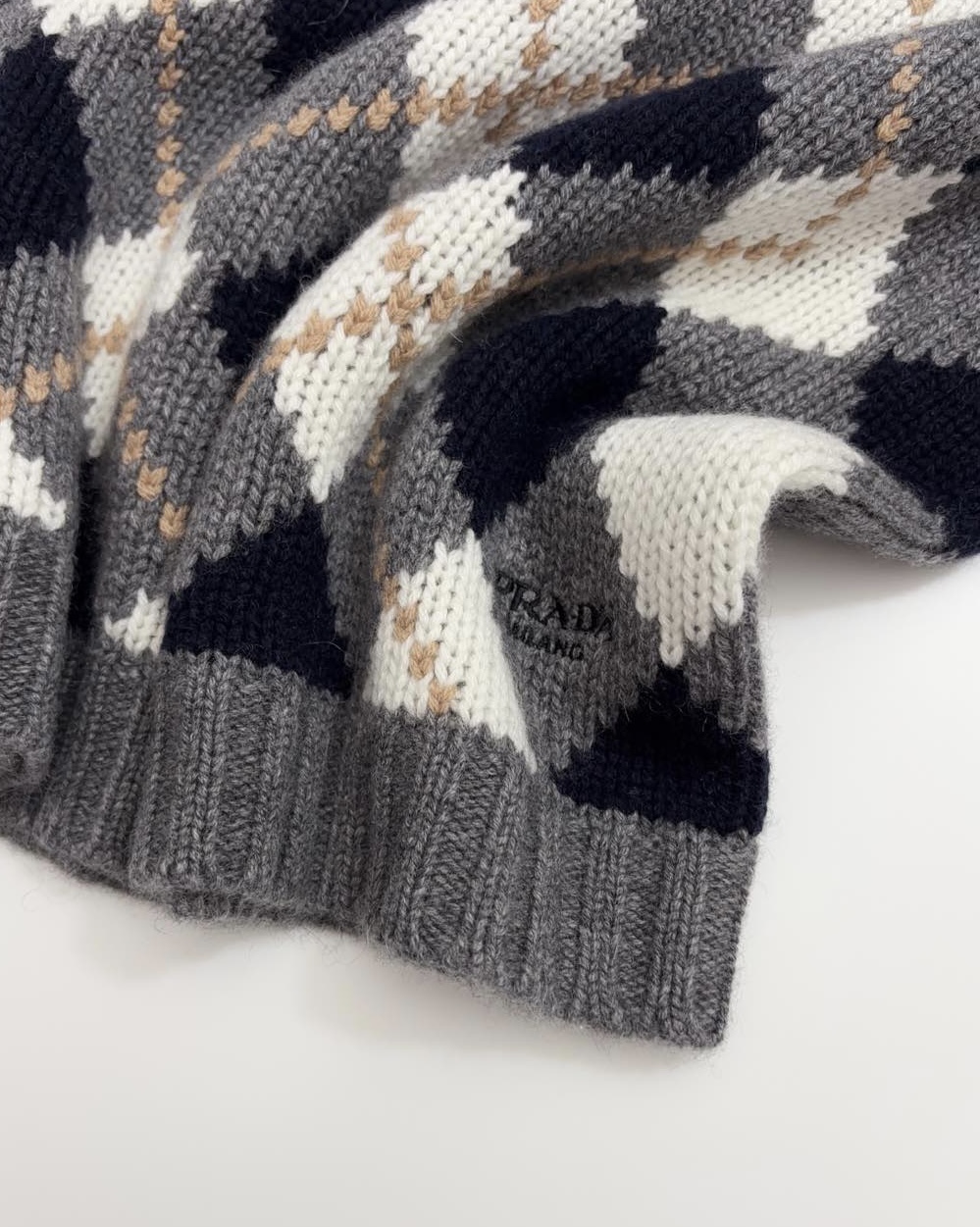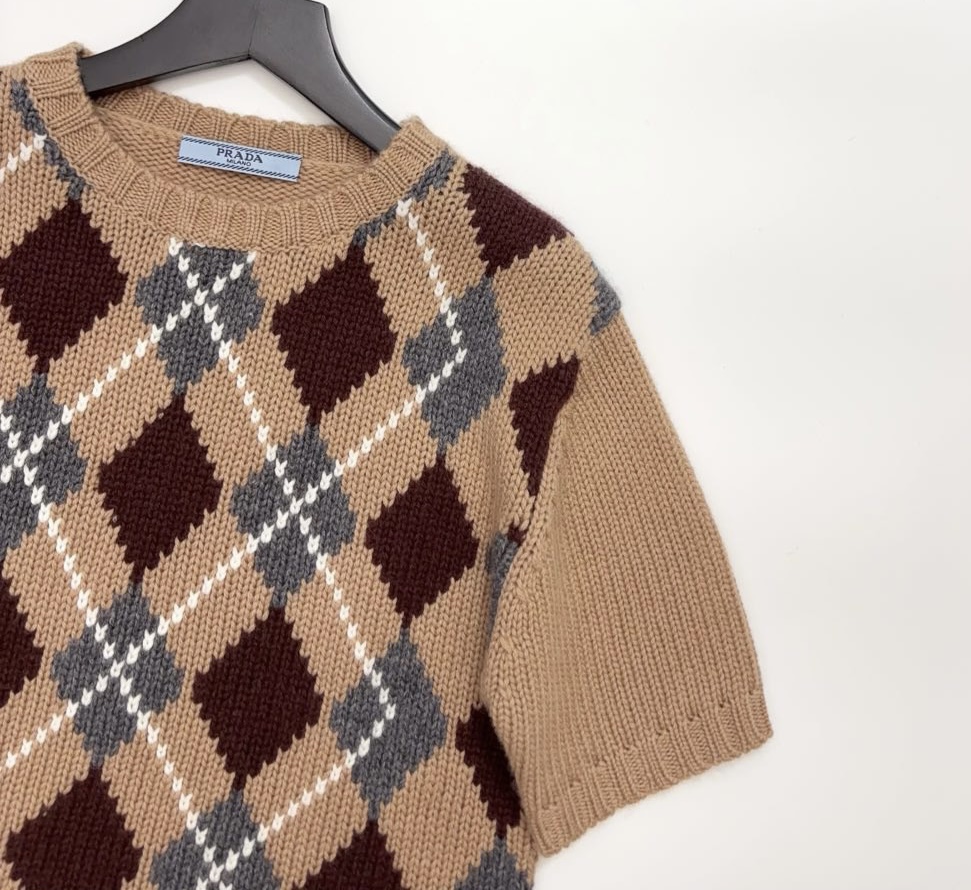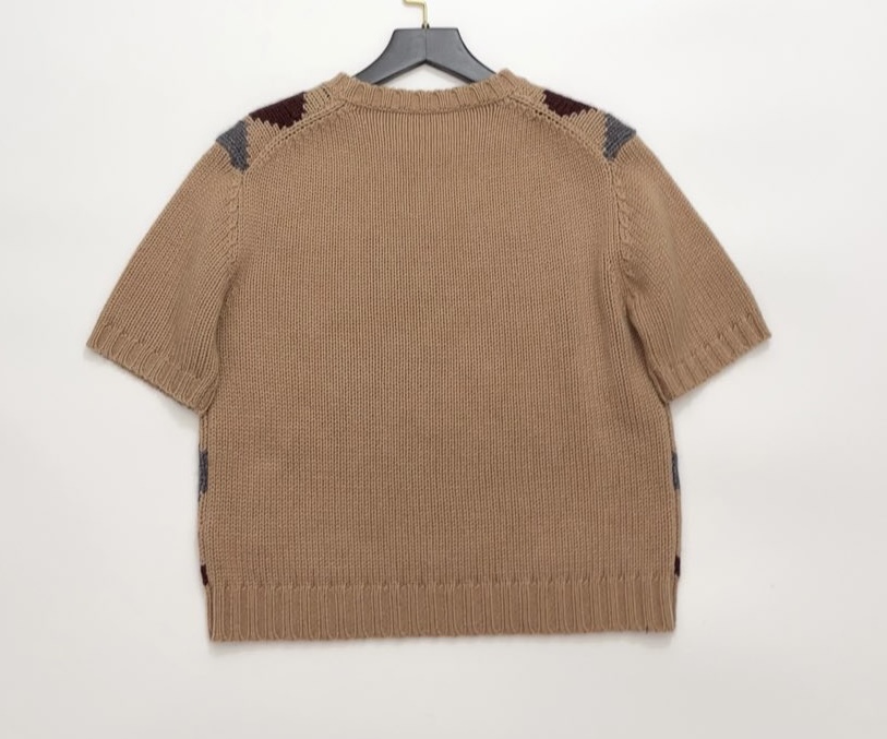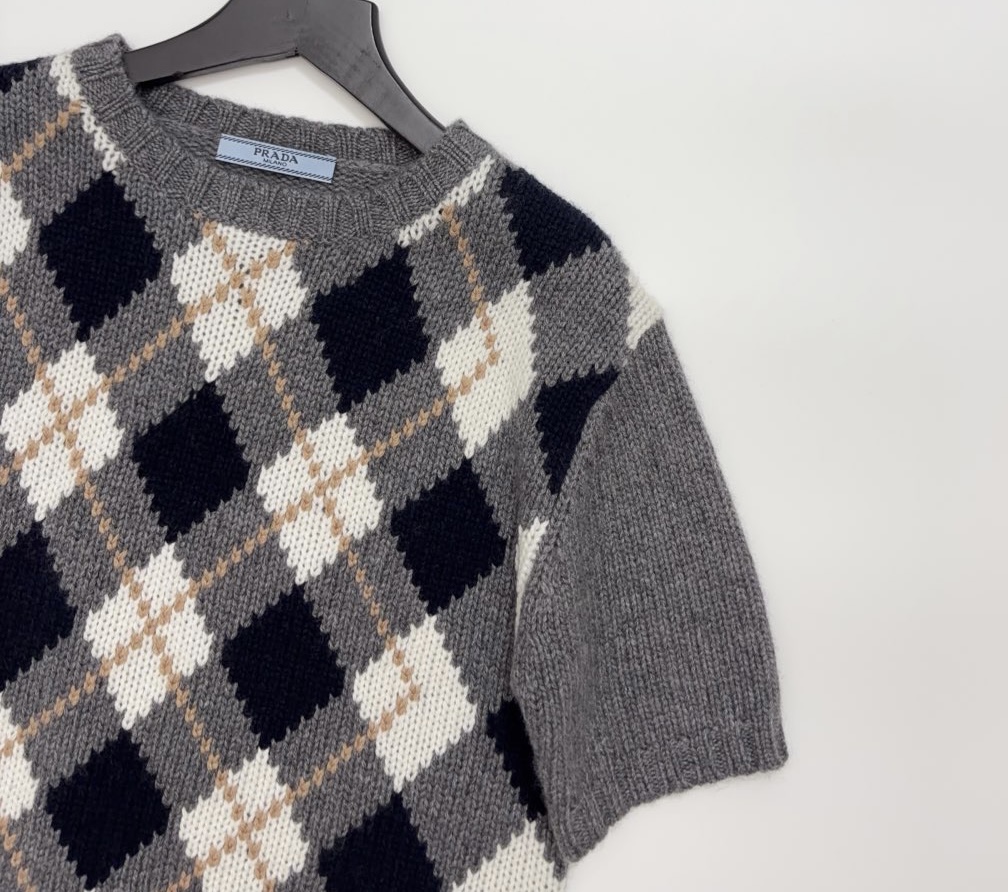 Home / T-shirt / NIGO Prada Women's Spring/Fall Casual Fashion Round Neck Diamond Pattern Cashmere Knit Sweater Letter Embroidered Short Sleeve Pullover T-Shirt #nigo78837