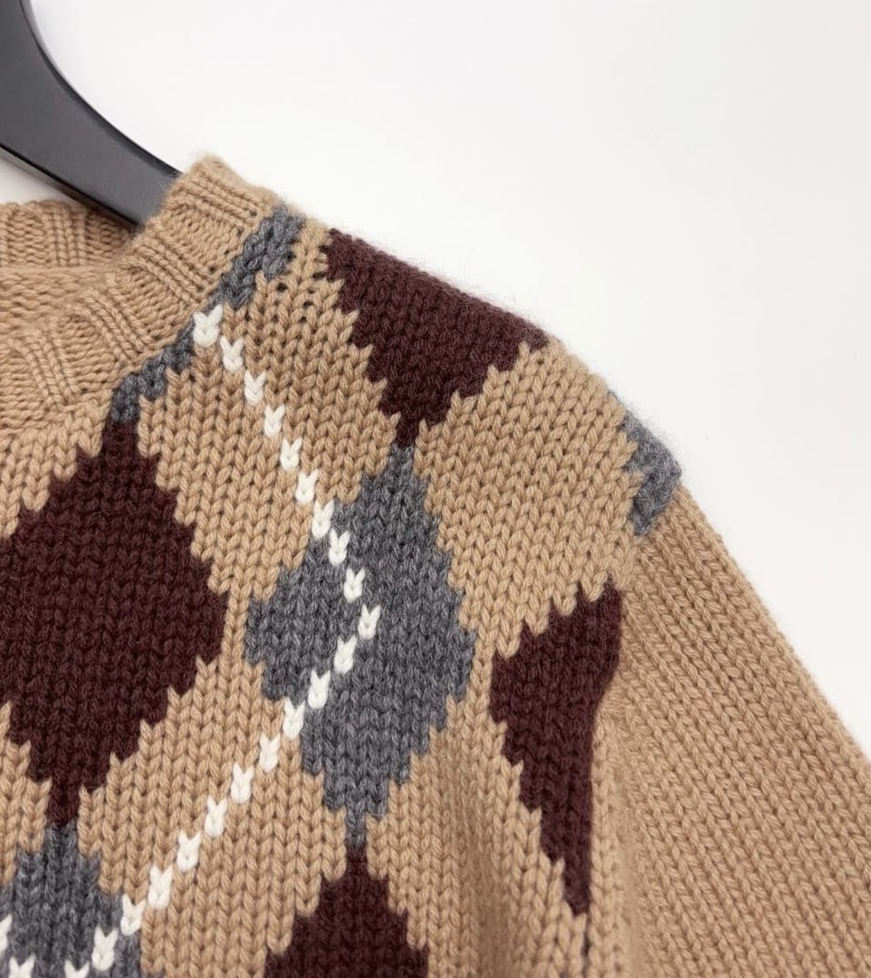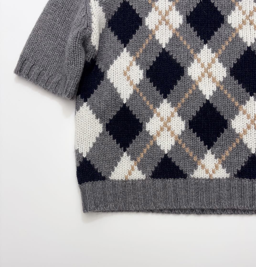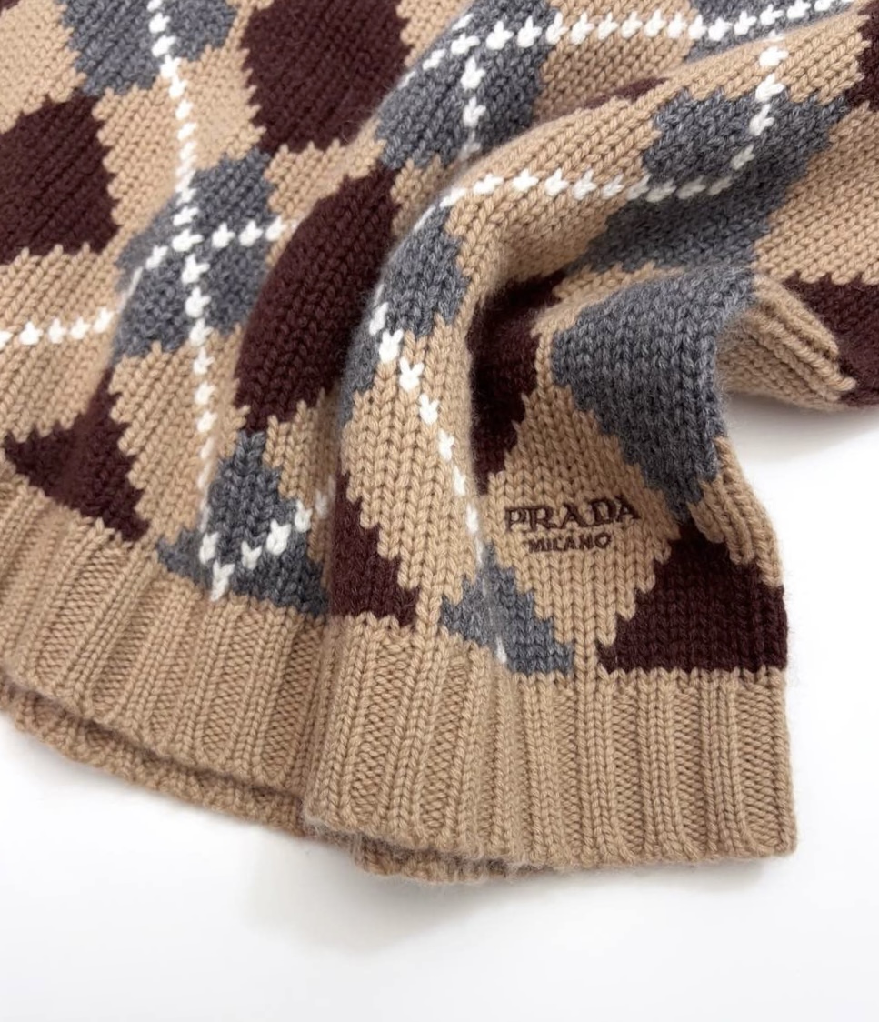 Home / T-shirt / NIGO Prada Women's Spring/Fall Casual Fashion Round Neck Diamond Pattern Cashmere Knit Sweater Letter Embroidered Short Sleeve Pullover T-Shirt #nigo78837