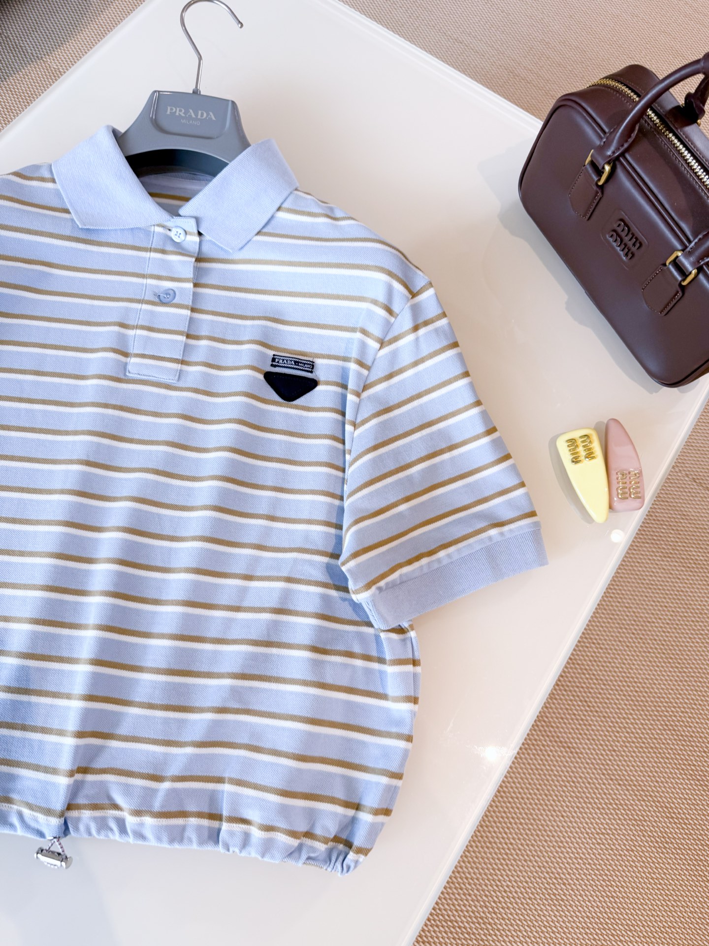 NIGO Prada Women's Summer Fashion Casual Short Sleeve Striped Polo Shirt With Collar And Drawstring Polo Shirt T-shirt #nigo78155