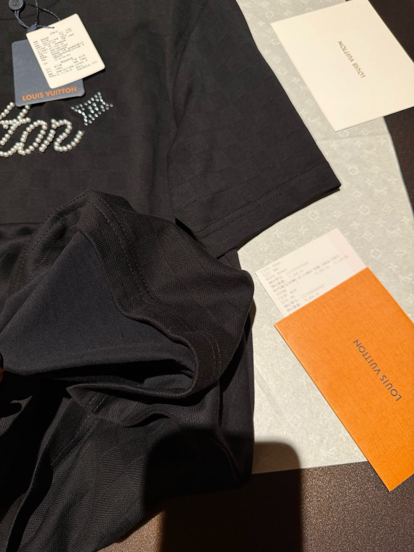 NIGO Louis Vuitton Men's Short-sleeved T-shirt Damier Pattern Bead Embroidered Cursive Signature New Style #nigo325063