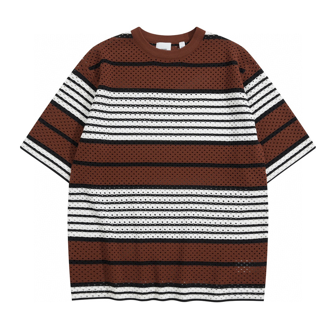 Burberry NIGO Man Striped Loose Hollow Summer Short Sleeve T-shirt Shorts Set Suit #nigo94475