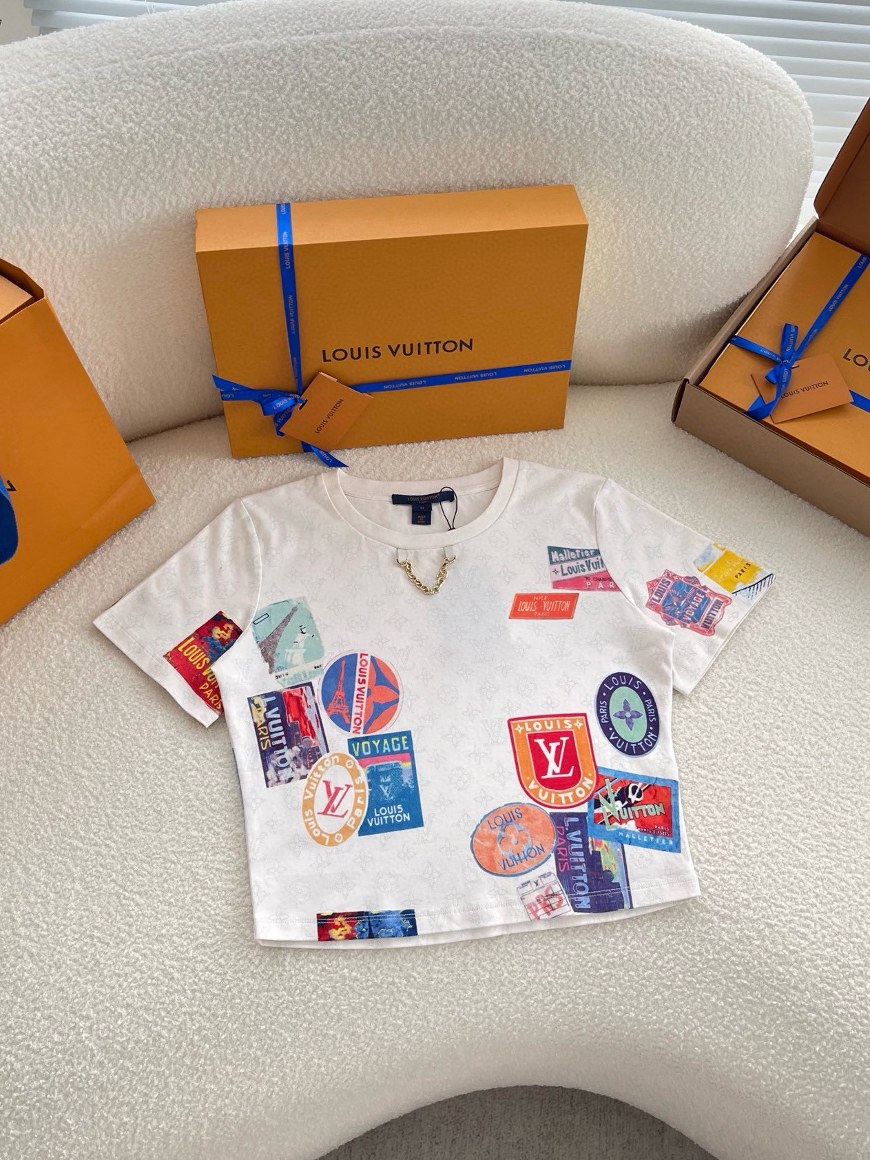 NIGO Louis Vuitton Women's Summer Badge Pattern Printed Round Neck Cotton Short T-Shirt #nigo77232