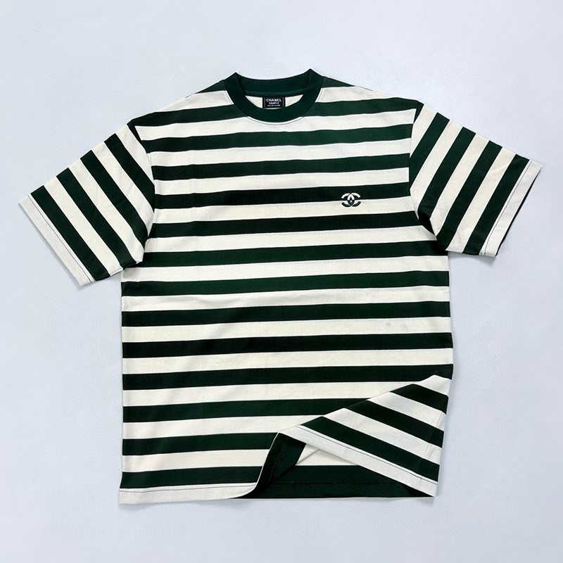 NIGO Chanel Men's Summer Striped Logo Solid Color Round Neck Pullover Short Sleeved T-shirt #nigo81554
