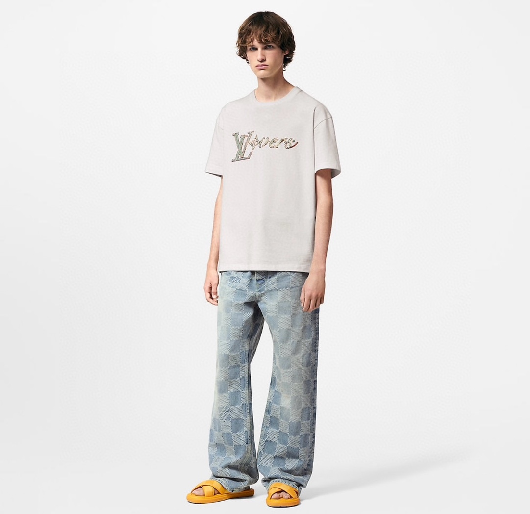 NIGO Louis Vuitton Men's Summer Embroidery Beaded Letter Logo White Round Neck Short Sleeve T-Shirt #nigo99737