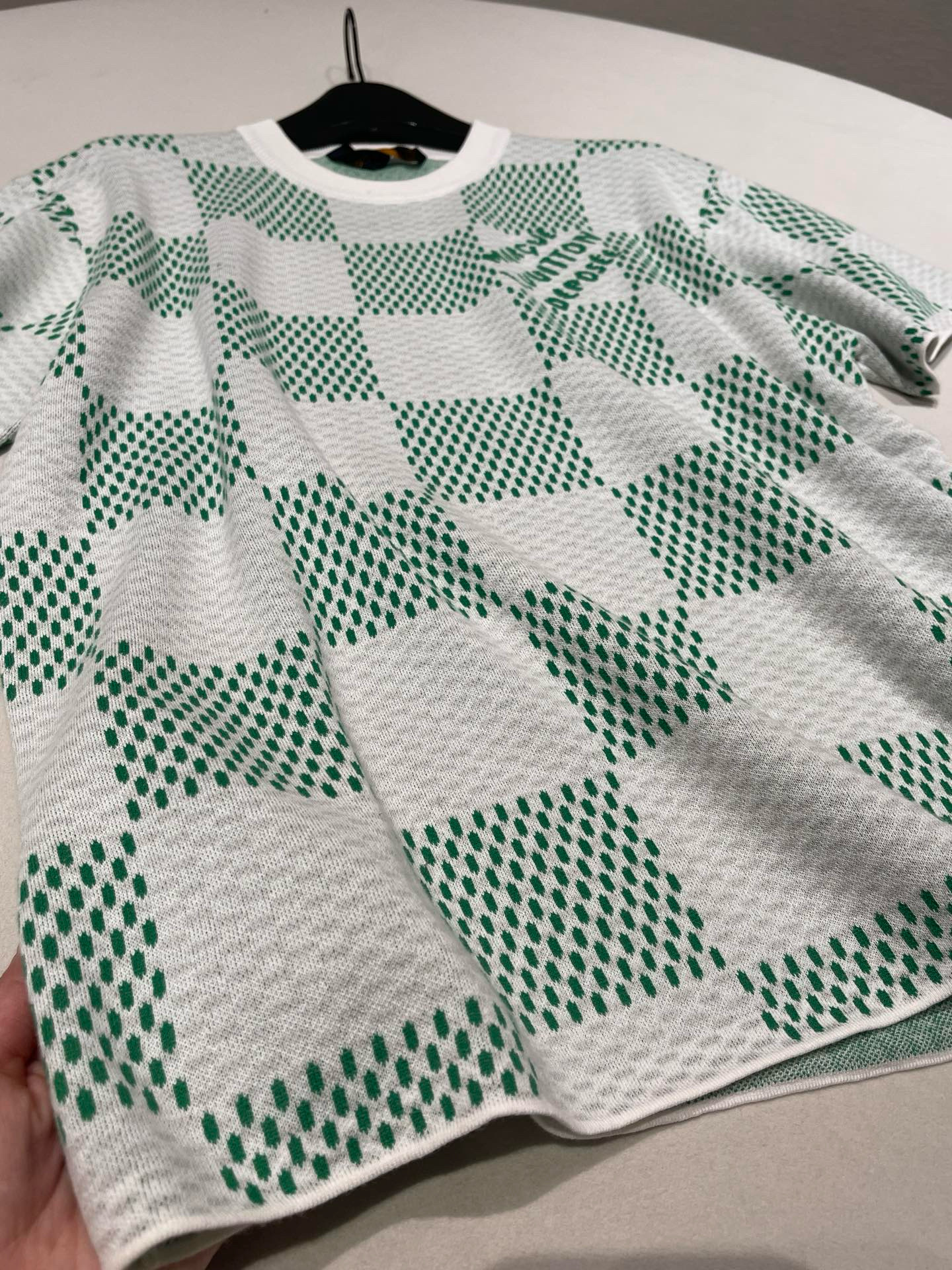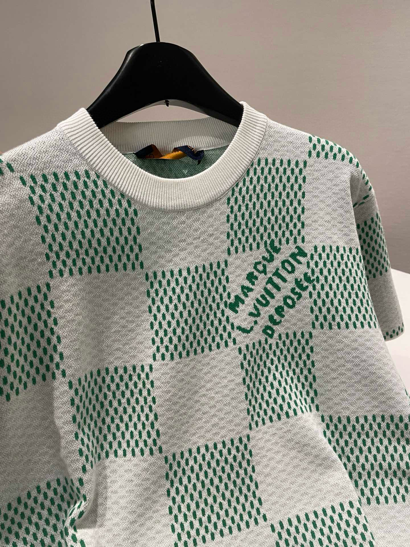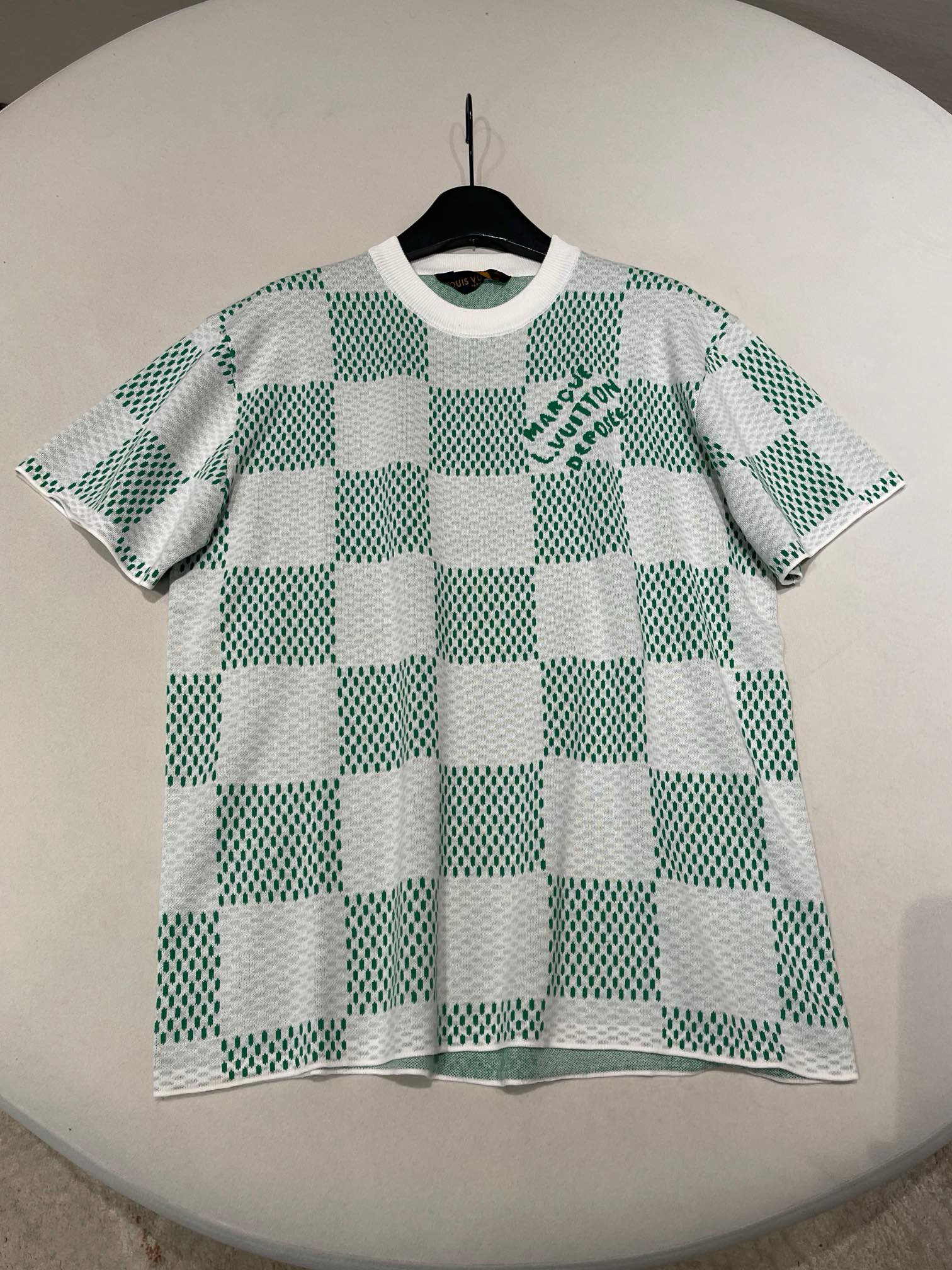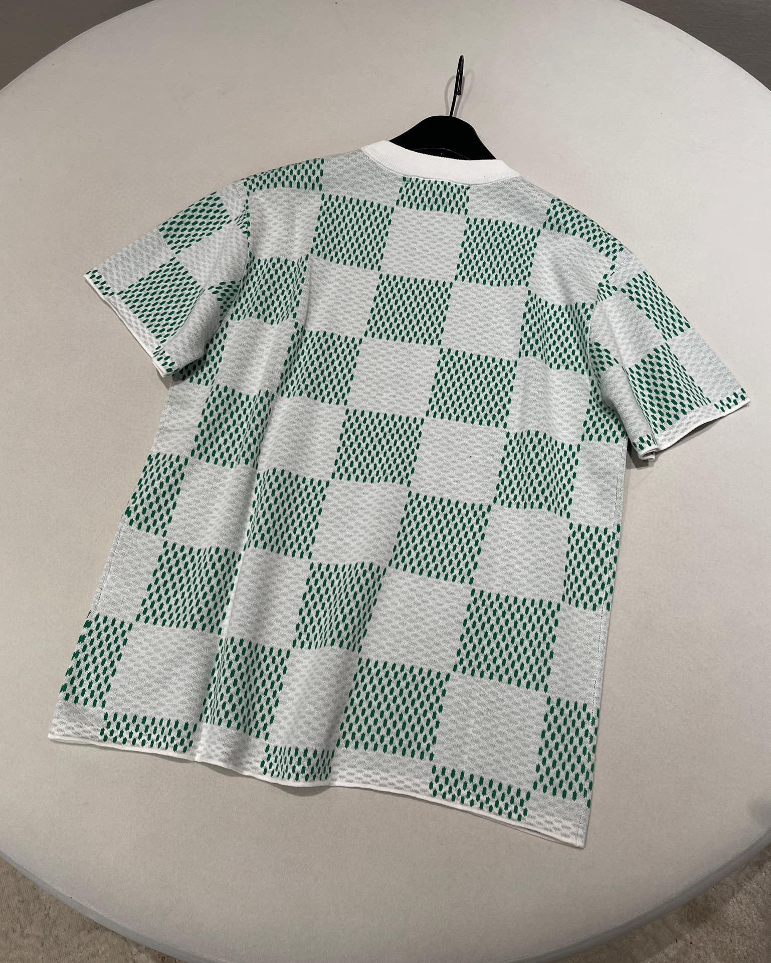 NIGO Louis Vuitton Men's Summer White Green Plaid Pattern Round Neck Cotton Short Sleeve T-Shirt #nigo98739