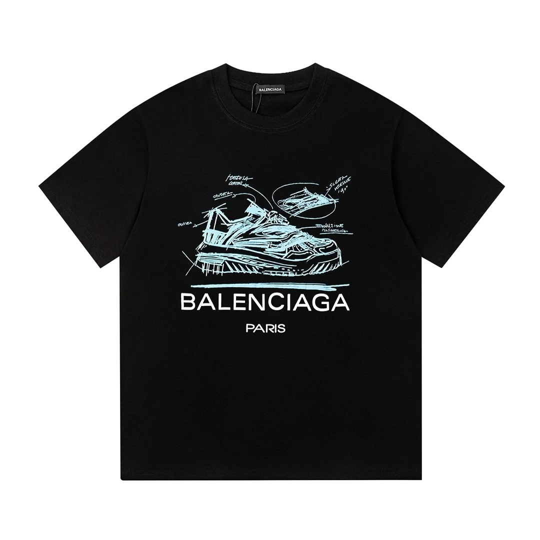NIGO Balenciaga Men's Summer Shoes Printed Graphic Black and White Cotton Short Sleeve T-Shirt #nigo97778