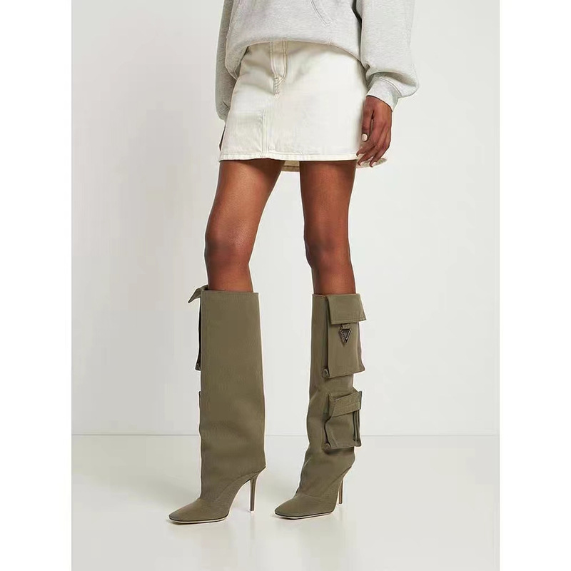 NIGO The Attico Women's Denim Pocket Boots Fall/Winter Solid-Color High-Heel Knee-High Boots Casual Shoes #nigo81719