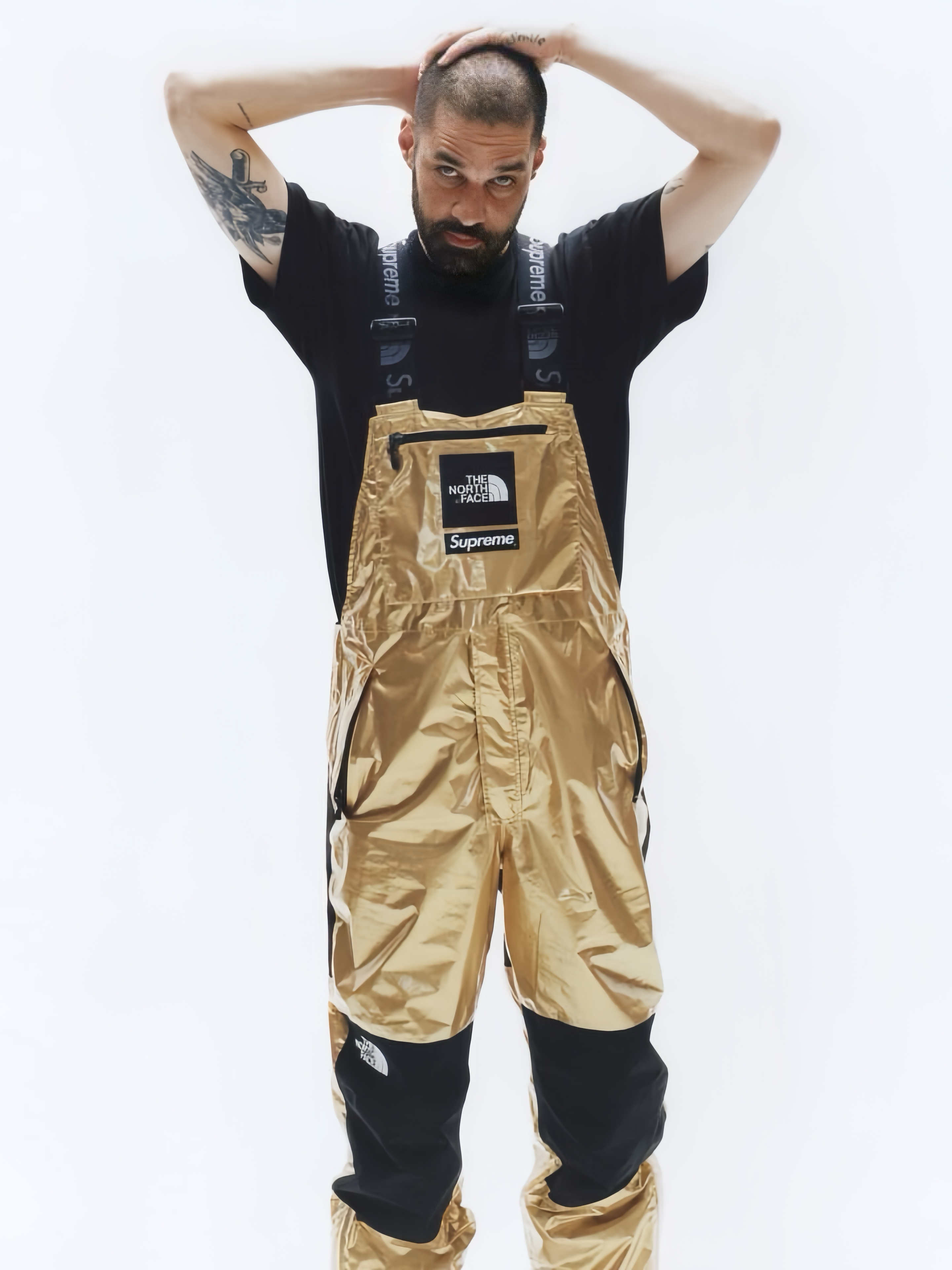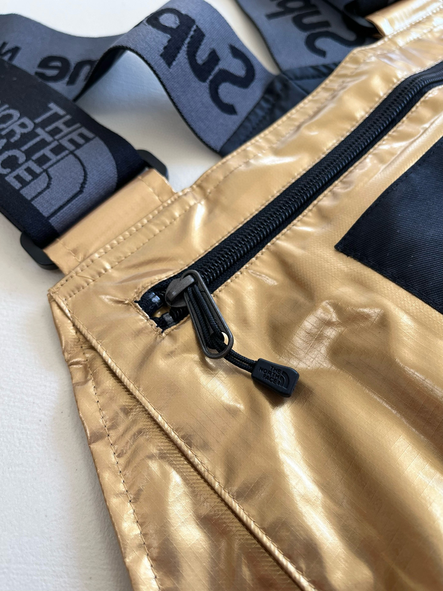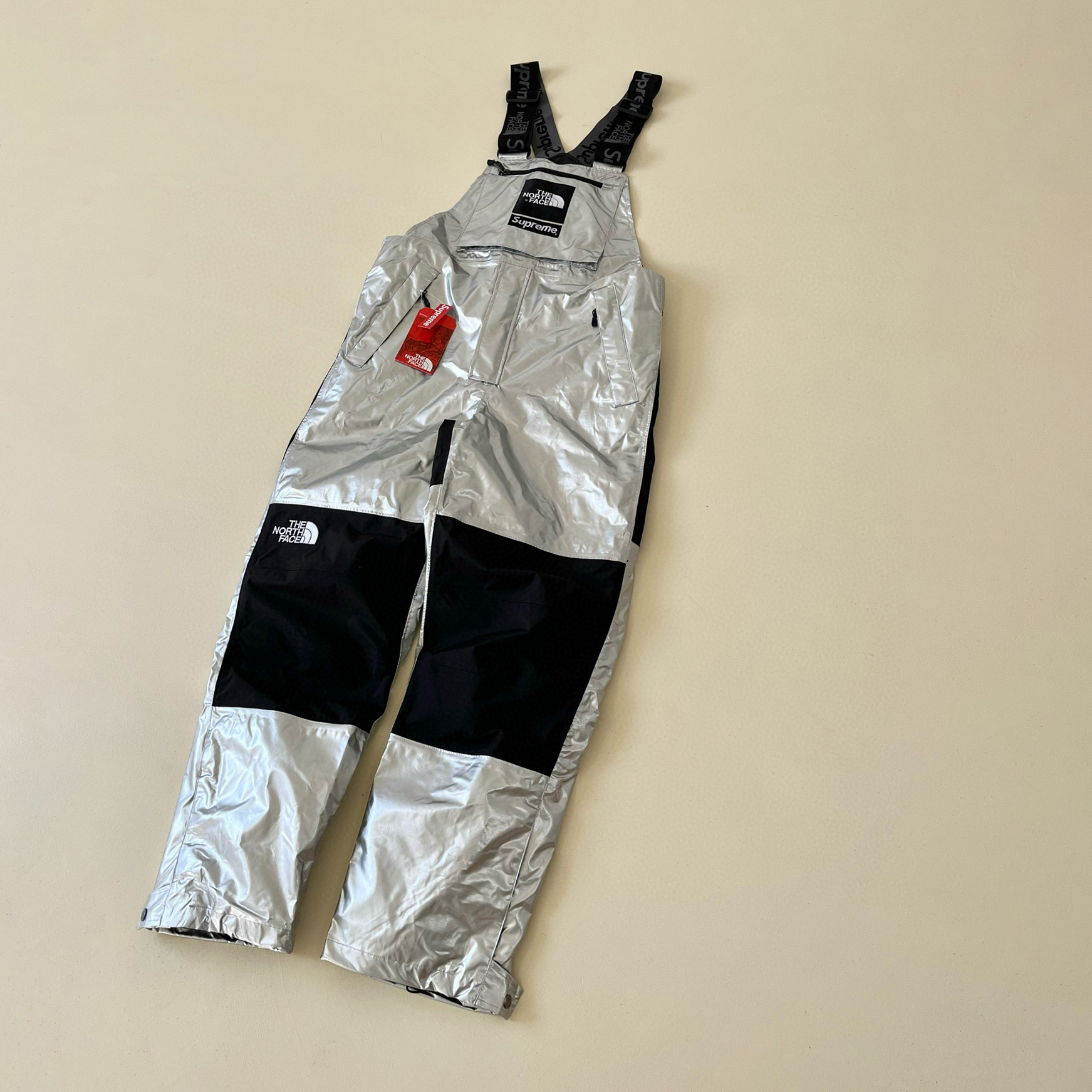 NIGO Supreme X The North Face Men's Winter Nylon Metallic Single Breasted Zip Hooded Jacket Bib Pants Overall Set Suit #nigo97741