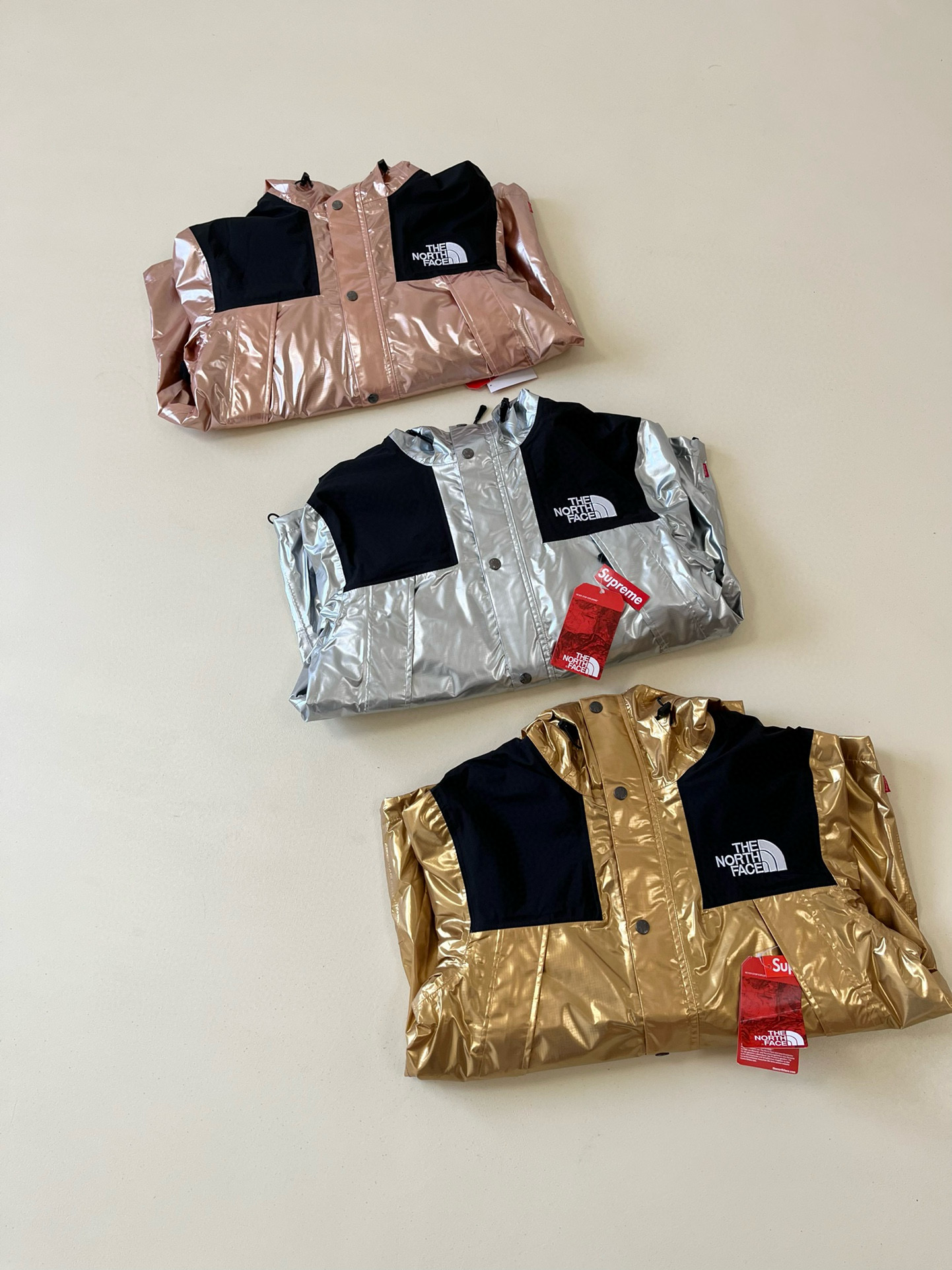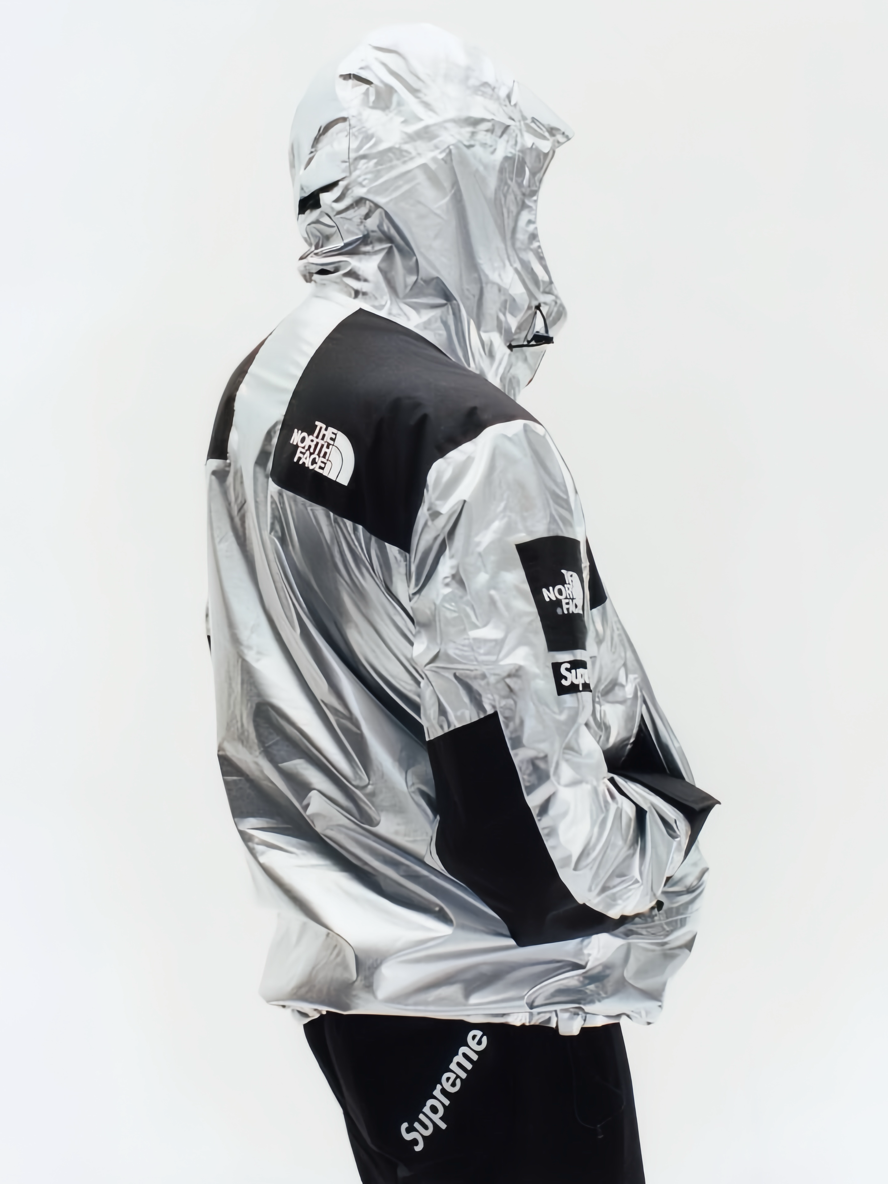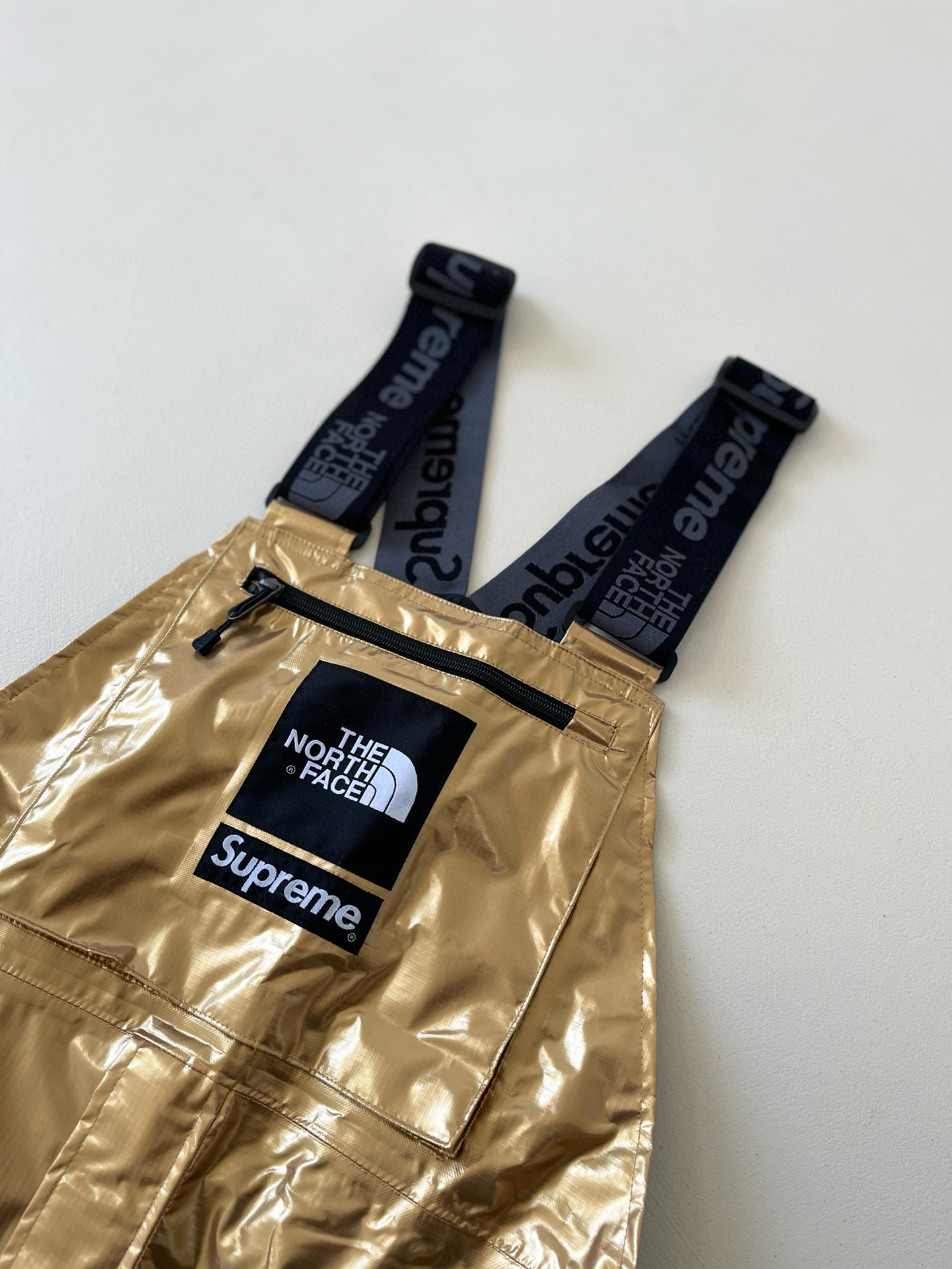 NIGO Supreme X The North Face Men's Winter Nylon Metallic Single Breasted Zip Hooded Jacket Bib Pants Overall Set Suit #nigo97741