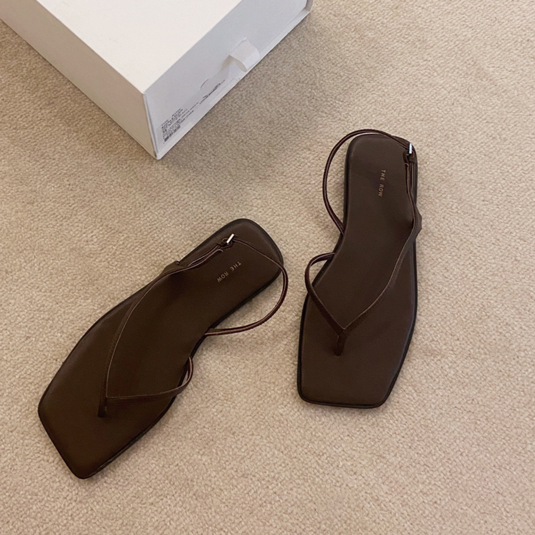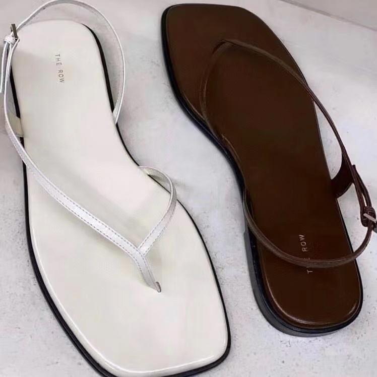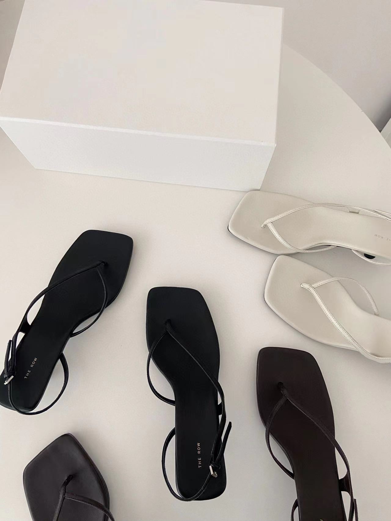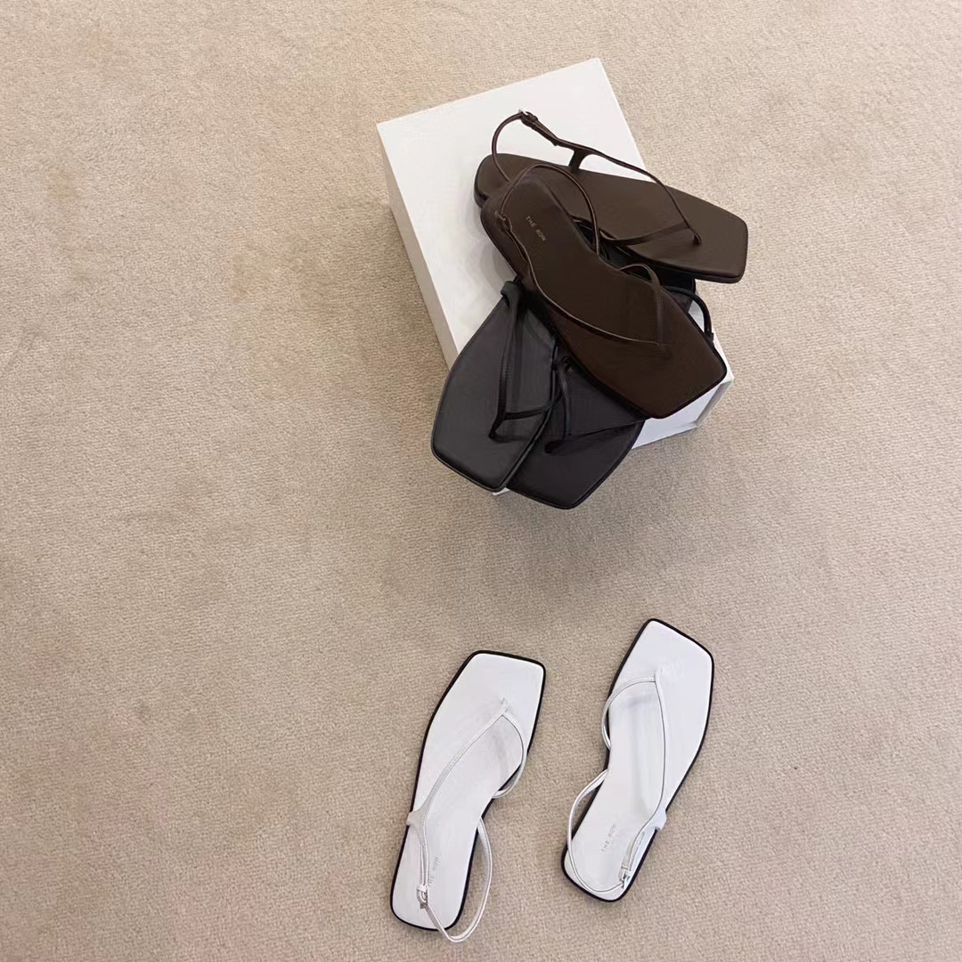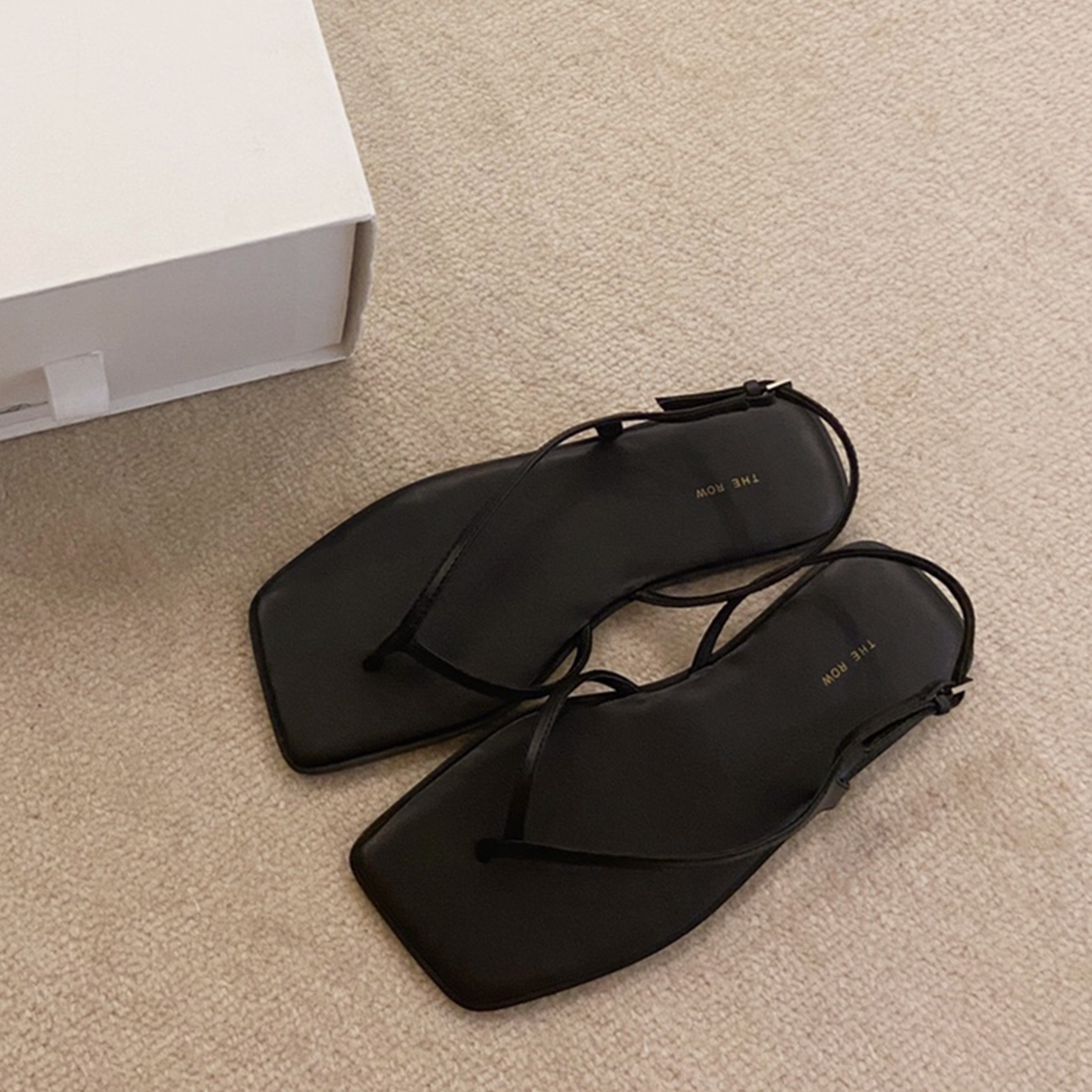 NIGO THE ROW Women's Spring And Summer Square Head Clip Toe Sandals Flat Shoes Temperament Low Heel Spaghetti Strap Shoes #nigo99217