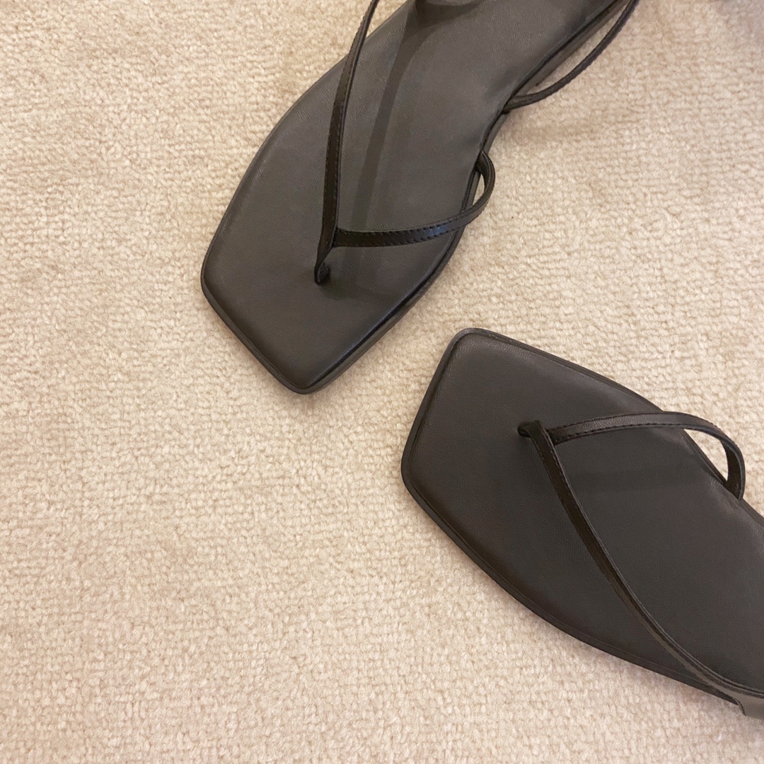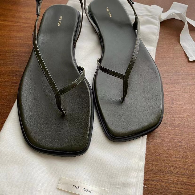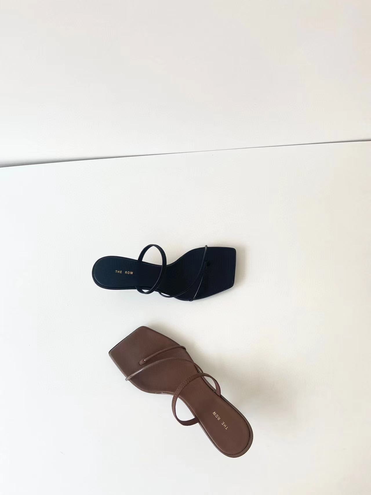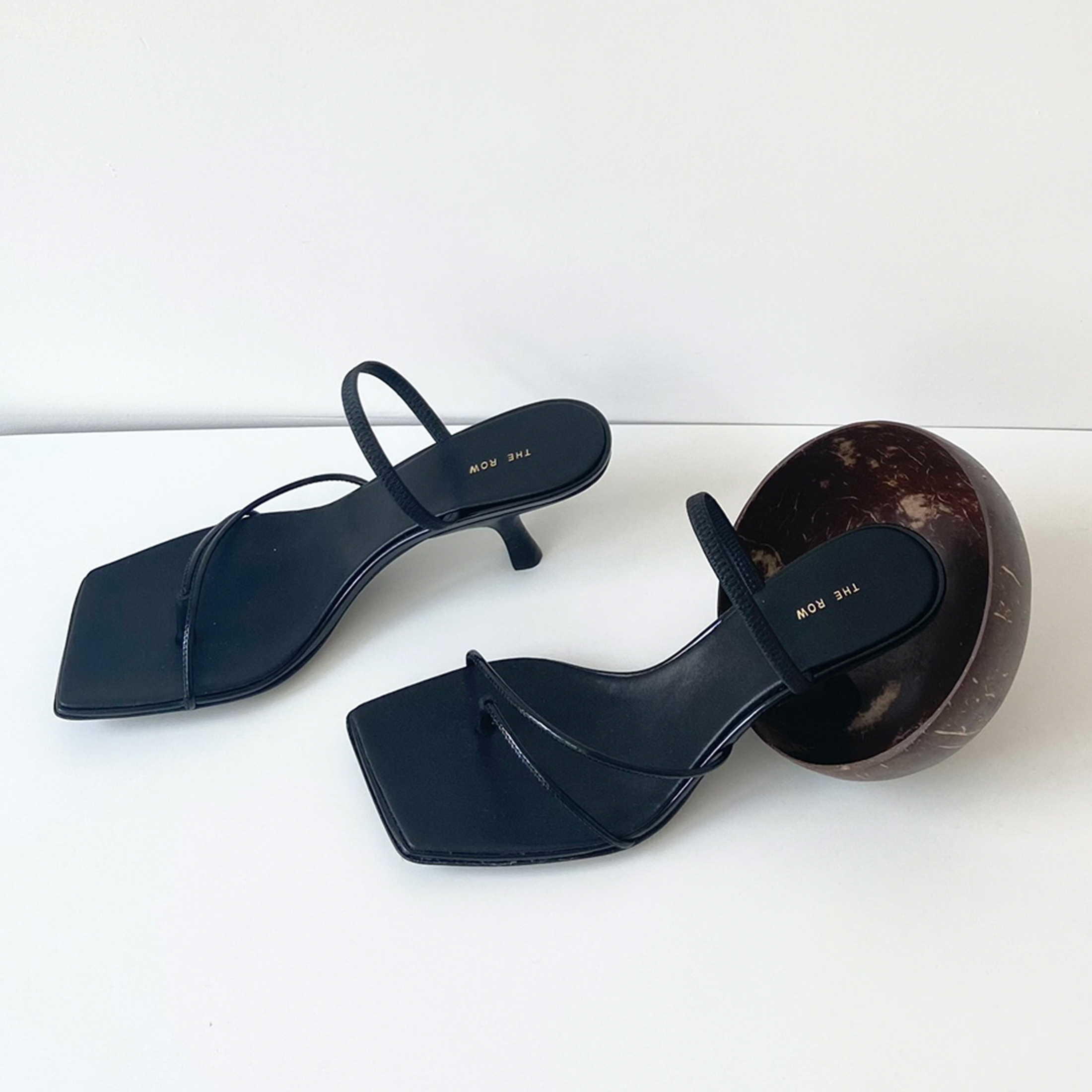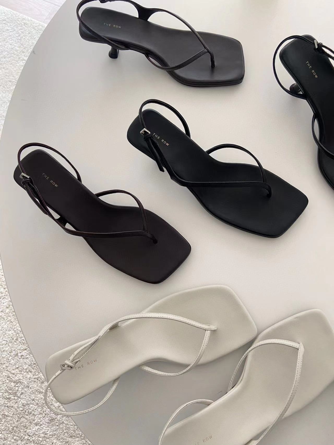 NIGO THE ROW Women's Spring And Summer Square Head Clip Toe Sandals Flat Shoes Temperament Low Heel Spaghetti Strap Shoes #nigo99217