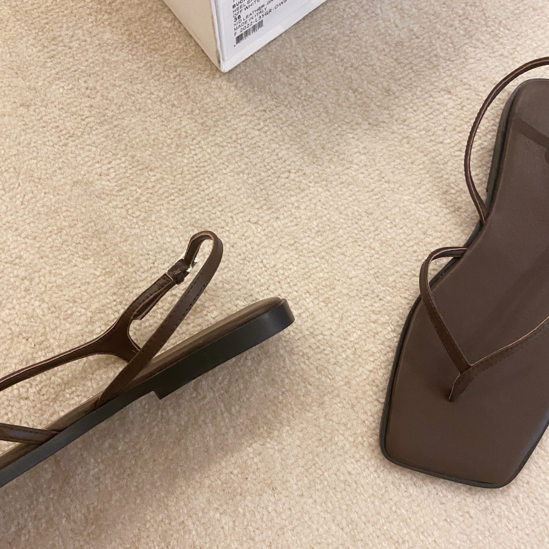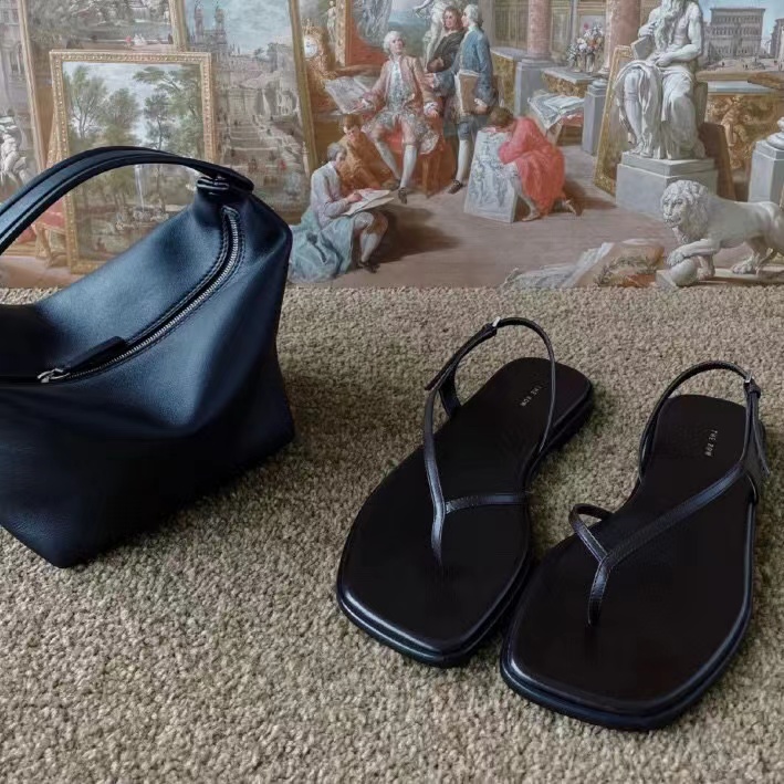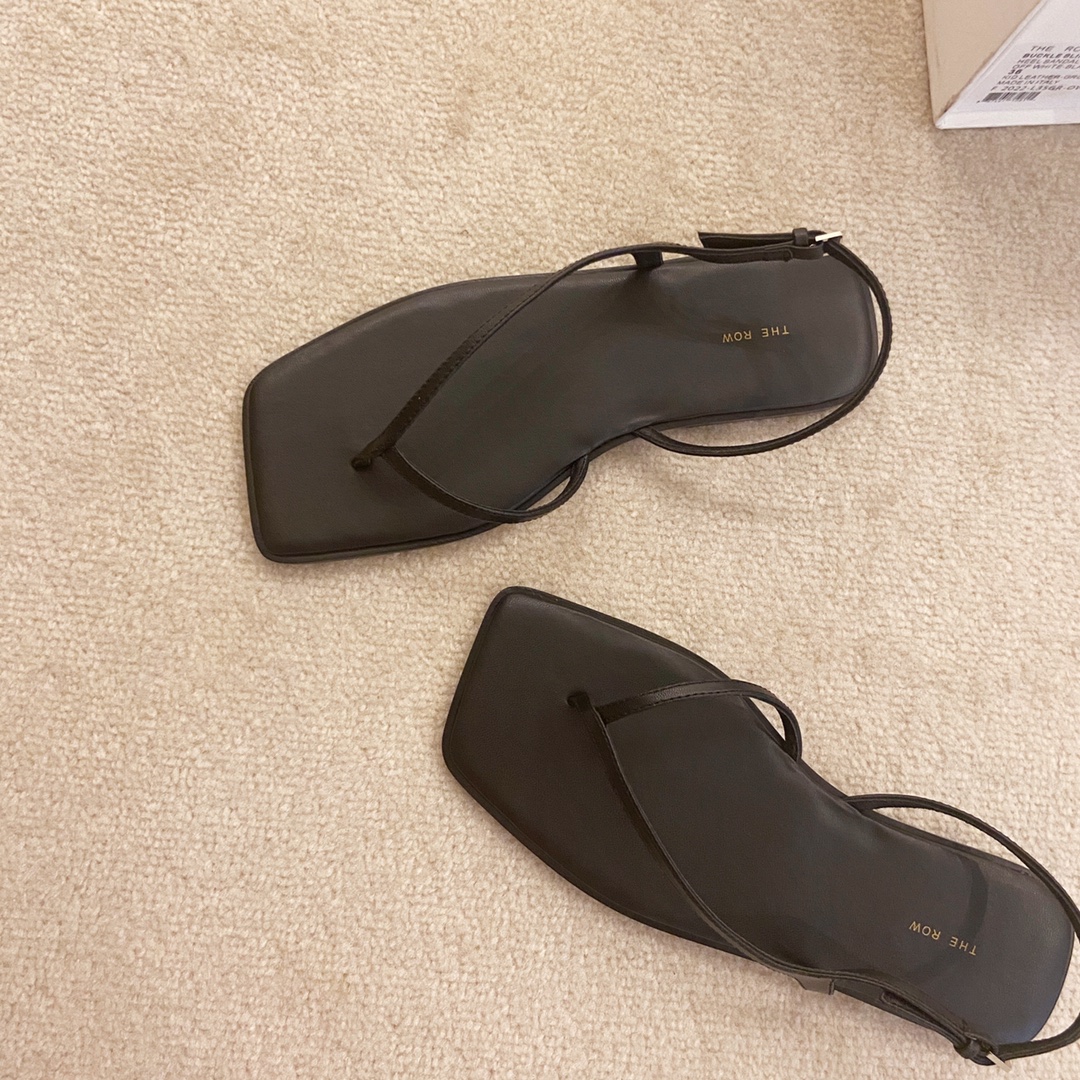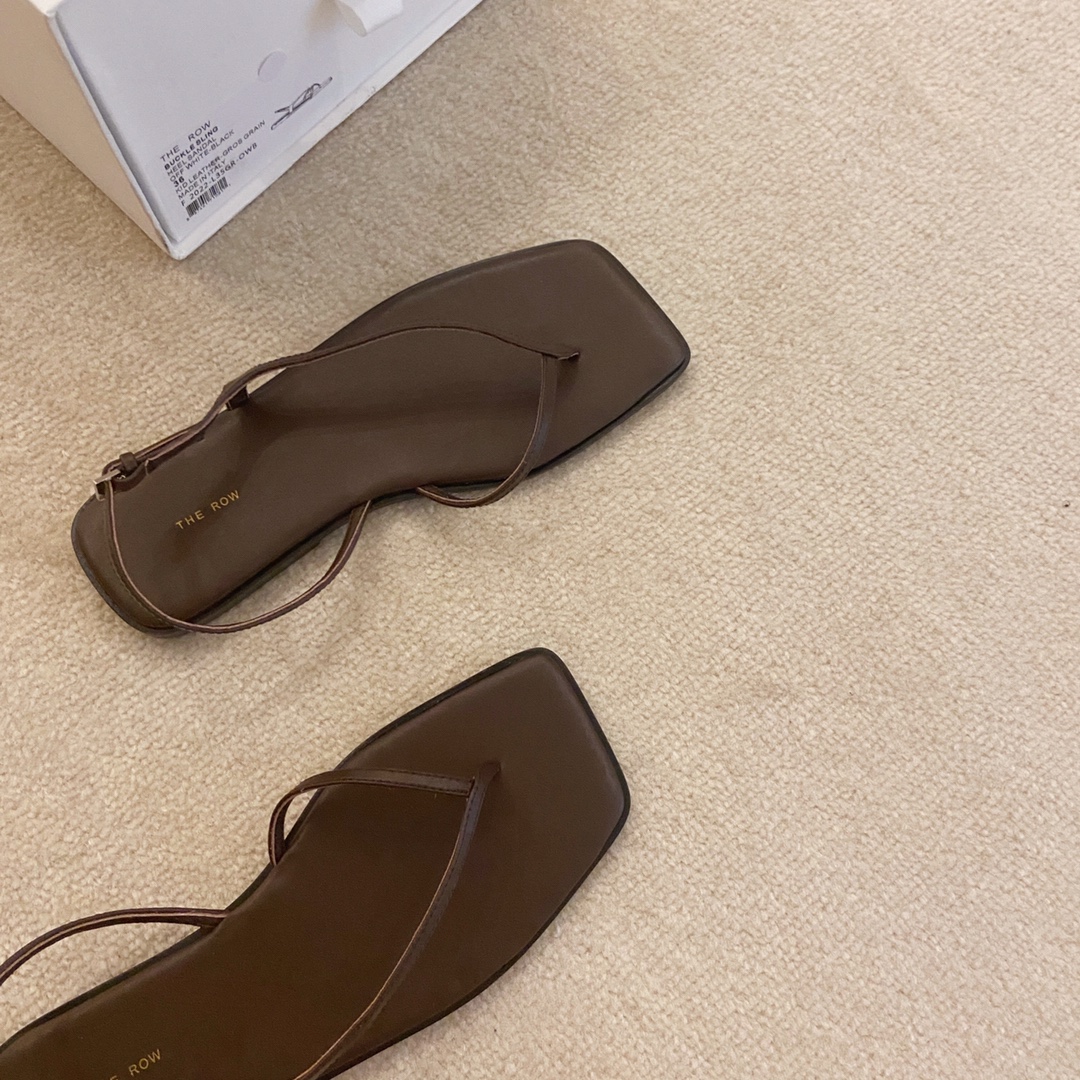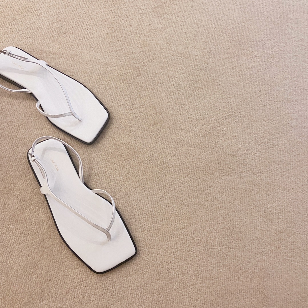 NIGO THE ROW Women's Spring And Summer Square Head Clip Toe Sandals Flat Shoes Temperament Low Heel Spaghetti Strap Shoes #nigo99217