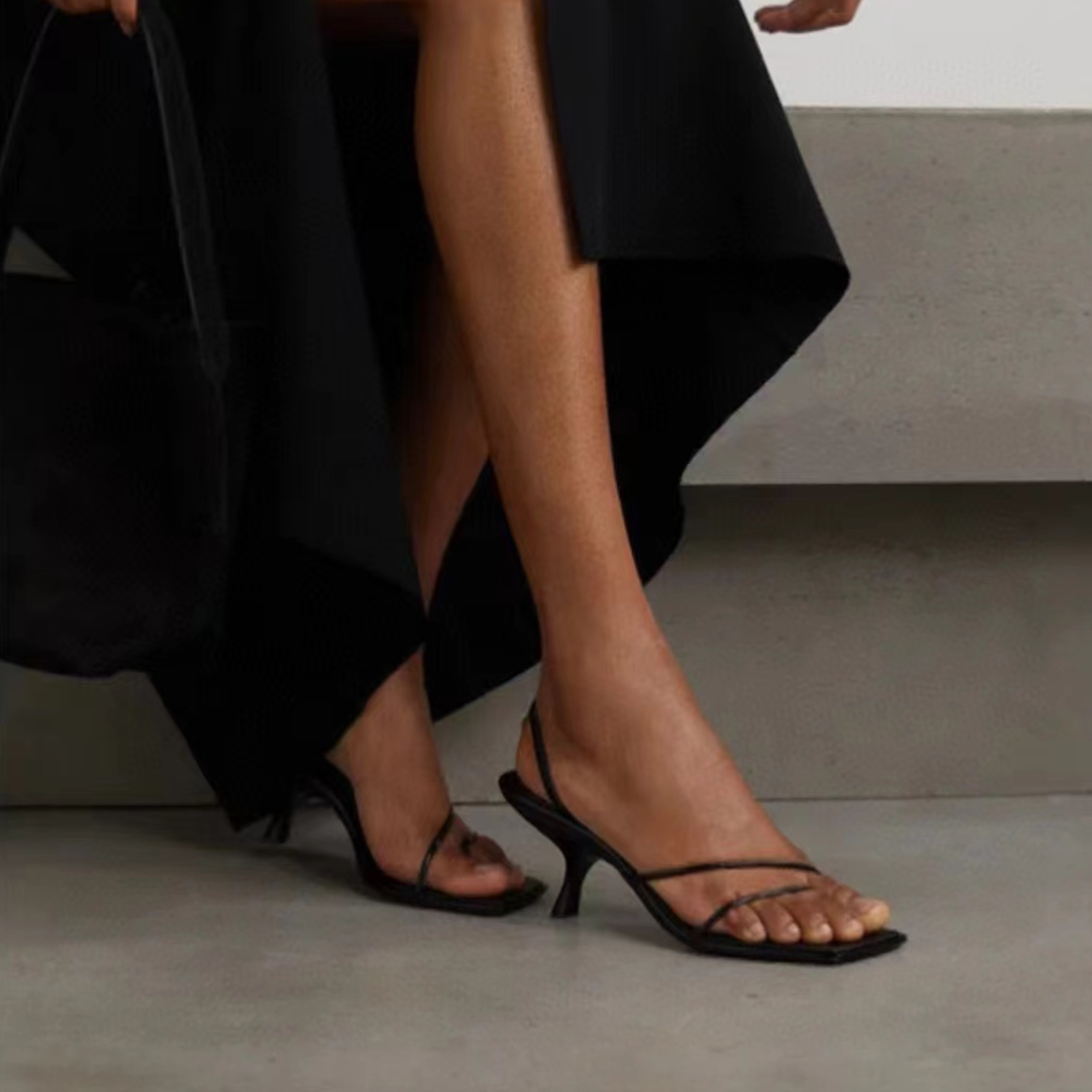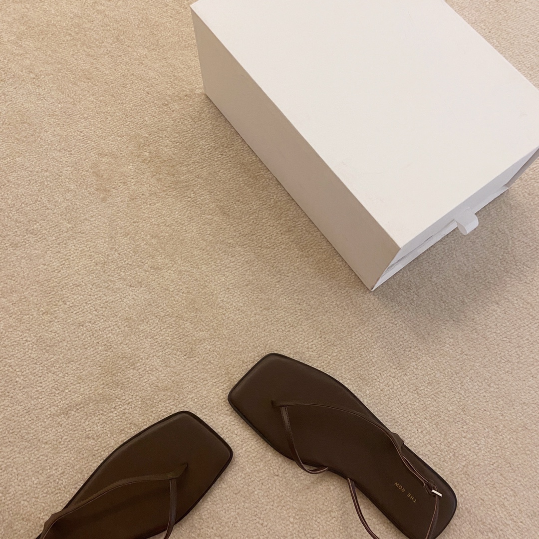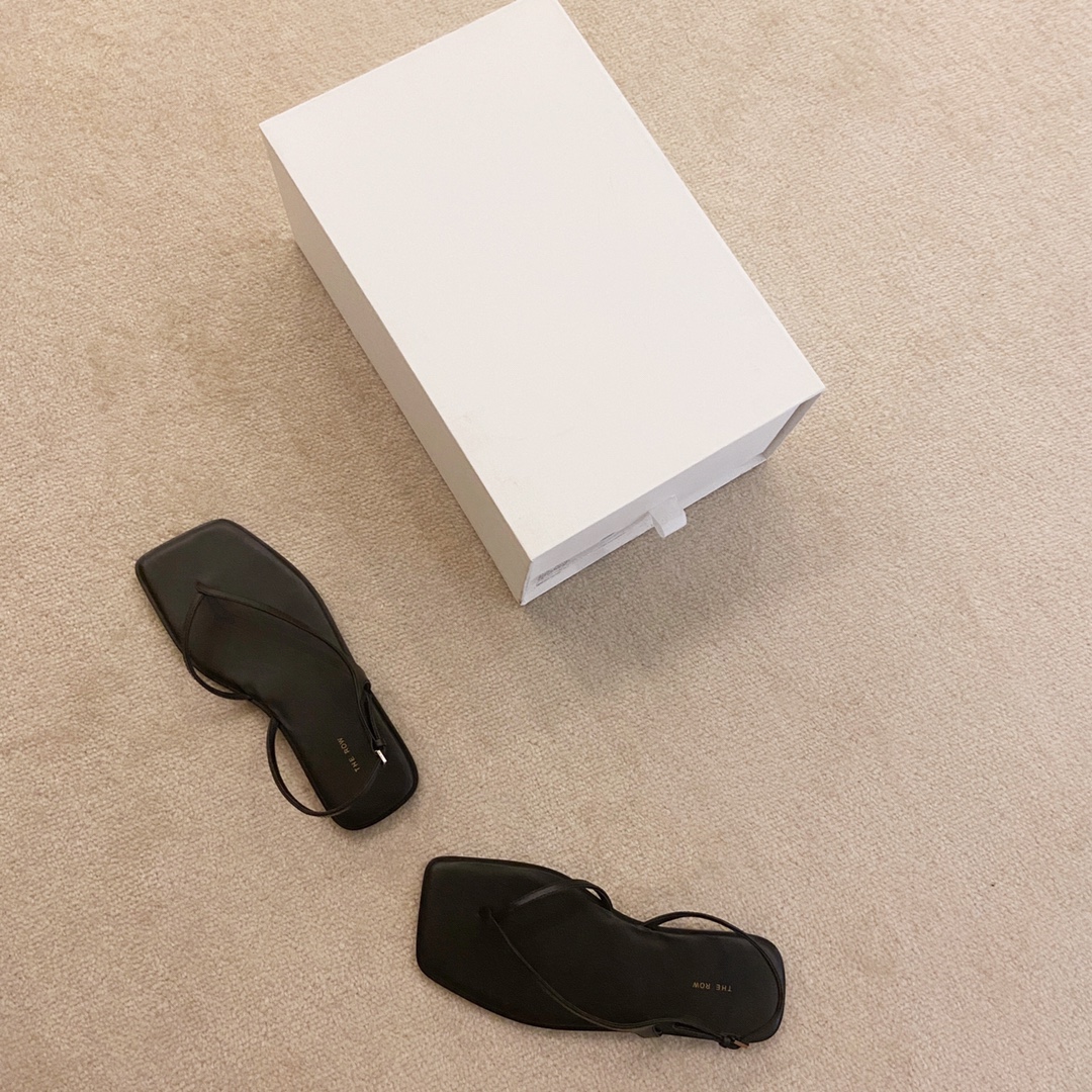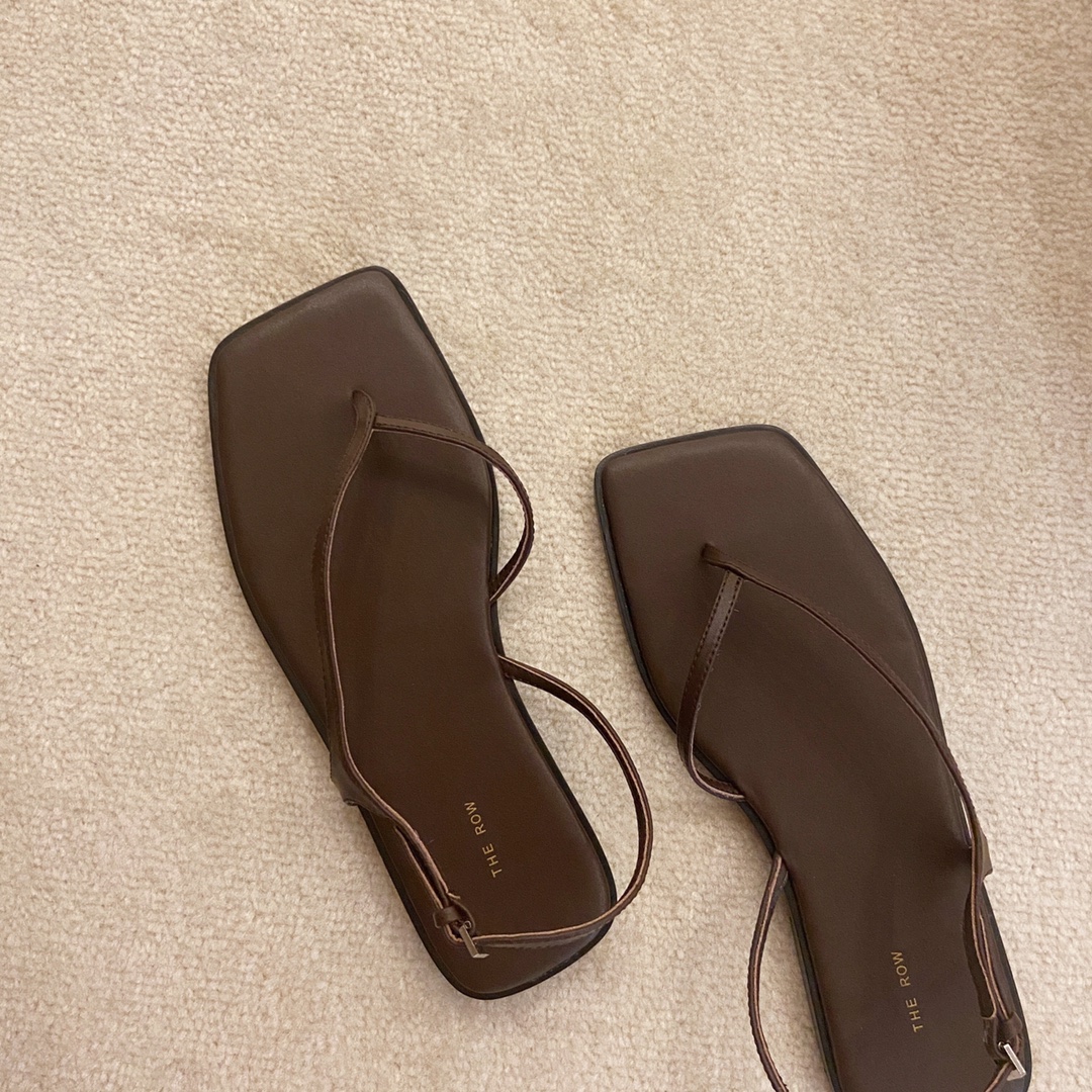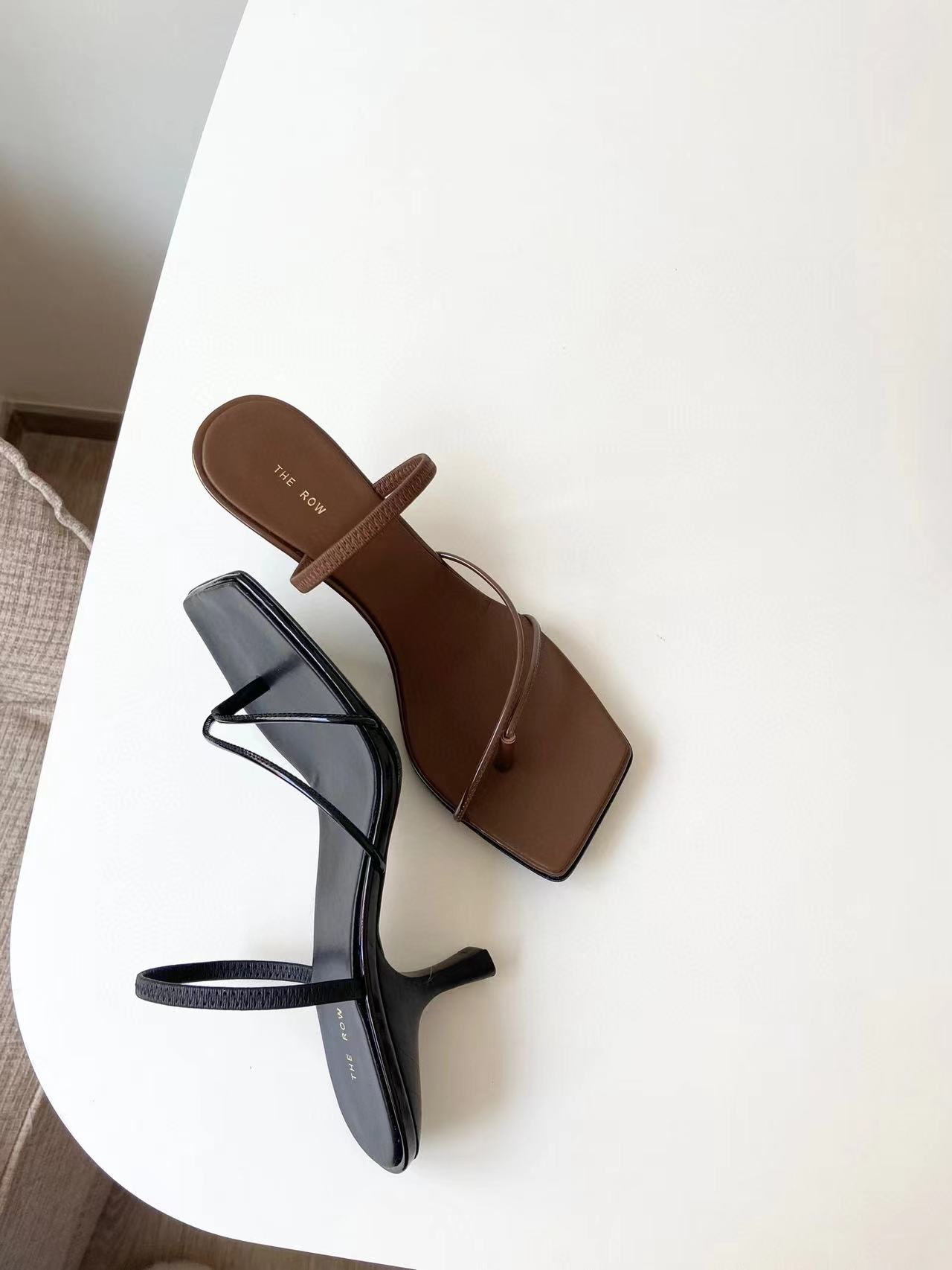 NIGO THE ROW Women's Spring And Summer Square Head Clip Toe Sandals Flat Shoes Temperament Low Heel Spaghetti Strap Shoes #nigo99217