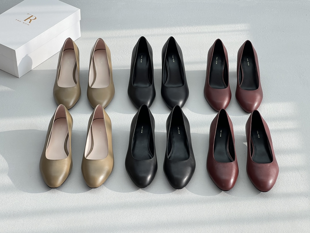 NIGO THE ROW Women's Spring and Summer Solid Color Pointed Toe Leather High Heels Shoes #nigo74443
