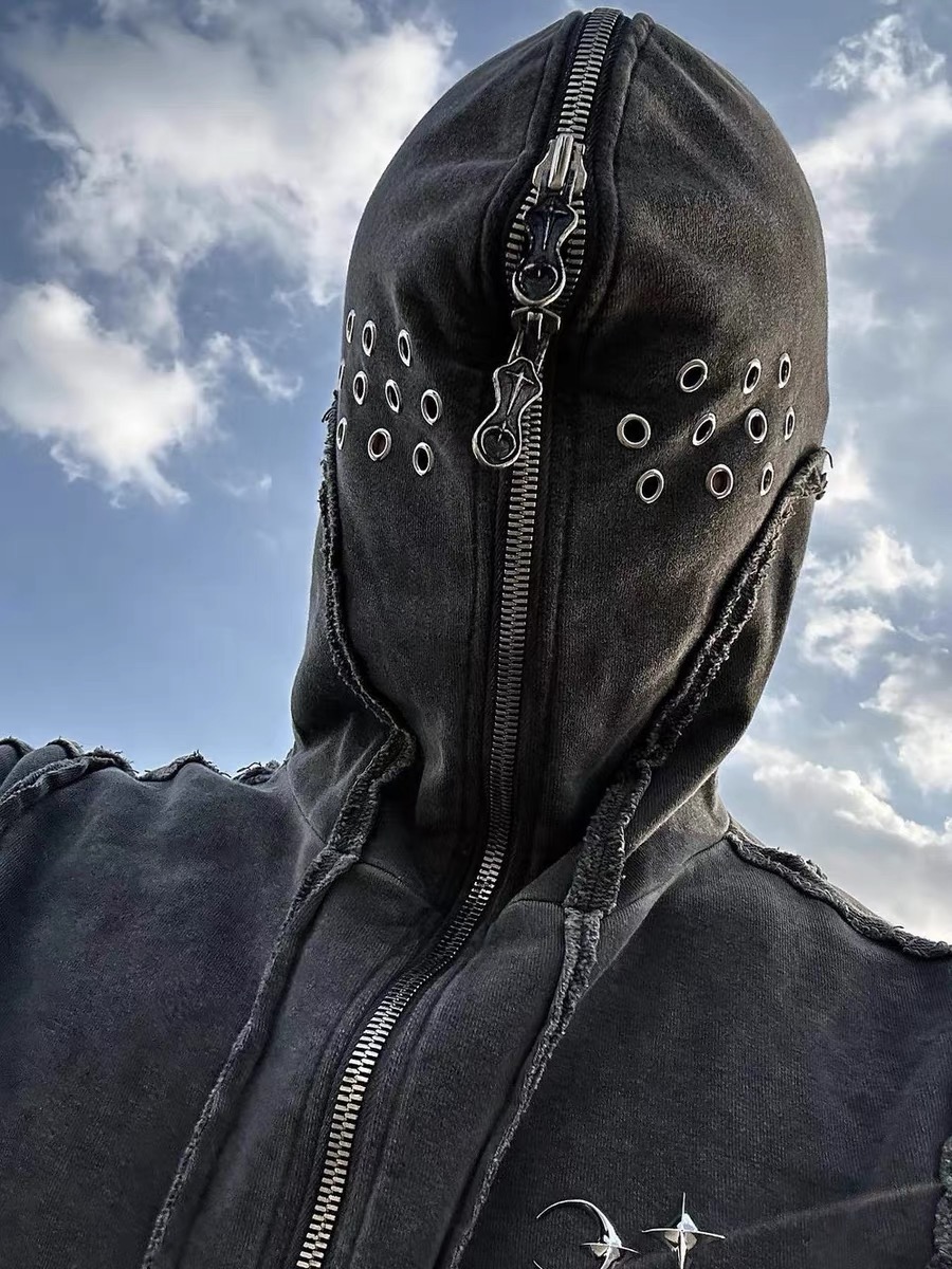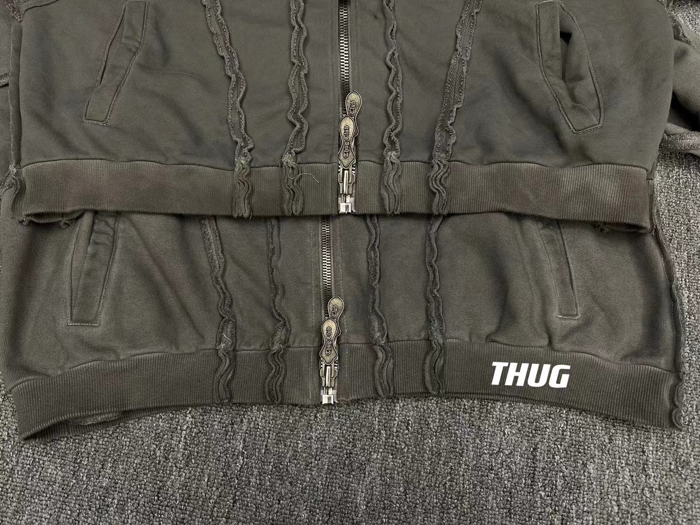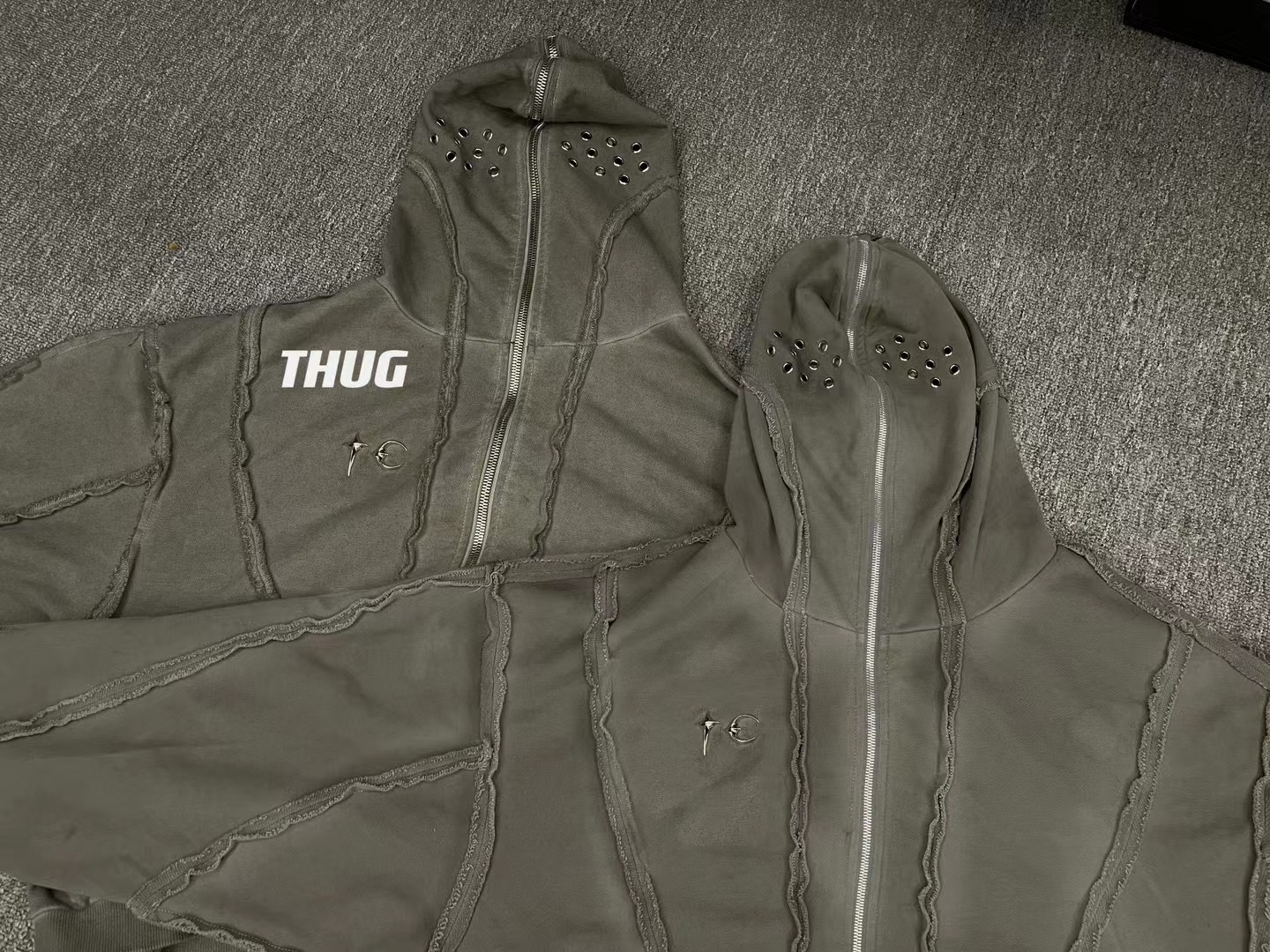 NIGO THUG CLUB FW23 Men's Spring & Autumn Washed & Aged Metal Logo Patchwork Long Sleeve Zipper Hooded Cardigan Sweatshirt Ngvp #nigo6983
