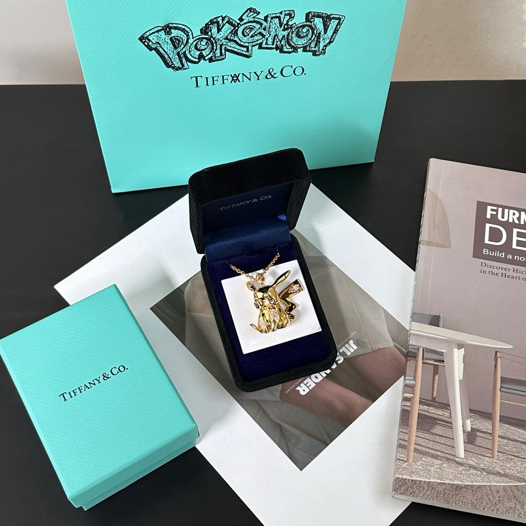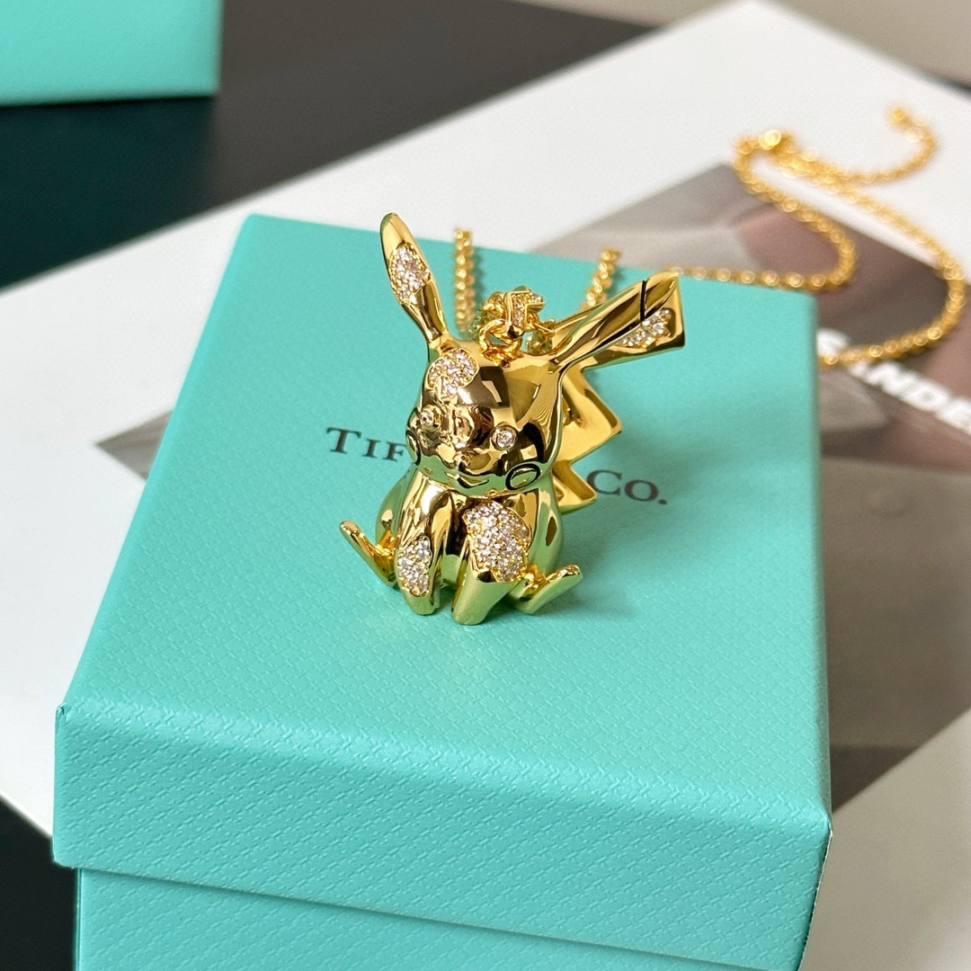 NIGO Tiffany & Co. Arsham Studio & Pokemon Co-Branded Collection Men's & Women's Black & Gold Pikachu Pikachu Necklaces Jewelry #nigo98154