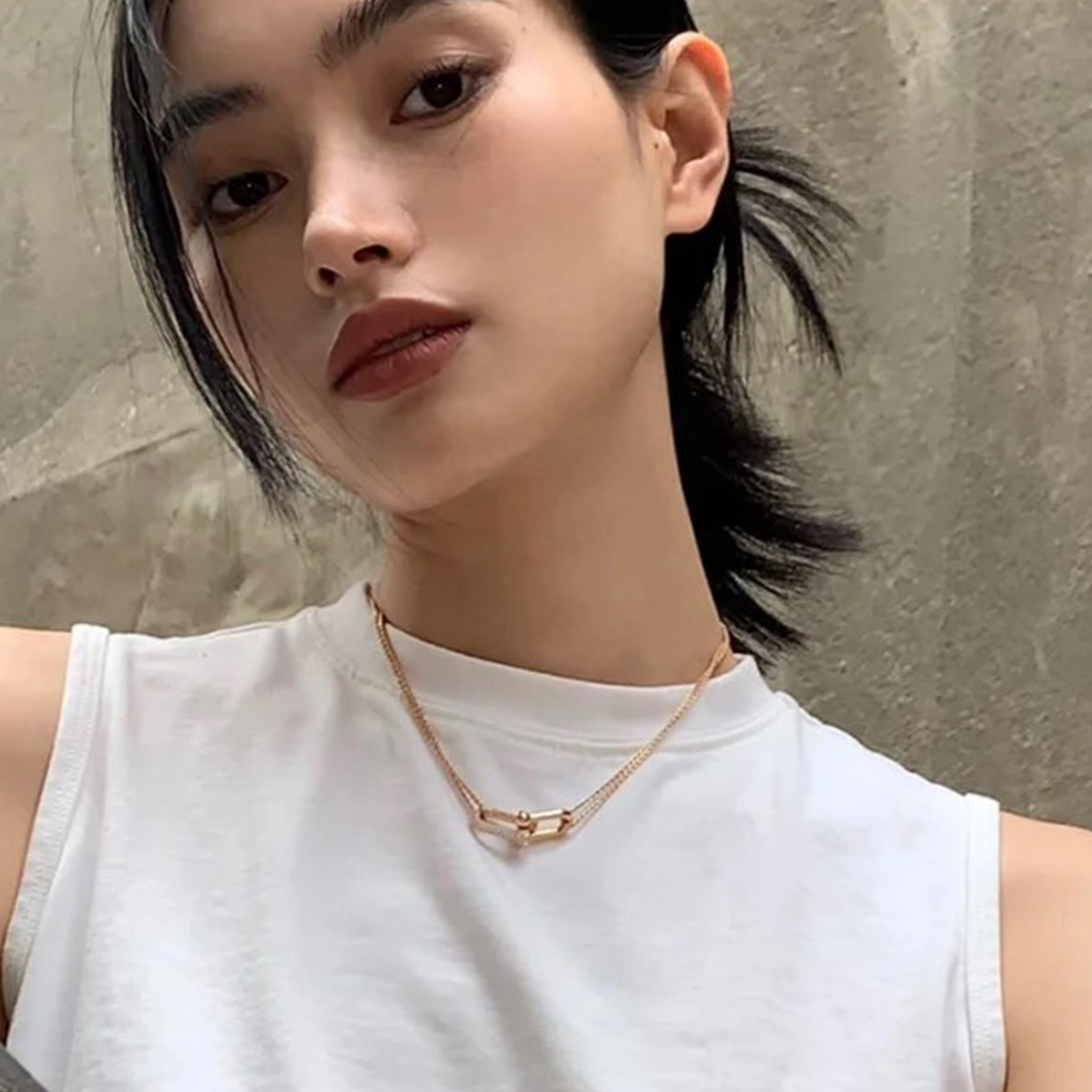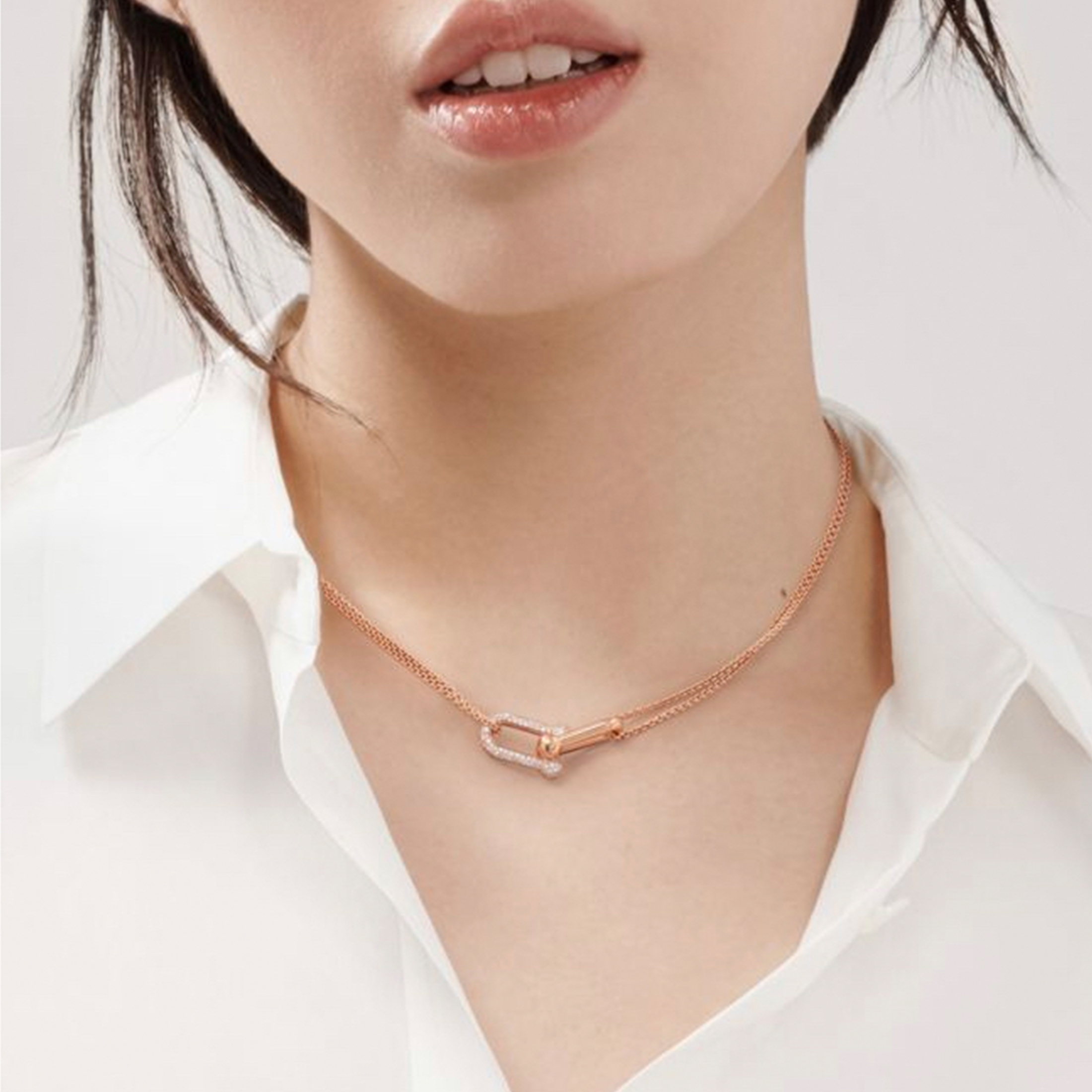NIGO Tiffany & Co. Women's Double Chain Buckle Necklace Luxury Diamond Style Casual Necklace Jewelry Accessories #nigo71289