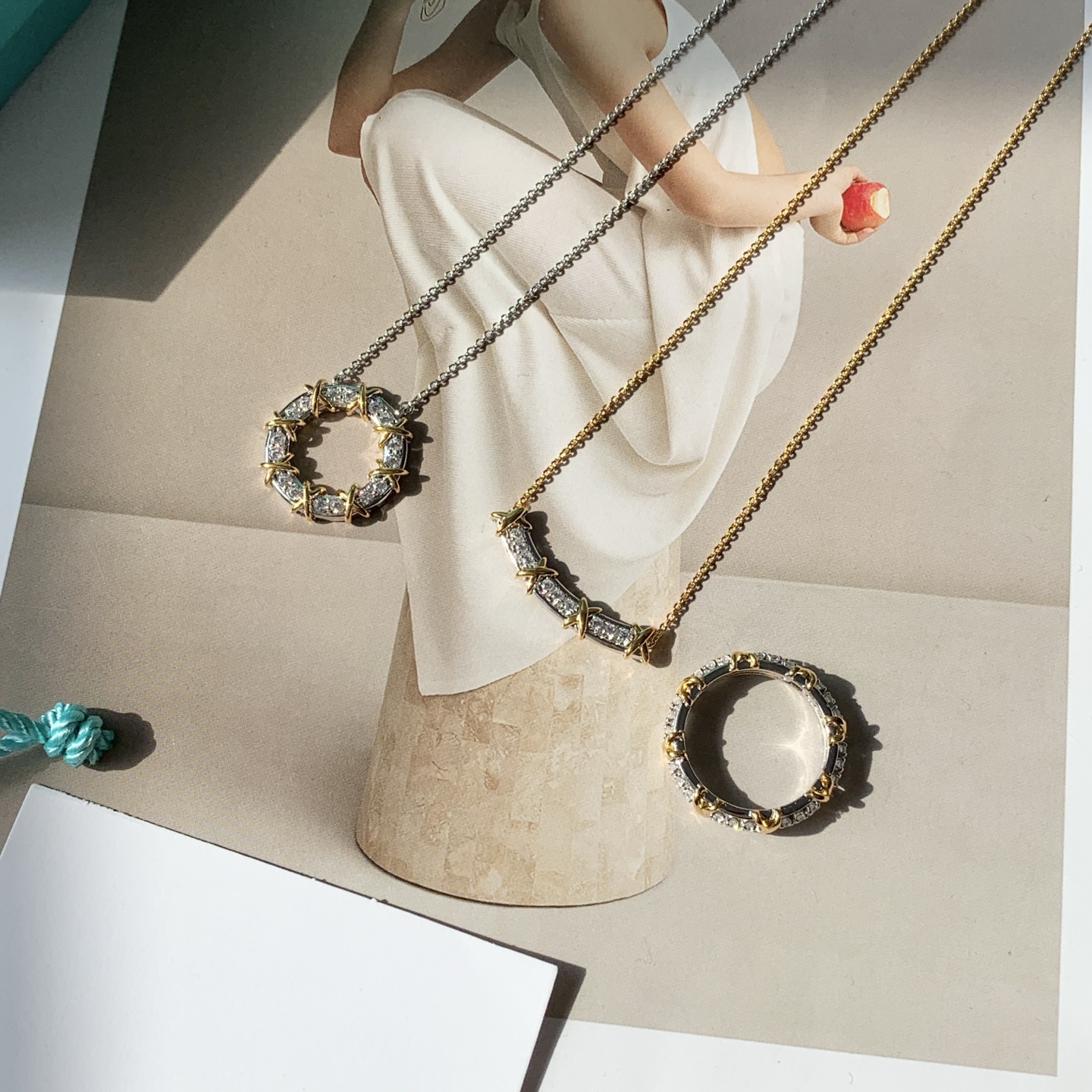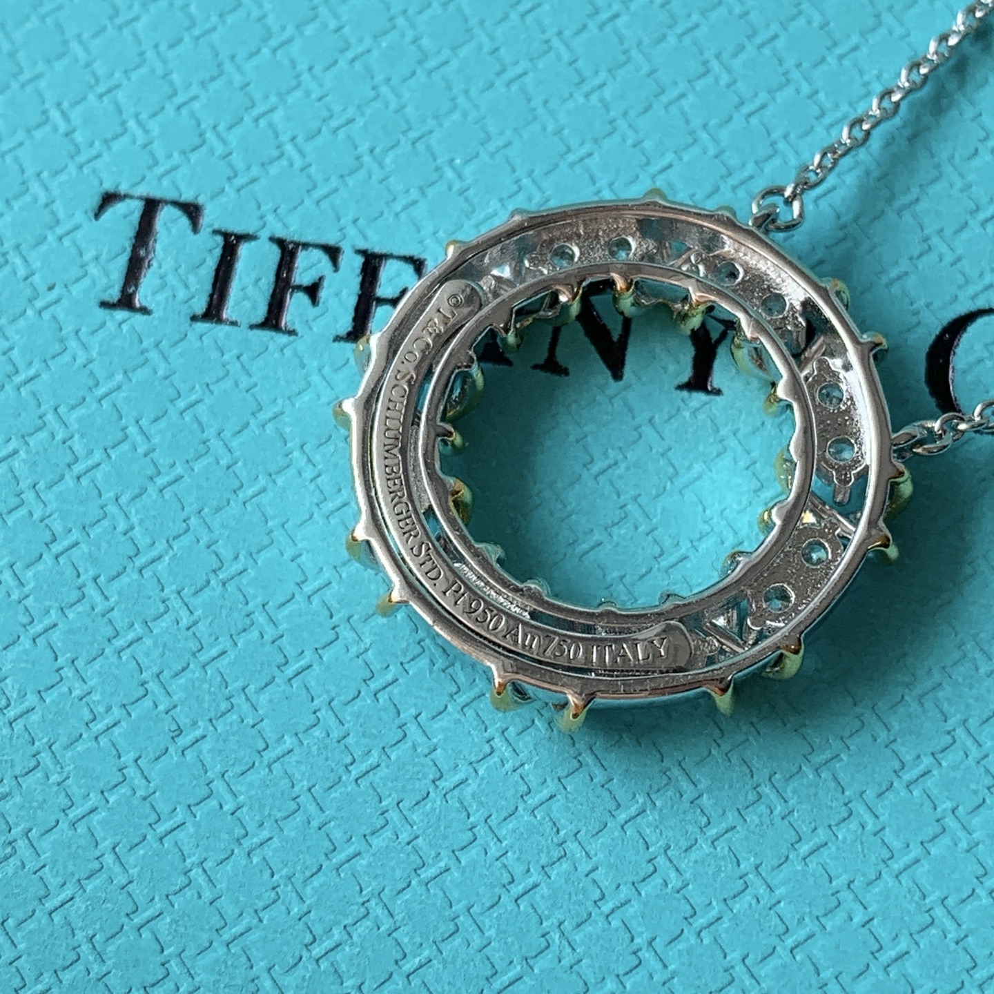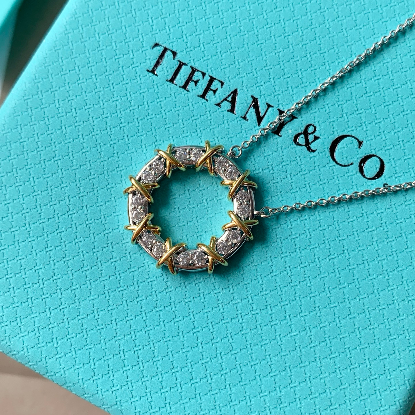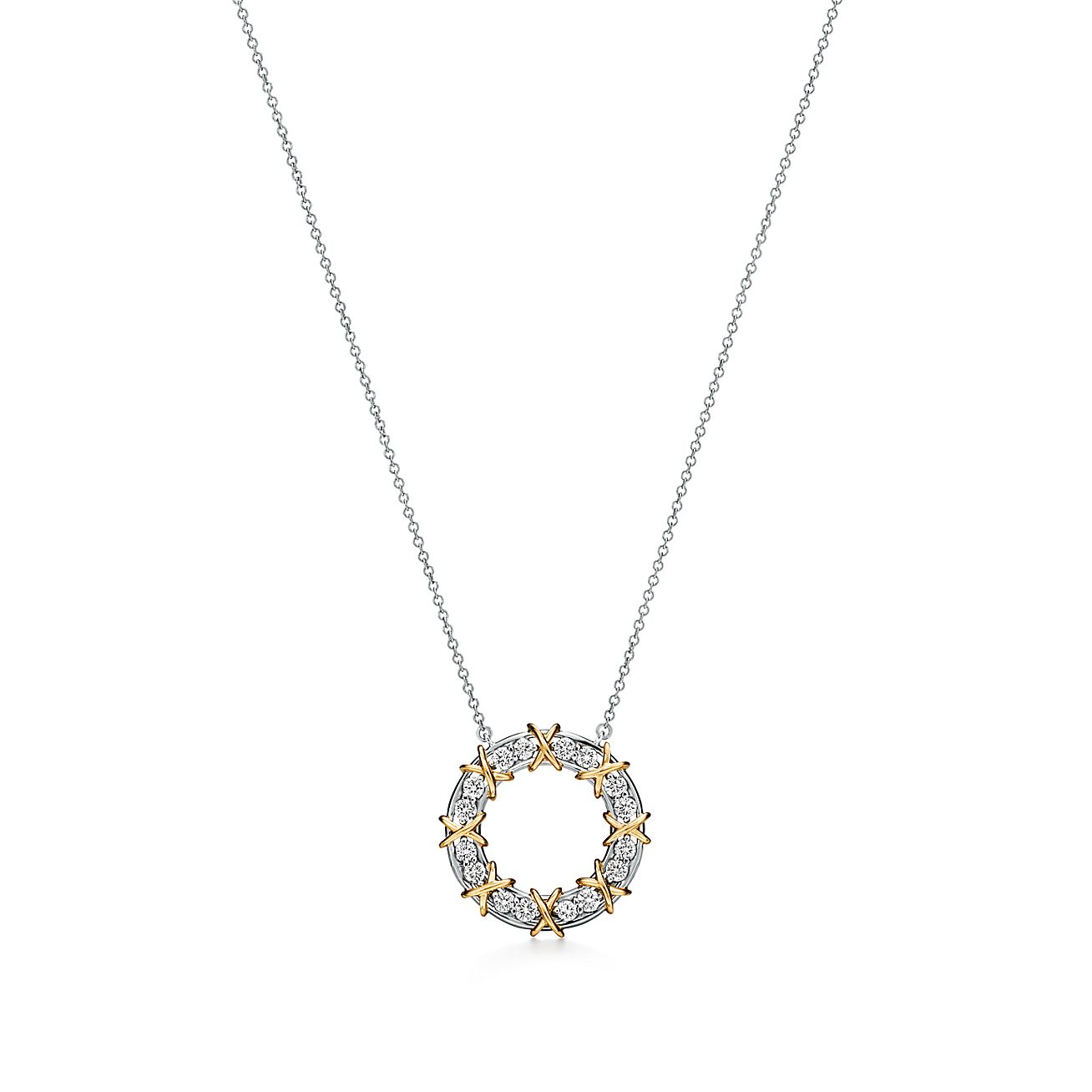 NIGO Tiffany & Co. Women's Jean Schlumberger By Tiffany Collection Sixteen Stone Narrow Necklace With Diamonds Round Pendant Necklace Accessories Ngvp #nigo9947