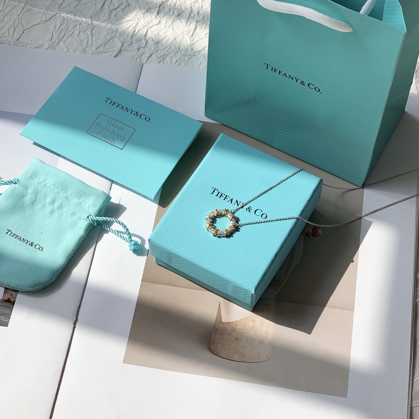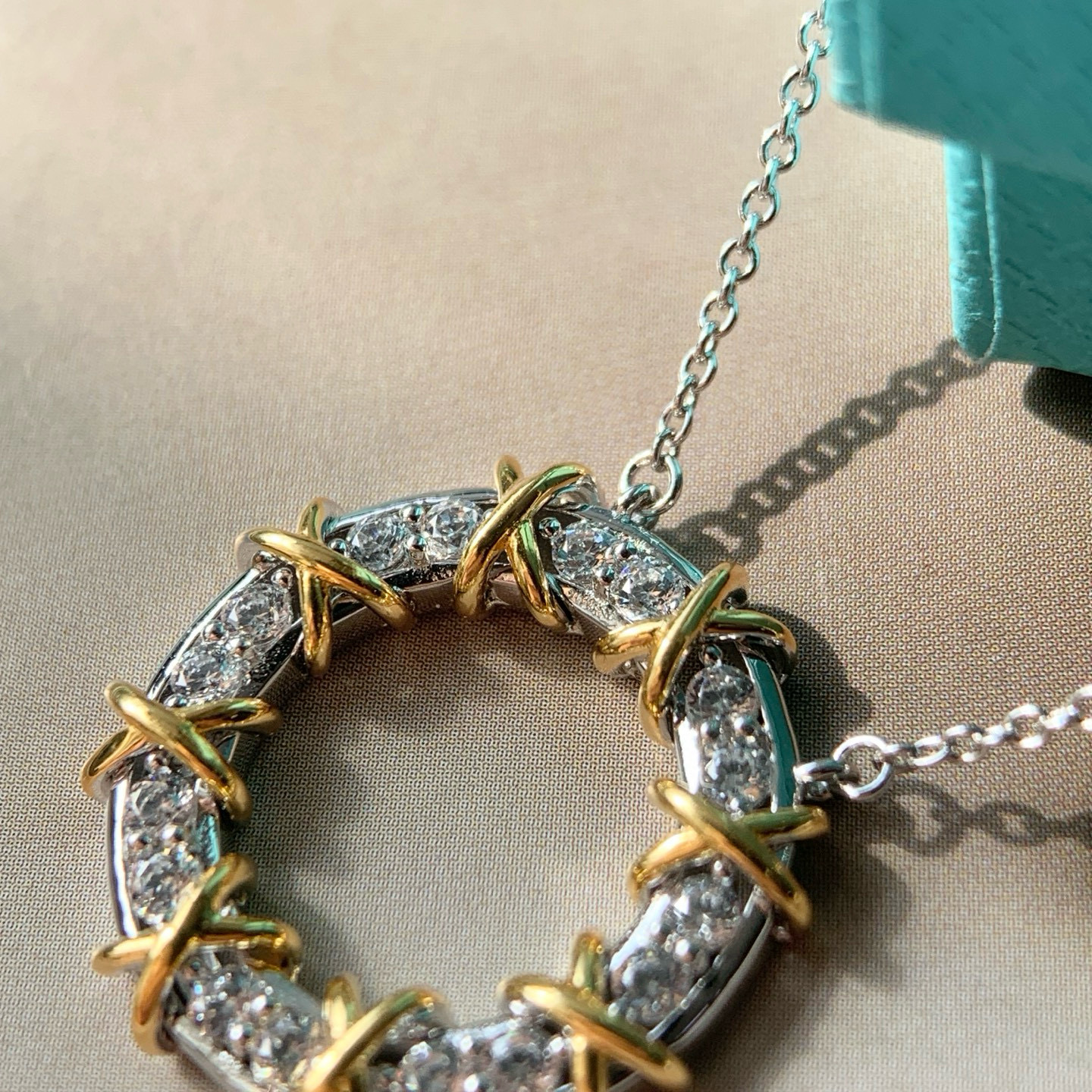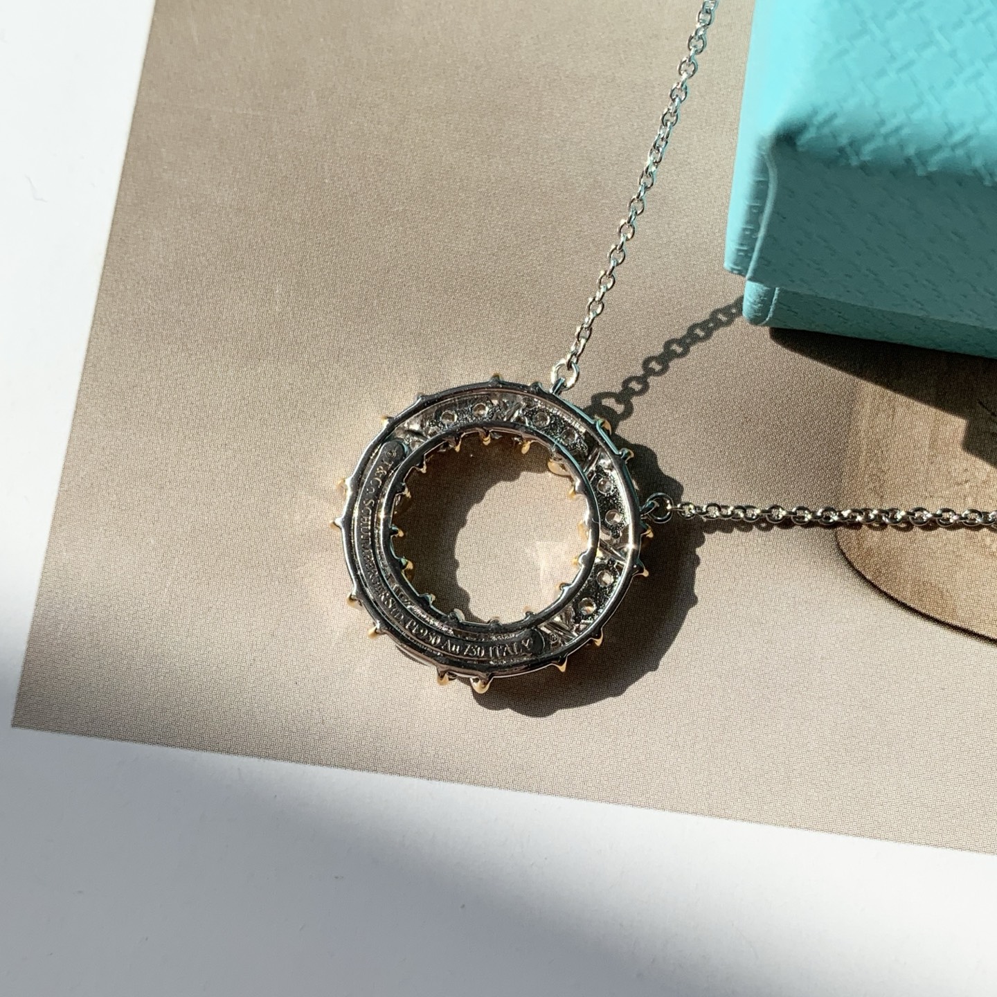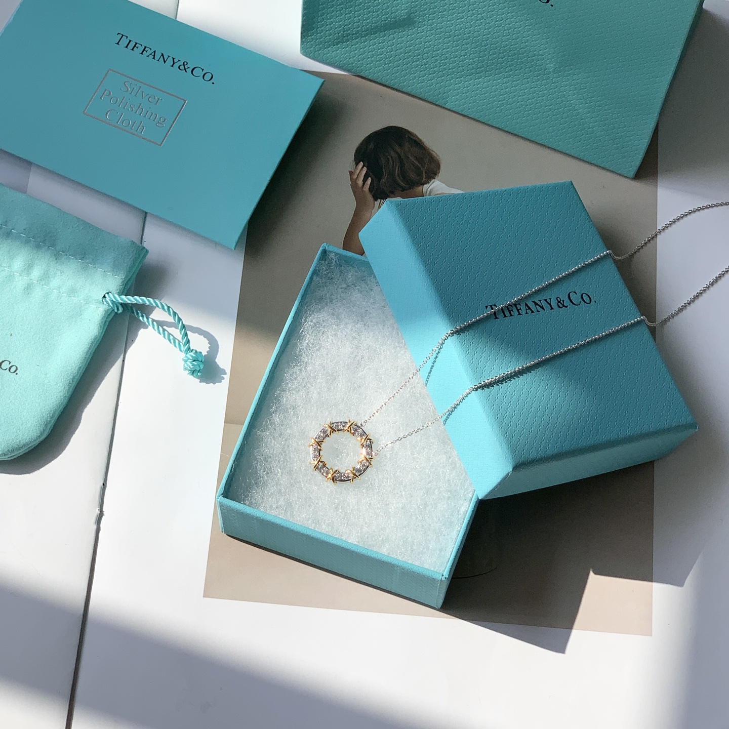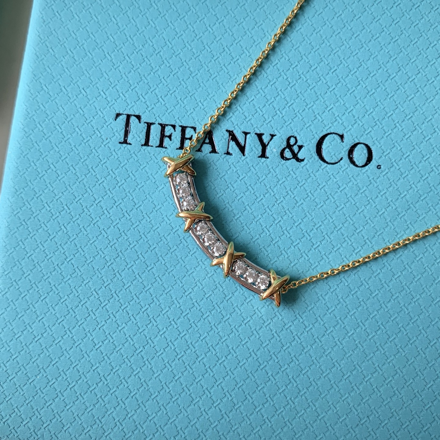 NIGO Tiffany & Co. Women's Jean Schlumberger By Tiffany Collection Sixteen Stone Narrow Necklace With Diamonds Round Pendant Necklace Accessories Ngvp #nigo9947