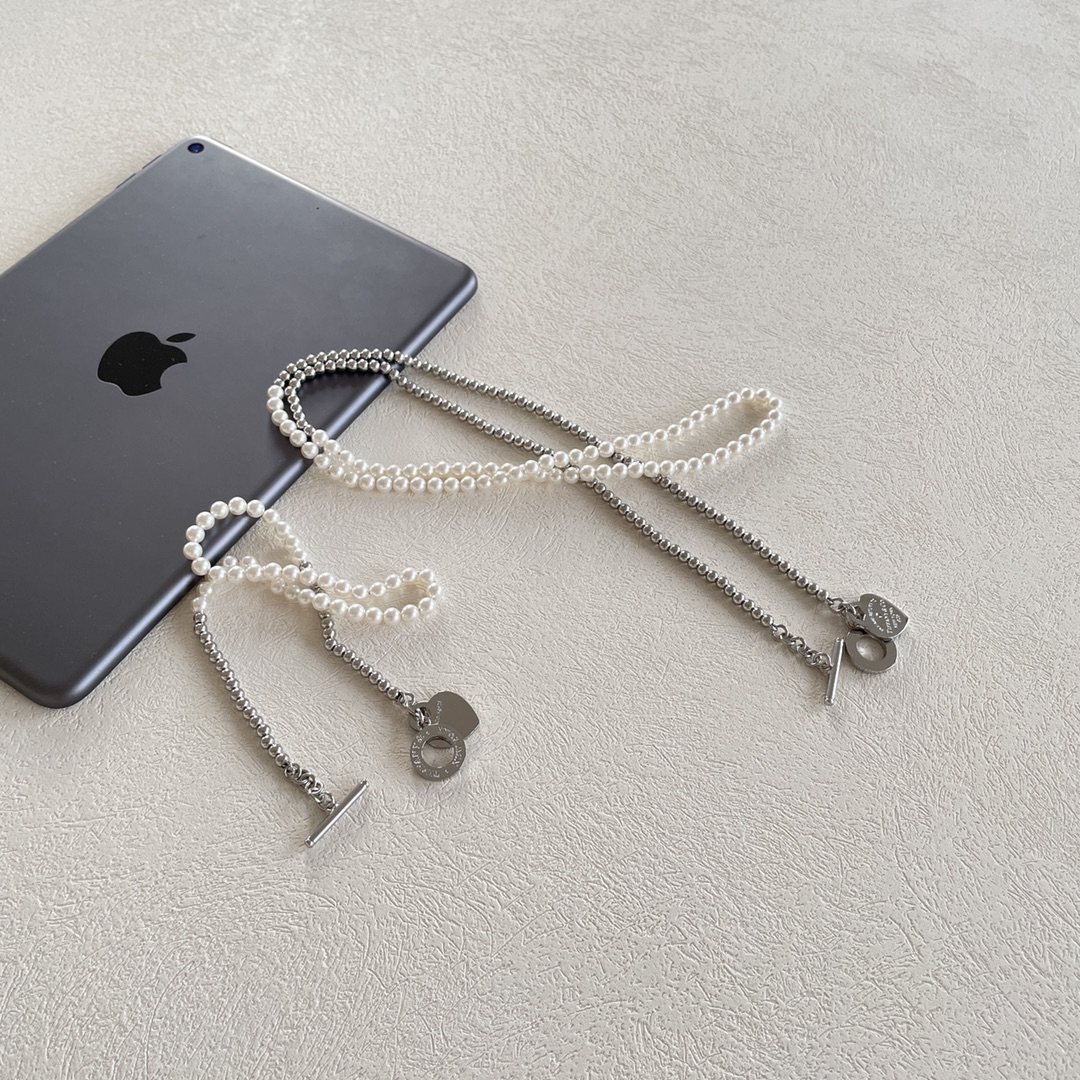 NIGO Tiffany & Co. Women's Silver Tone Wrap Set Pearl and Diamond Bracelet Necklace Jewelry #nigo73828