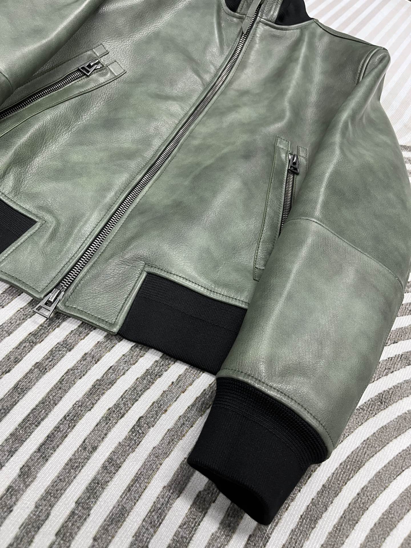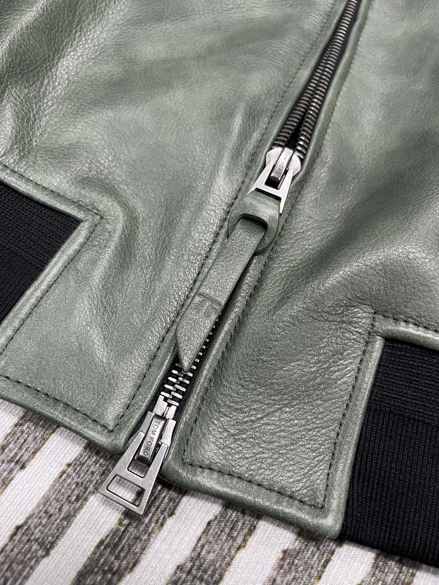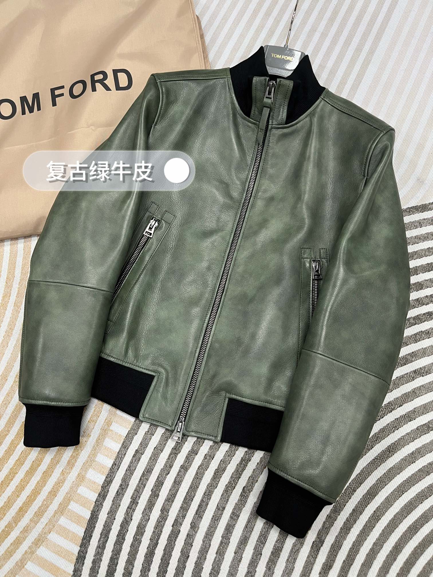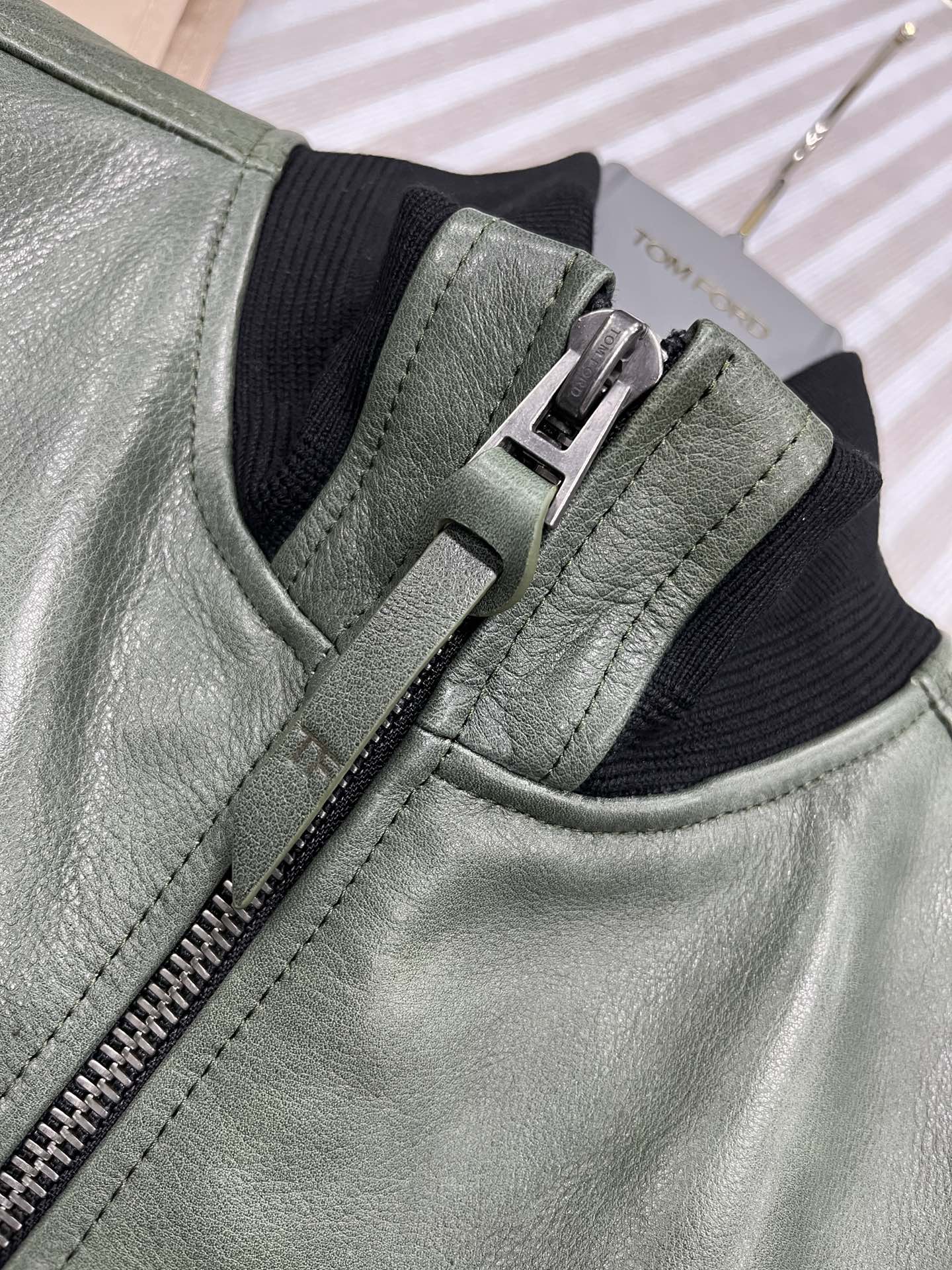 NIGO Tom Ford Men's Fall And Winter Green Standing Collar Cowhide Jacket Fashion Temperament Retro Zipper Casual Jacket Coat Ngvp #nigo8949