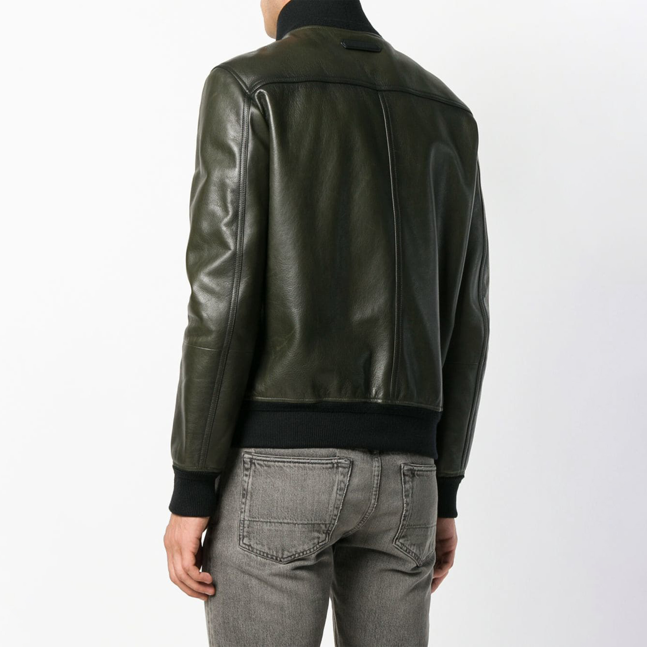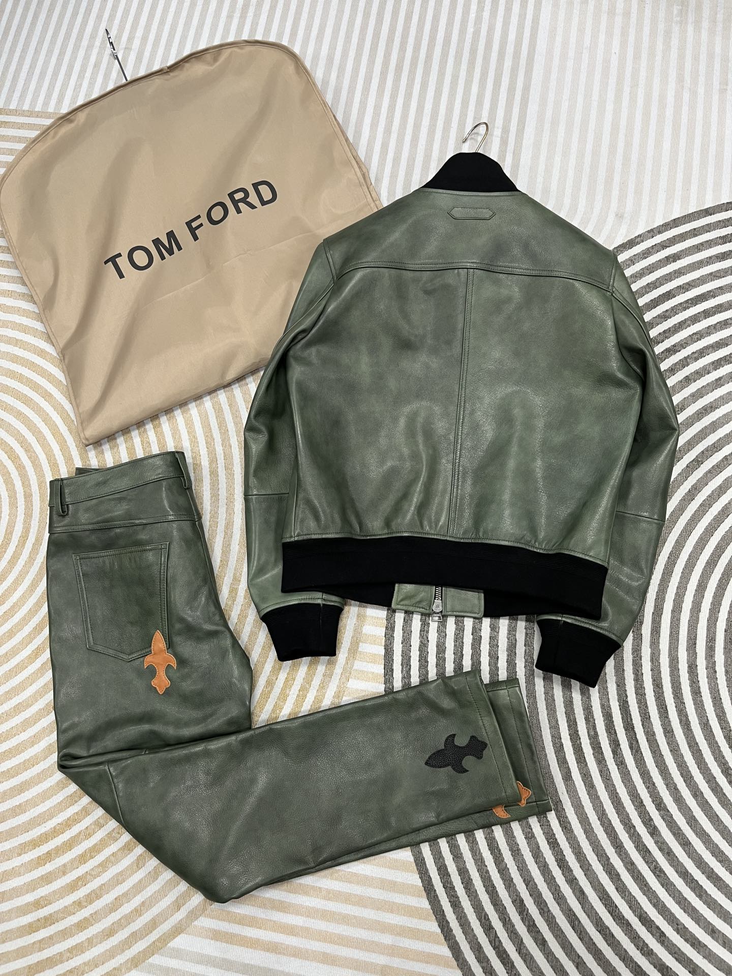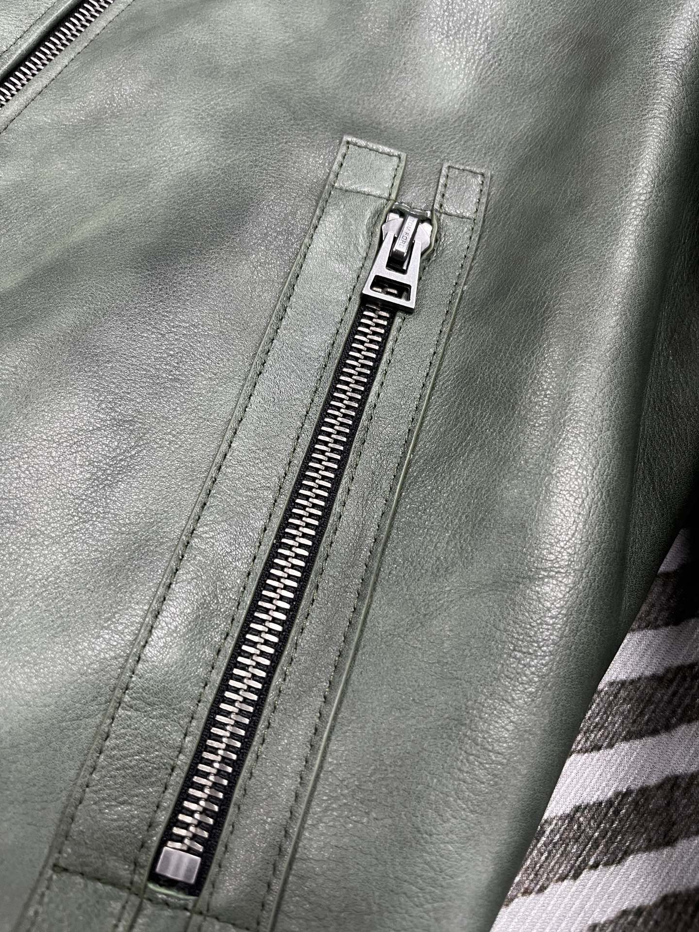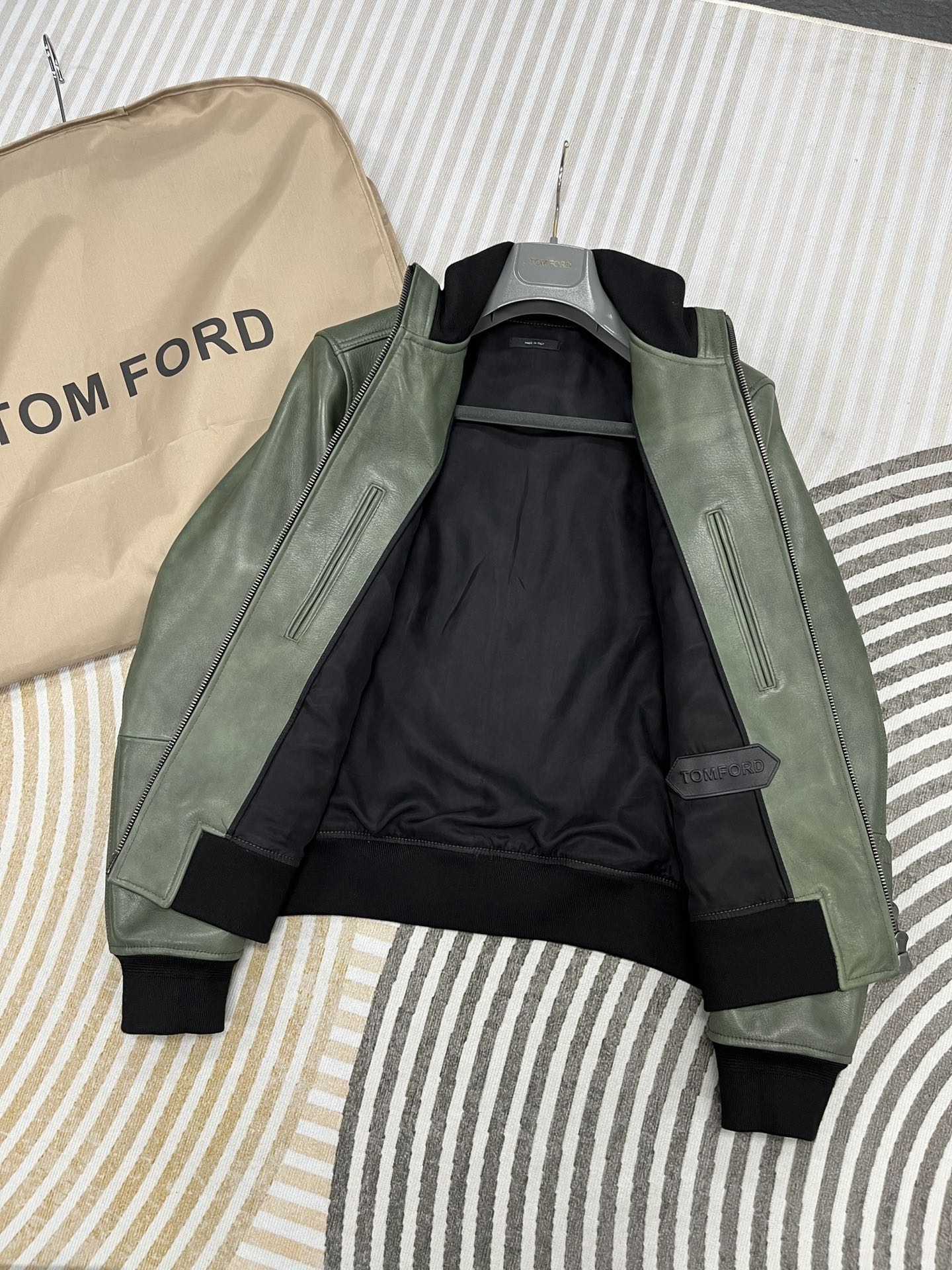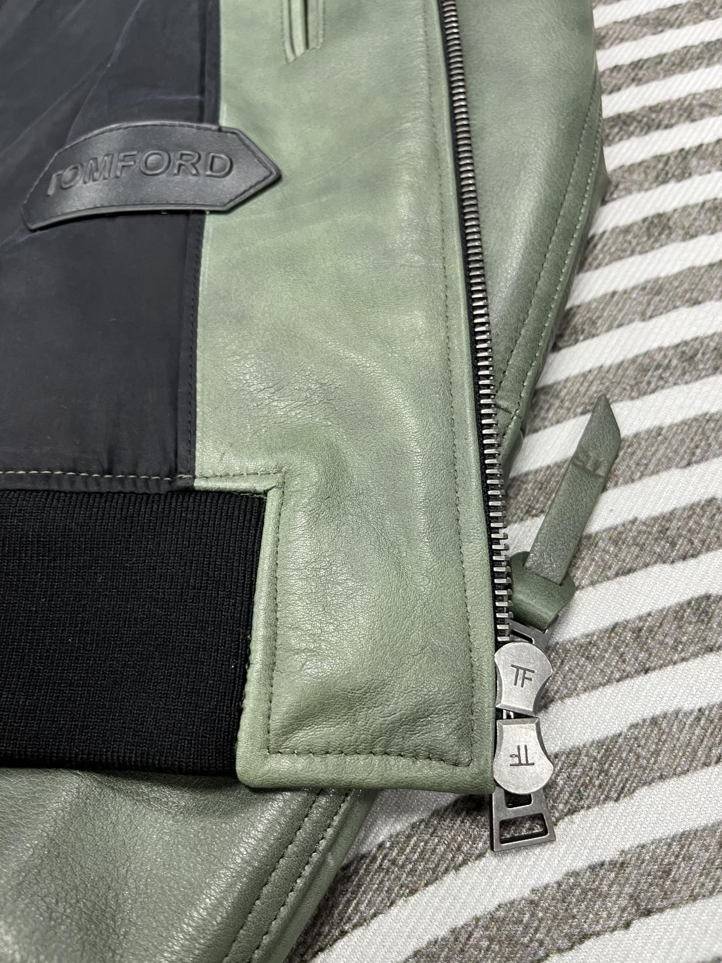 NIGO Tom Ford Men's Fall And Winter Green Standing Collar Cowhide Jacket Fashion Temperament Retro Zipper Casual Jacket Coat Ngvp #nigo8949