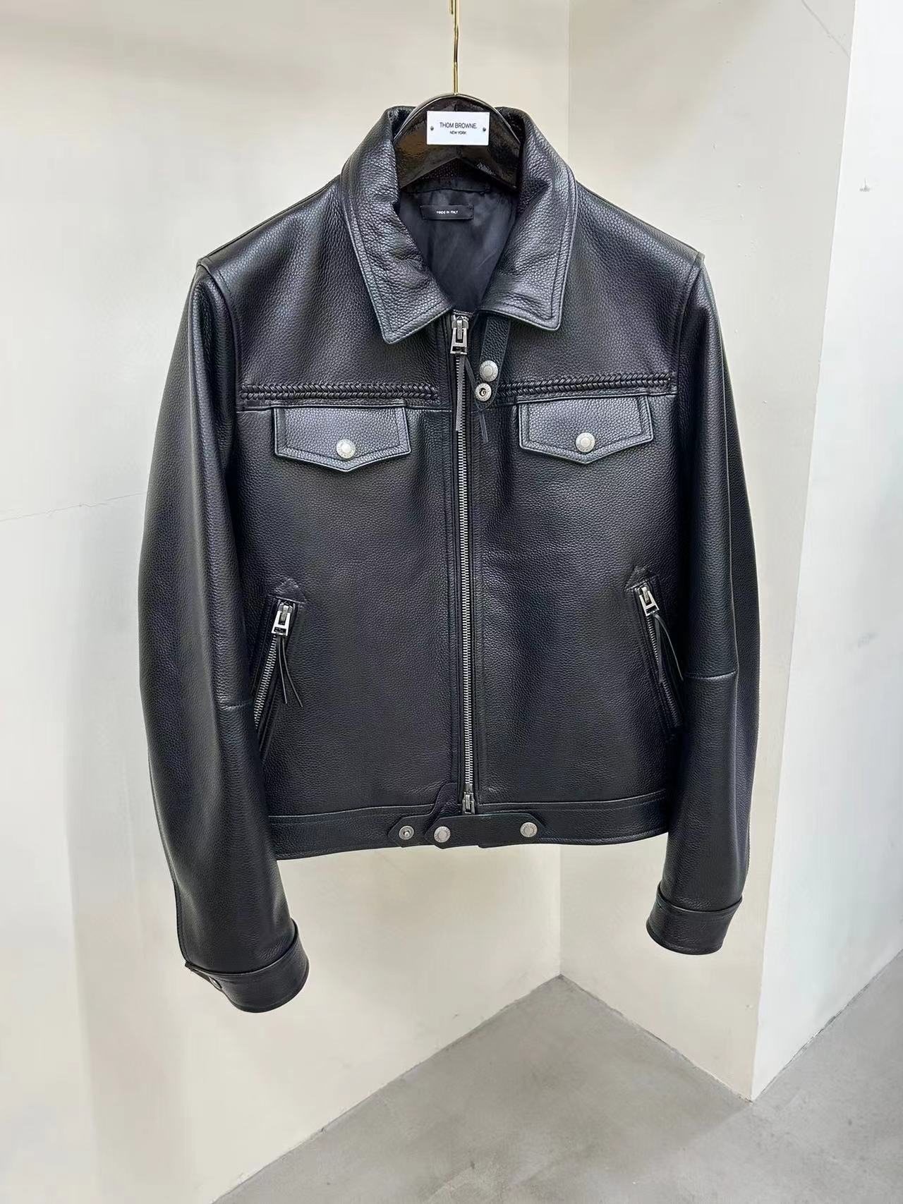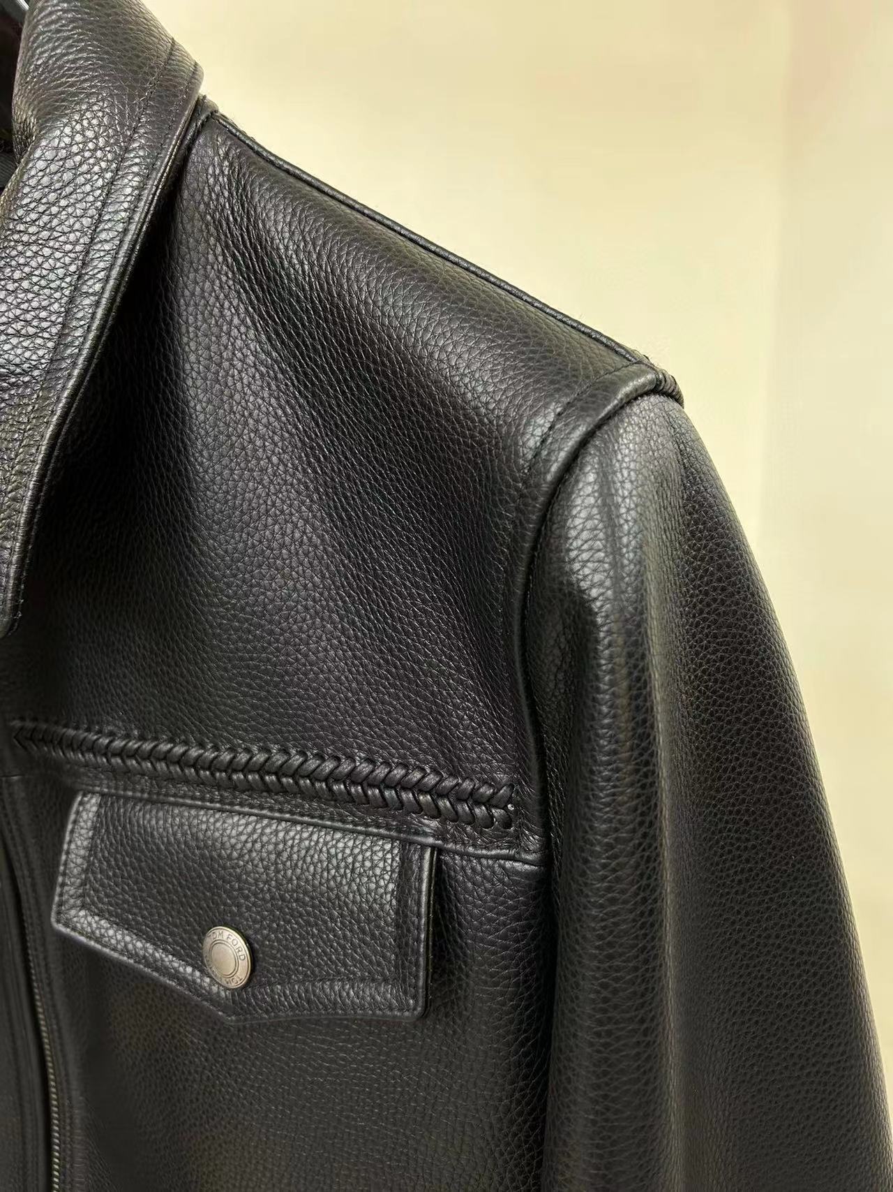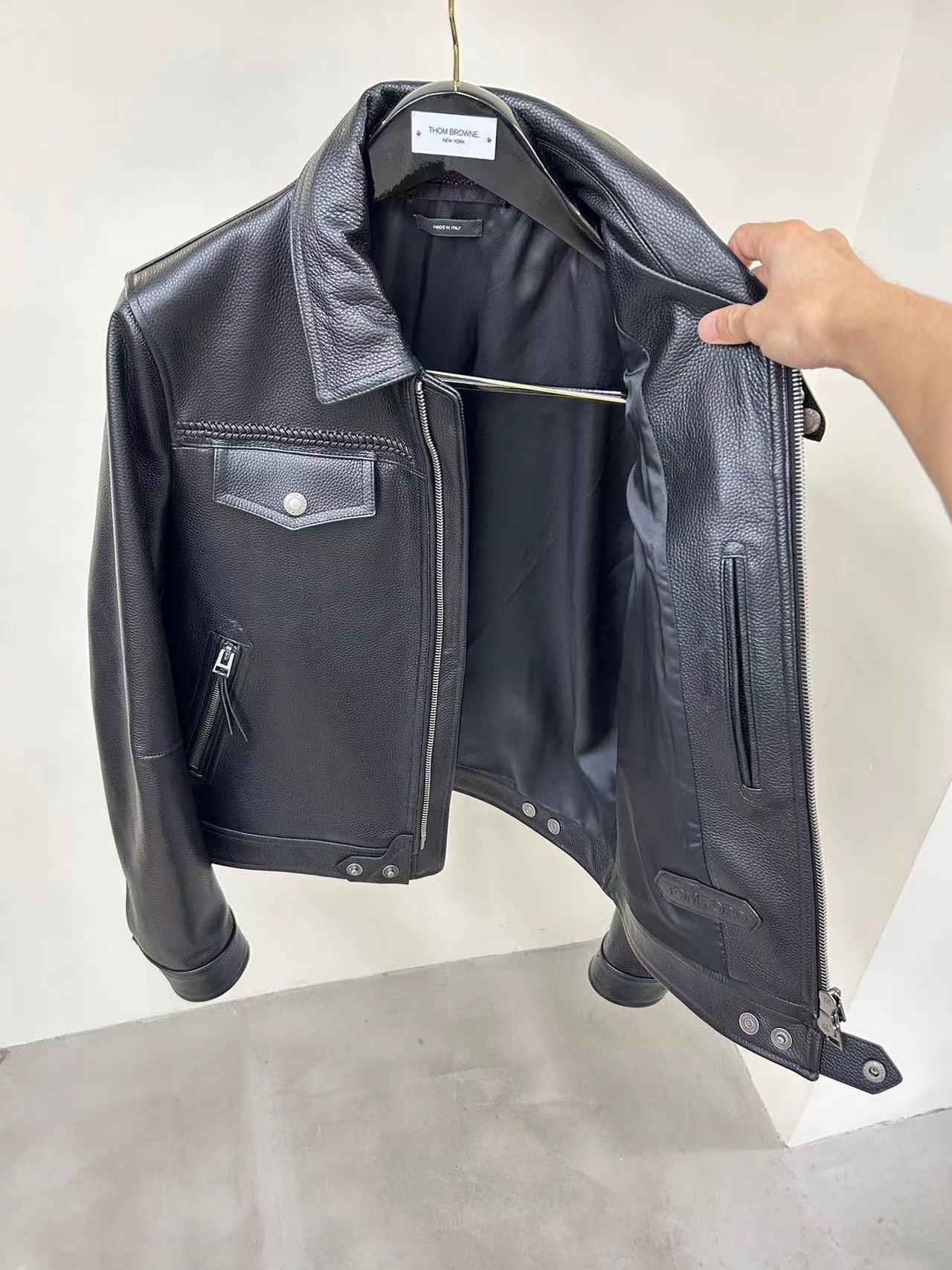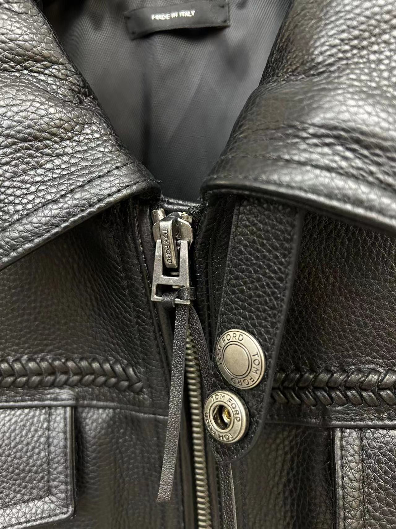 Nigo Tom Ford Men's Spring and Autumn Double Zipper Cowhide Lapel Long Sleeve Leather Jacket #nigo98476