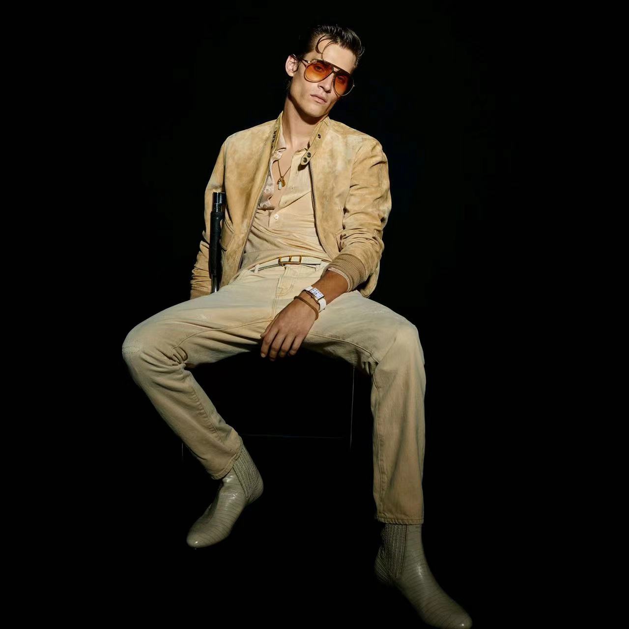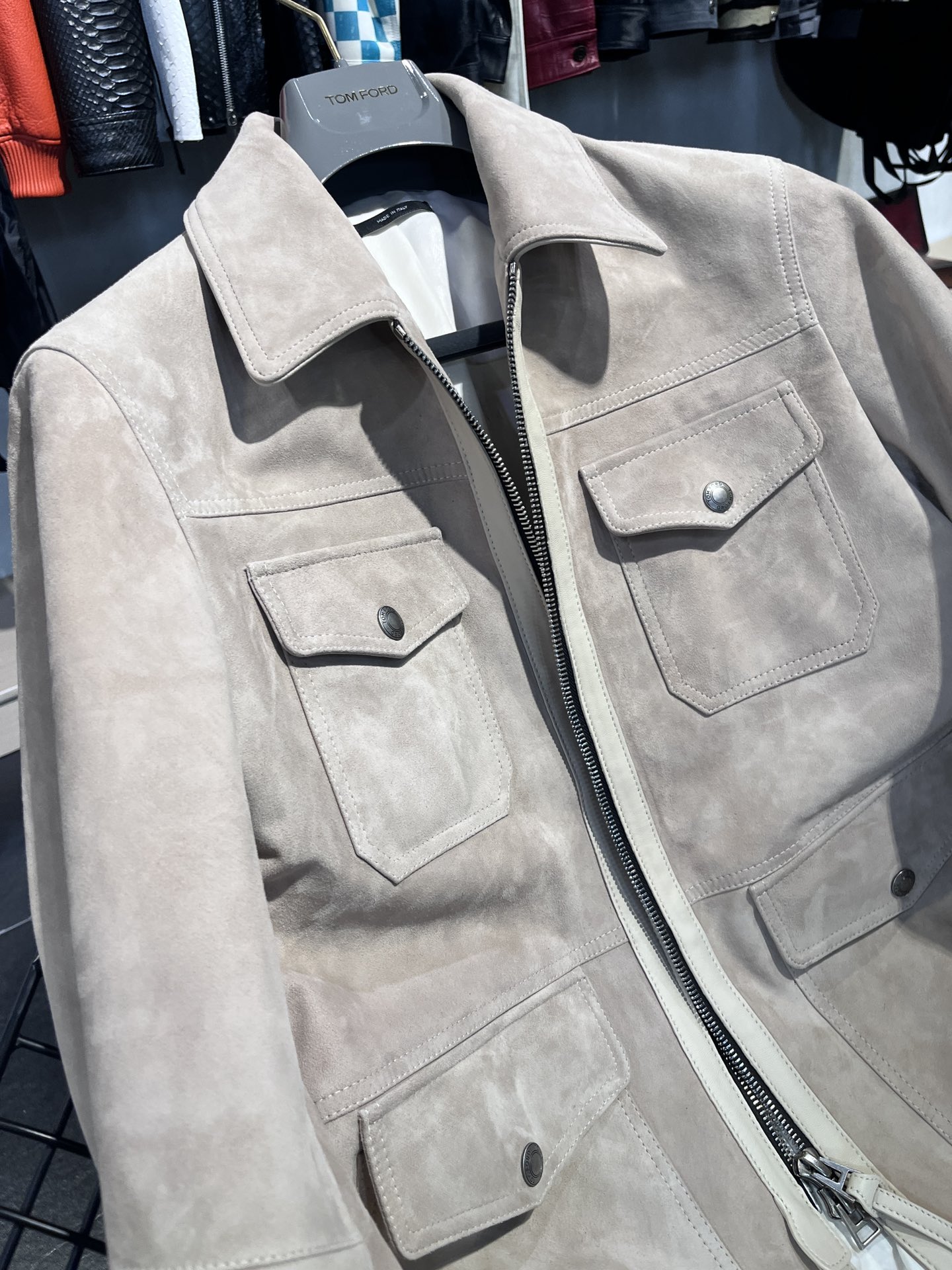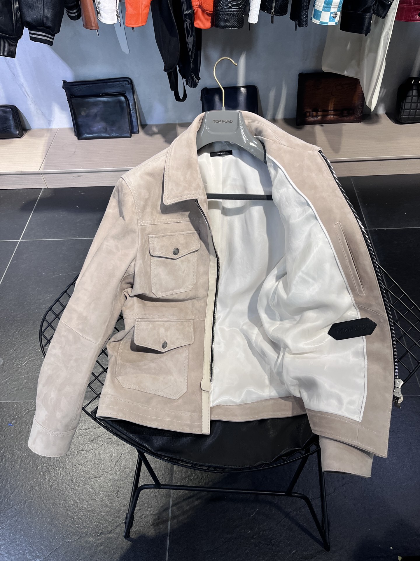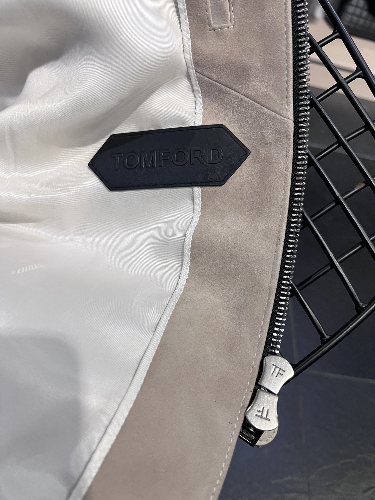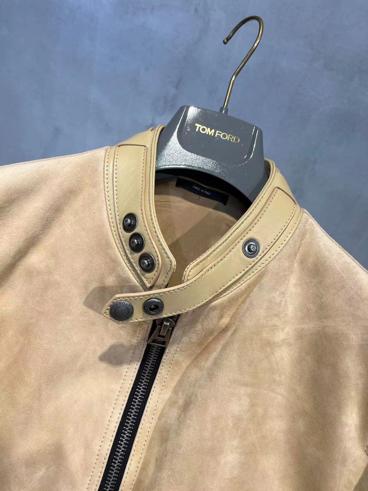 Nigo Tom Ford Men Men's Autumn and Winter Cashmere Leather Solid Color Zipper Long Sleeve Jacket #nigo73699