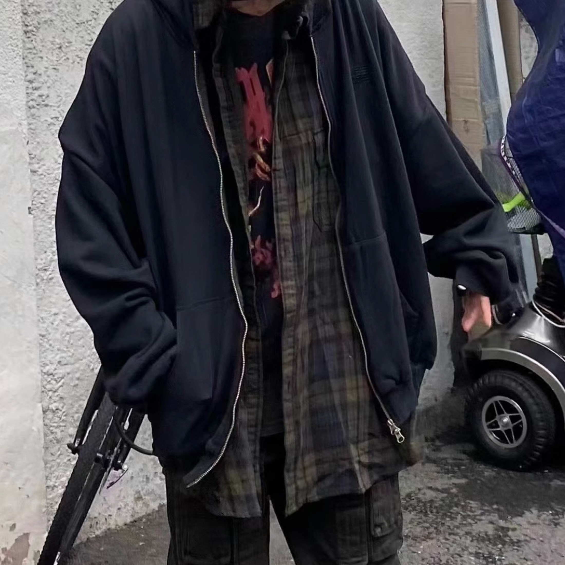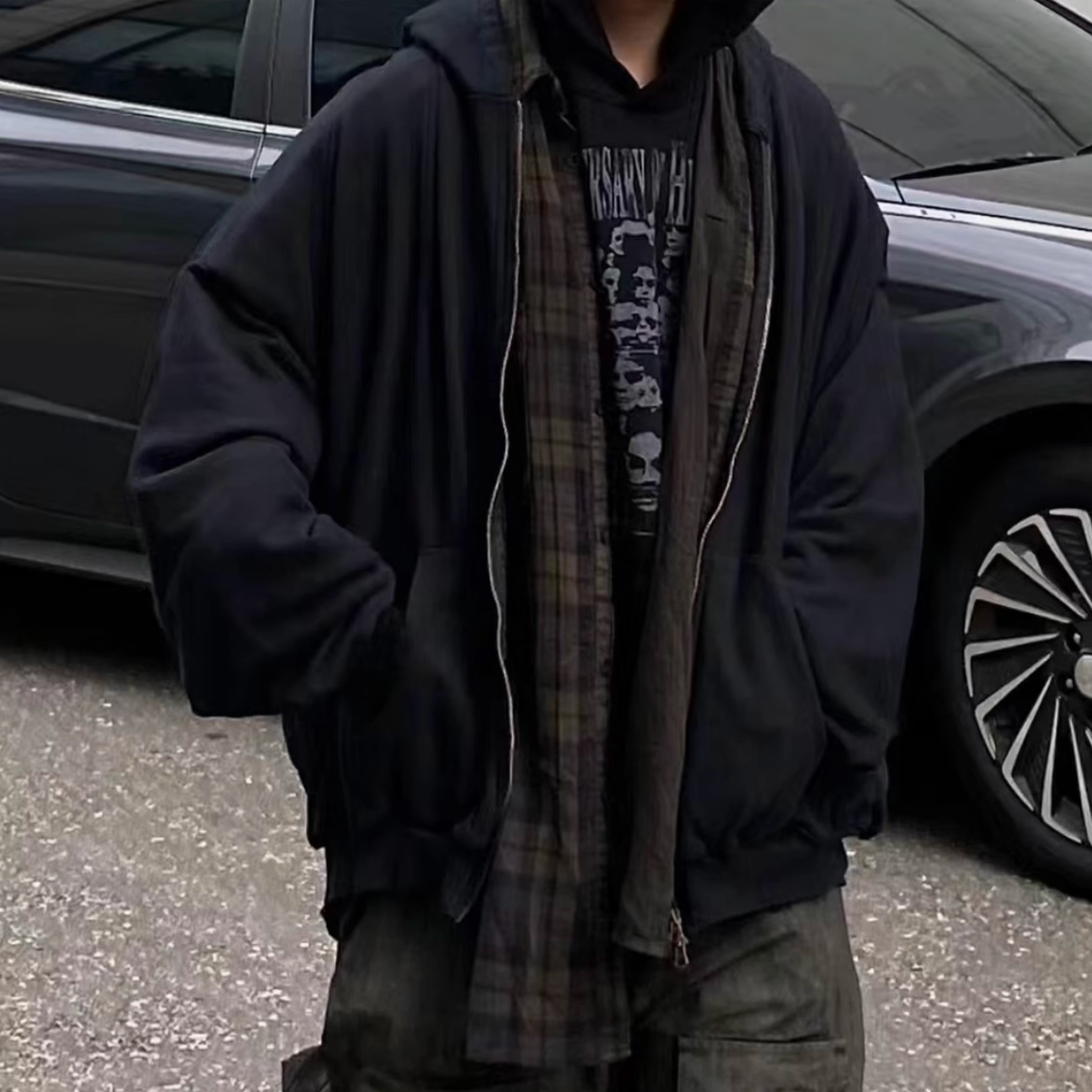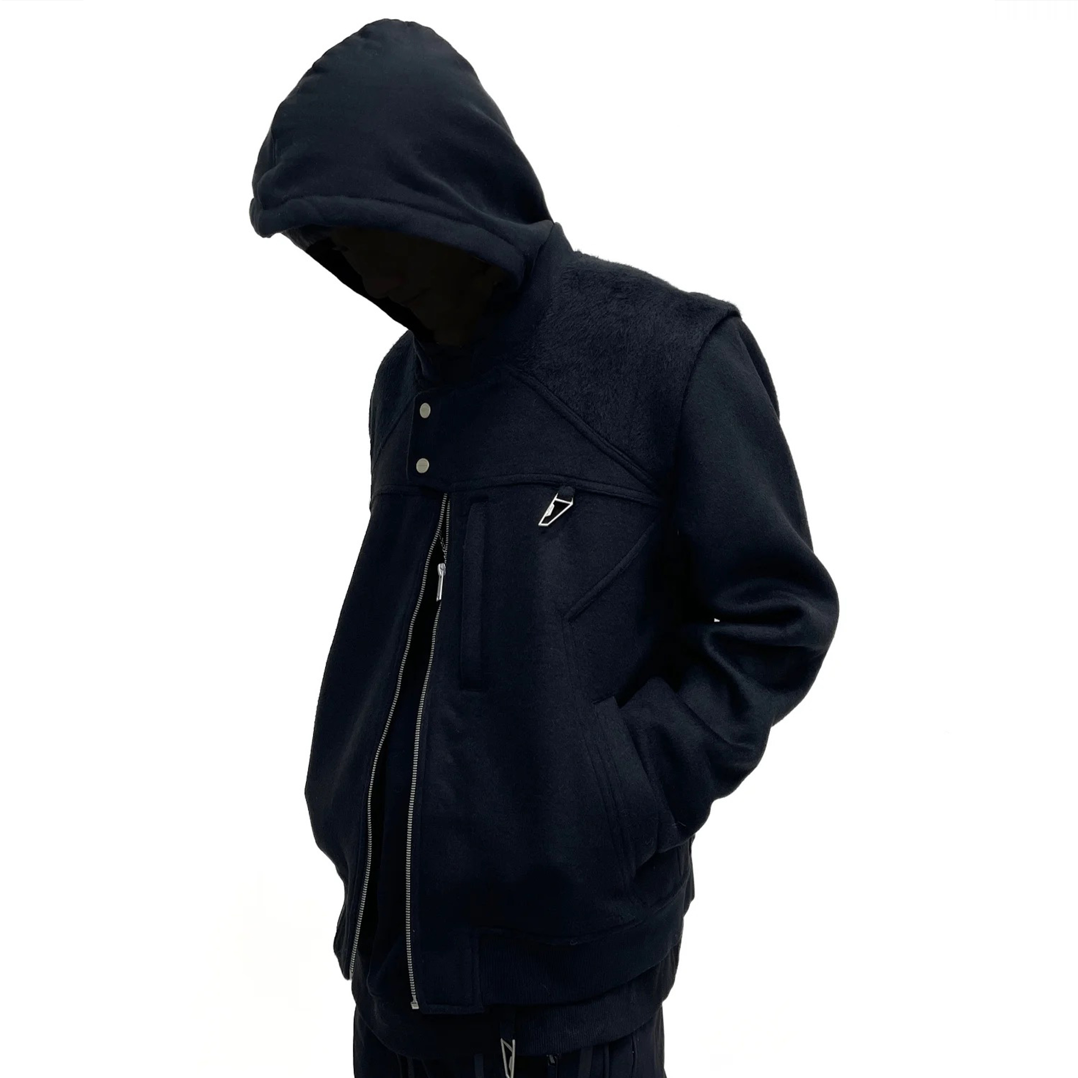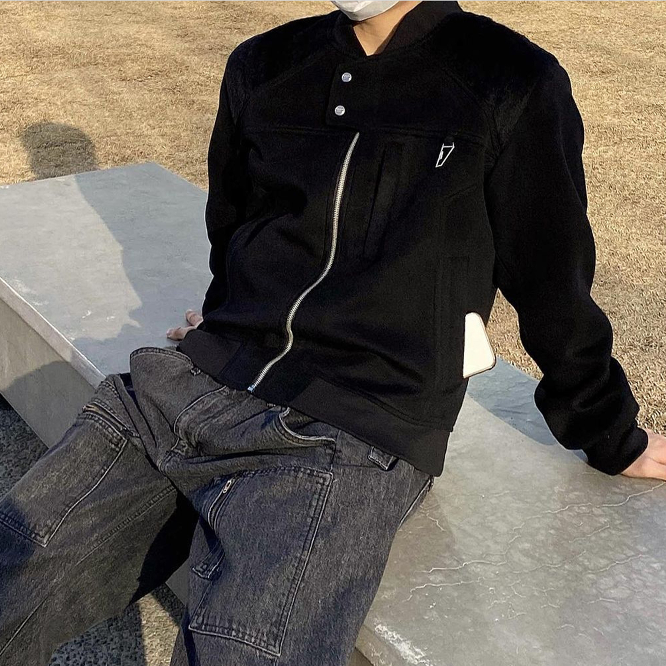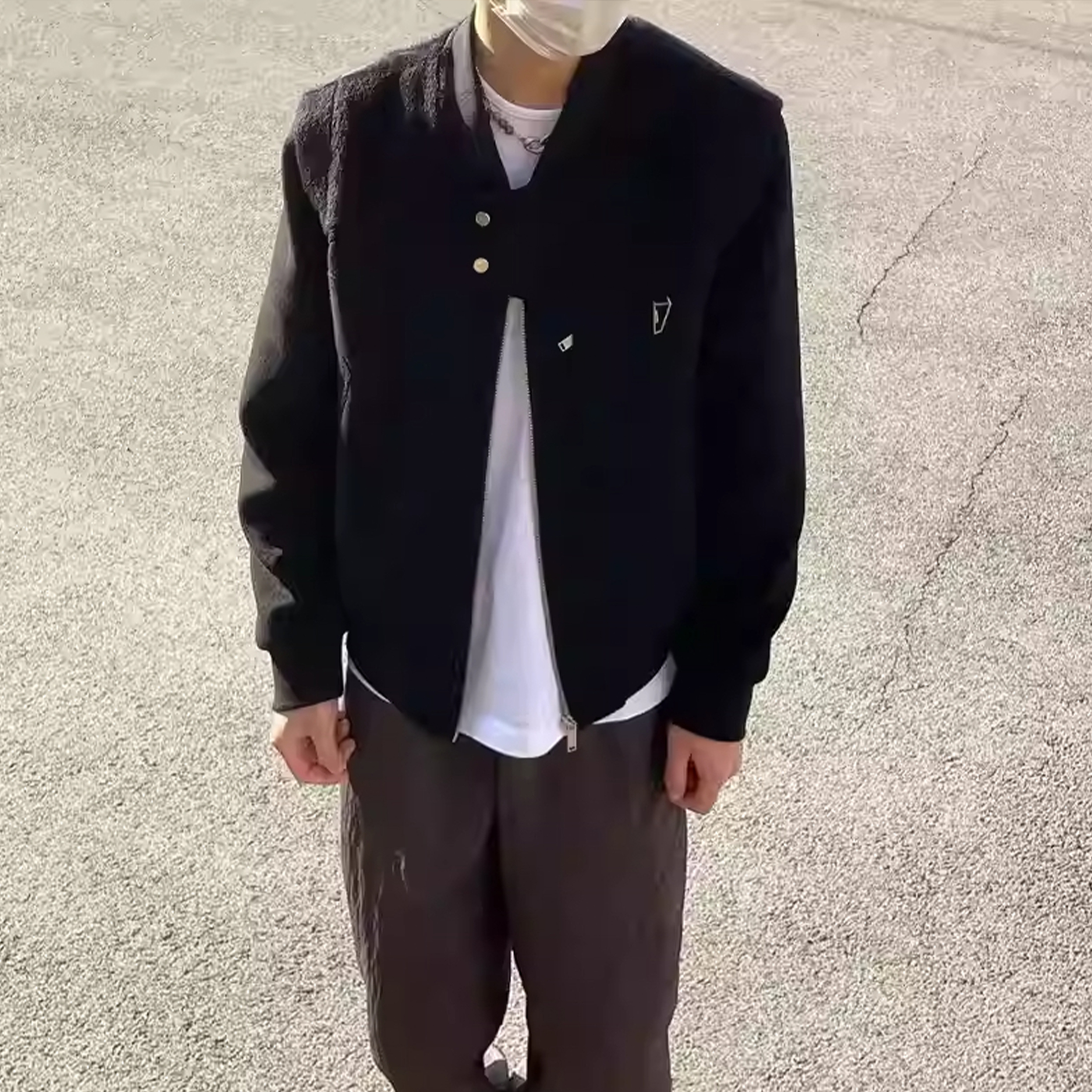 NIGO Undermycar Men's Fall And Winter Black Fashion Tweed Splicing Zipper Loose Casual Jacket Vibe Wind Jacket Ngvp #nigo1648