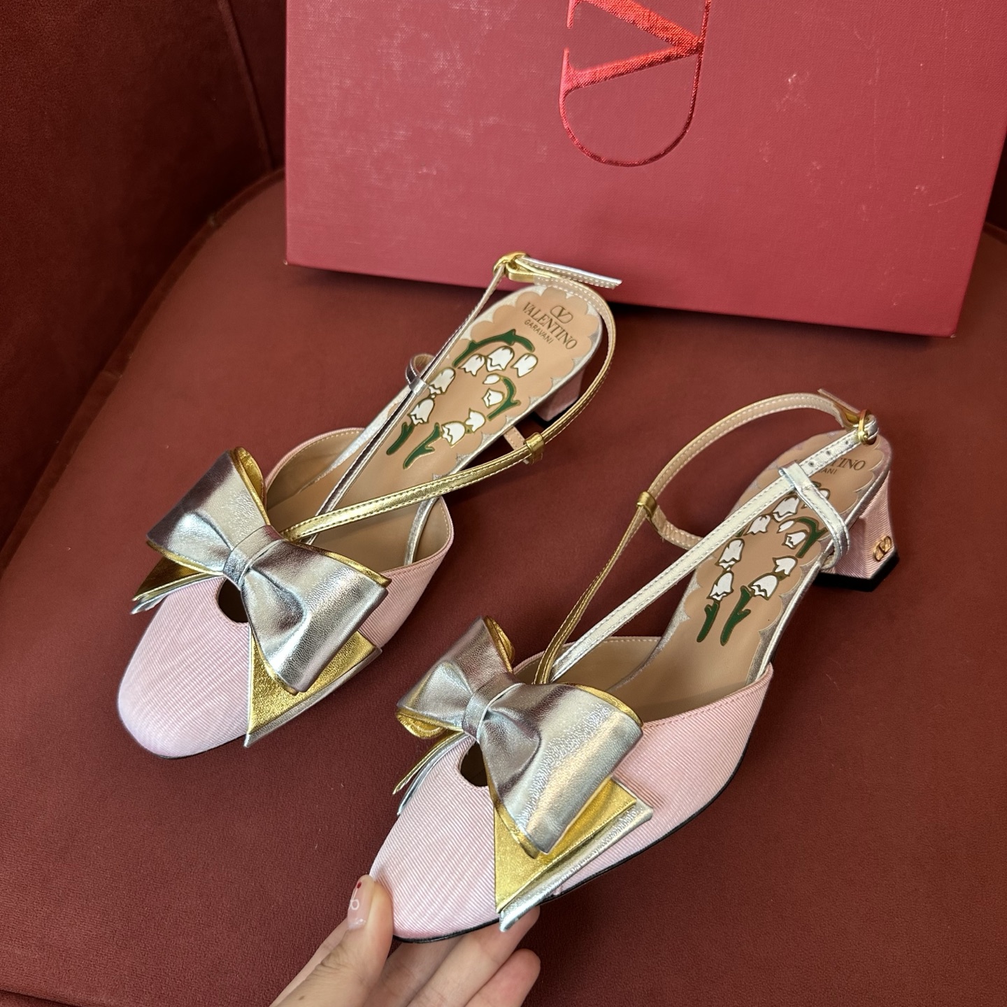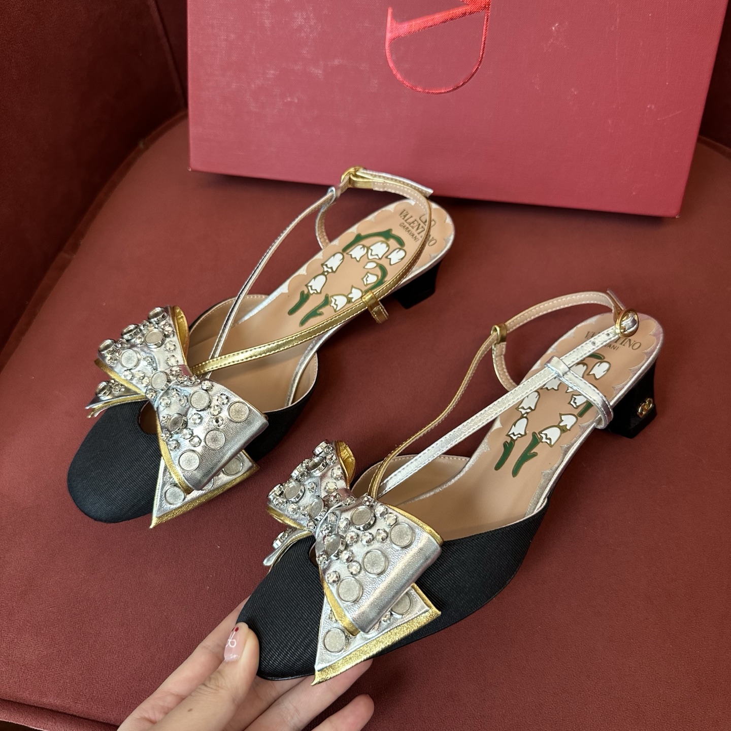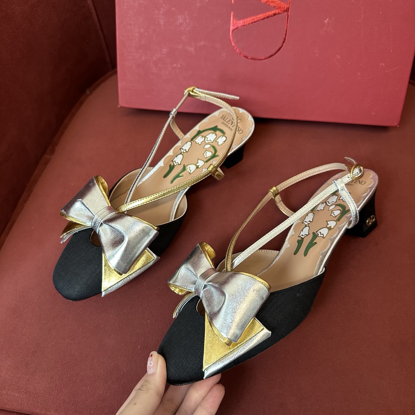 NIGO Valentino Bowow Women's Summer Round Toe Buckle Bow Shaped Chunky Heel 4.5cm High Heels Shoes #nigo76981