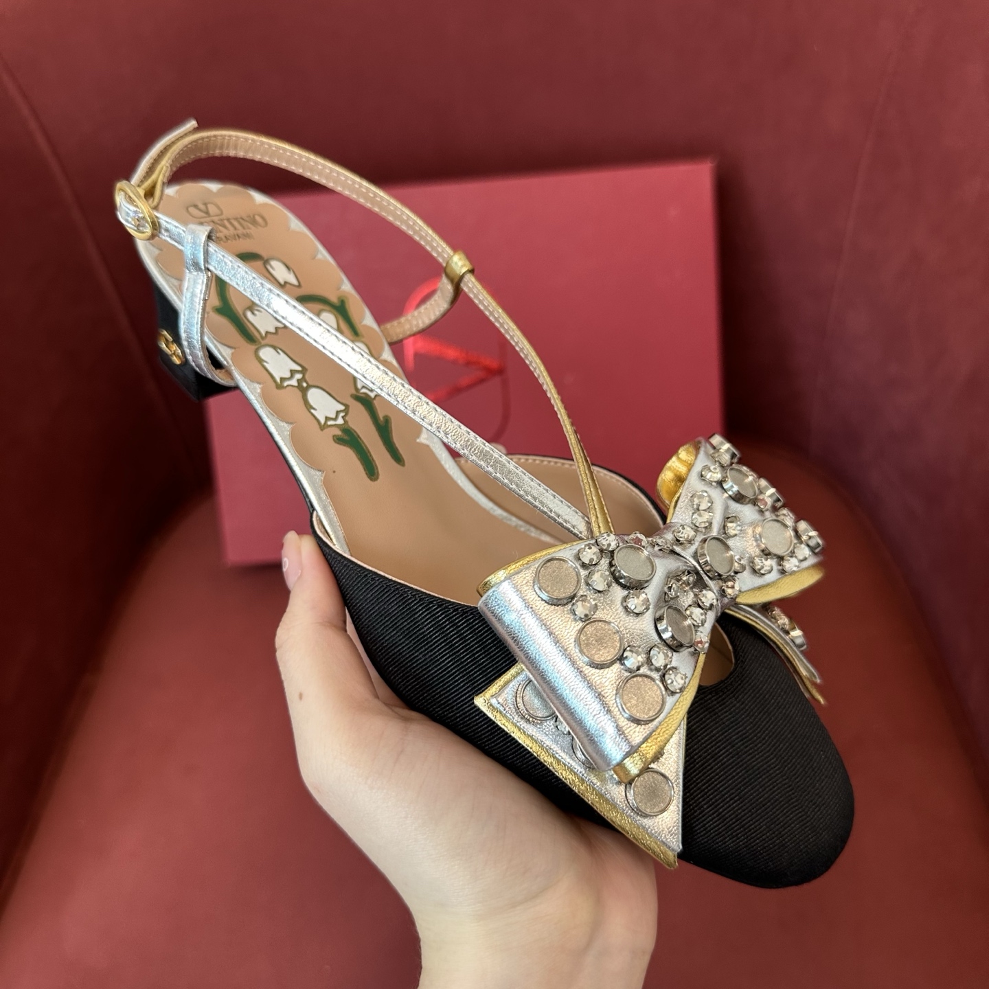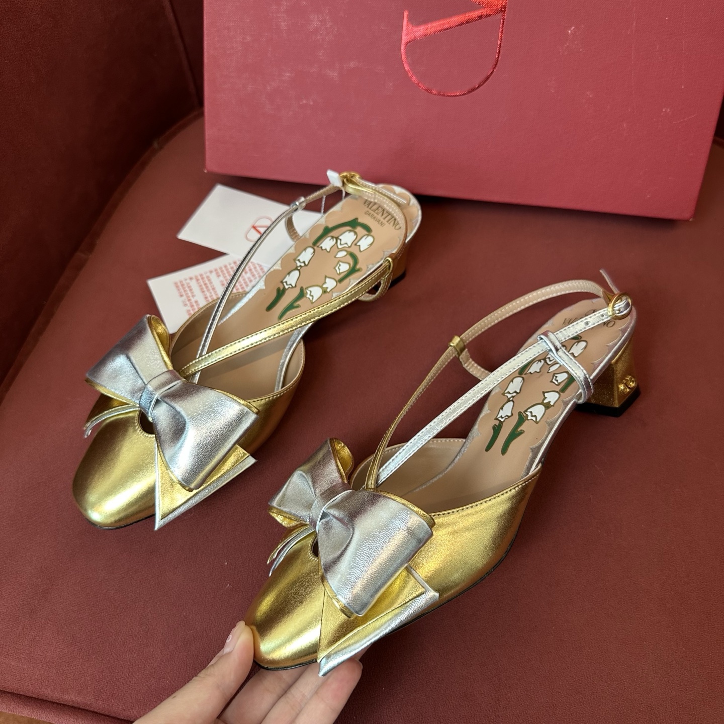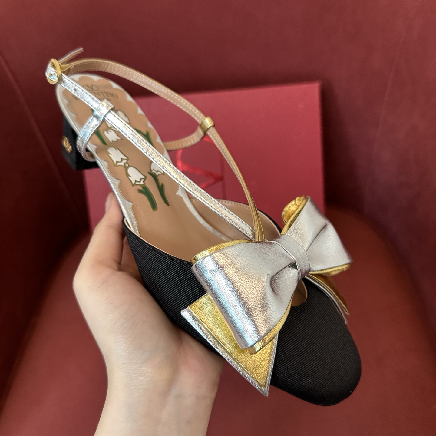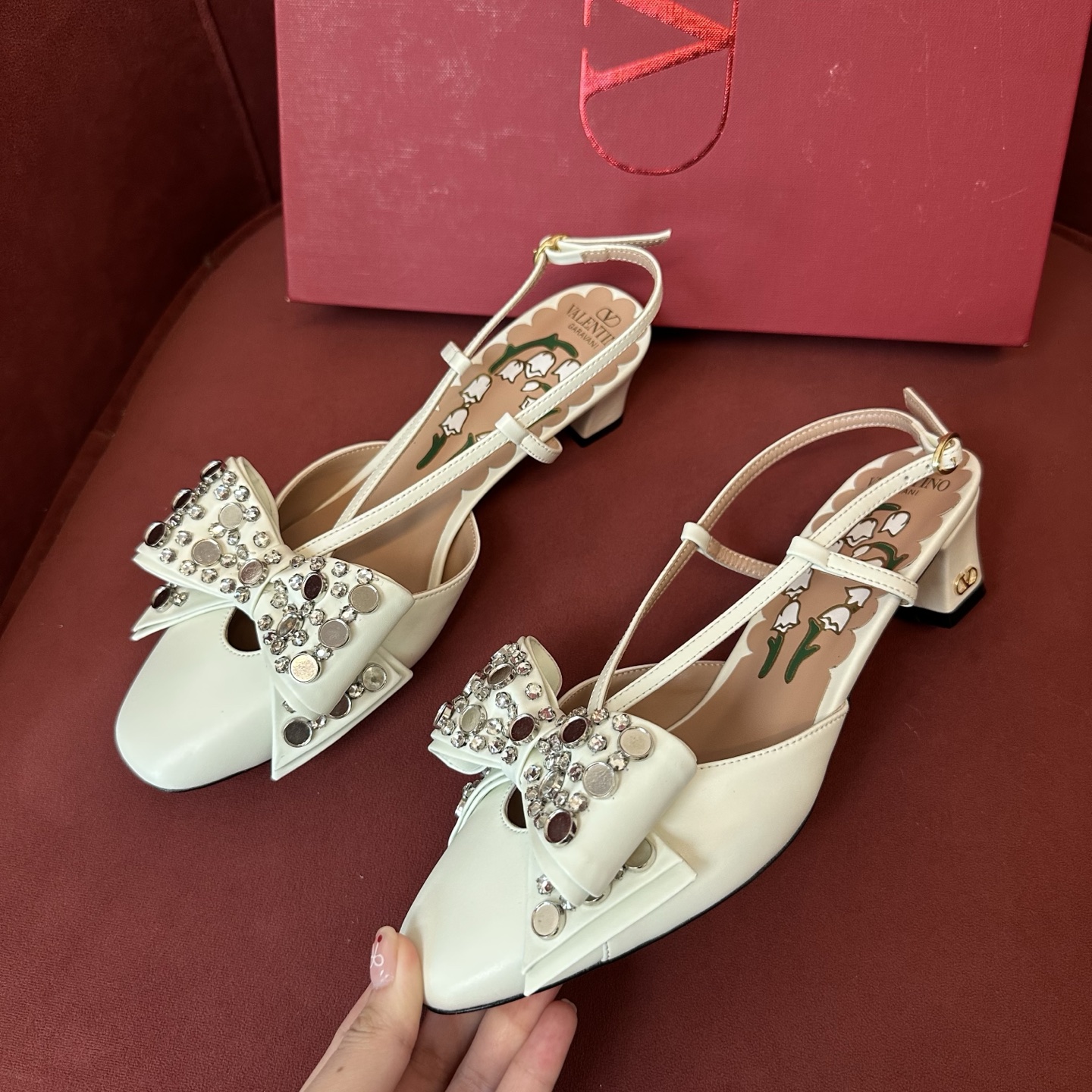 NIGO Valentino Bowow Women's Summer Round Toe Buckle Bow Shaped Chunky Heel 4.5cm High Heels Shoes #nigo76981